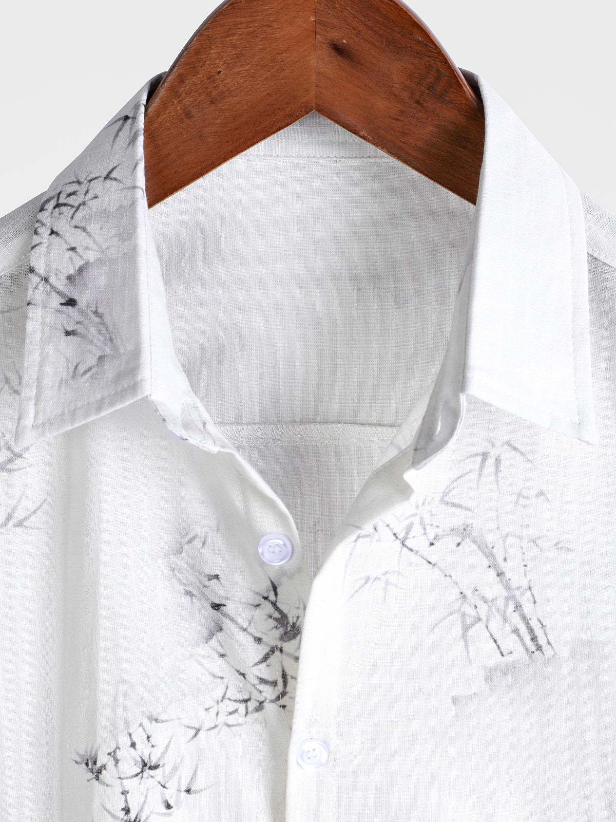 Men's Bamboo Print Casual Short Sleeve Shirt