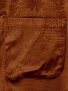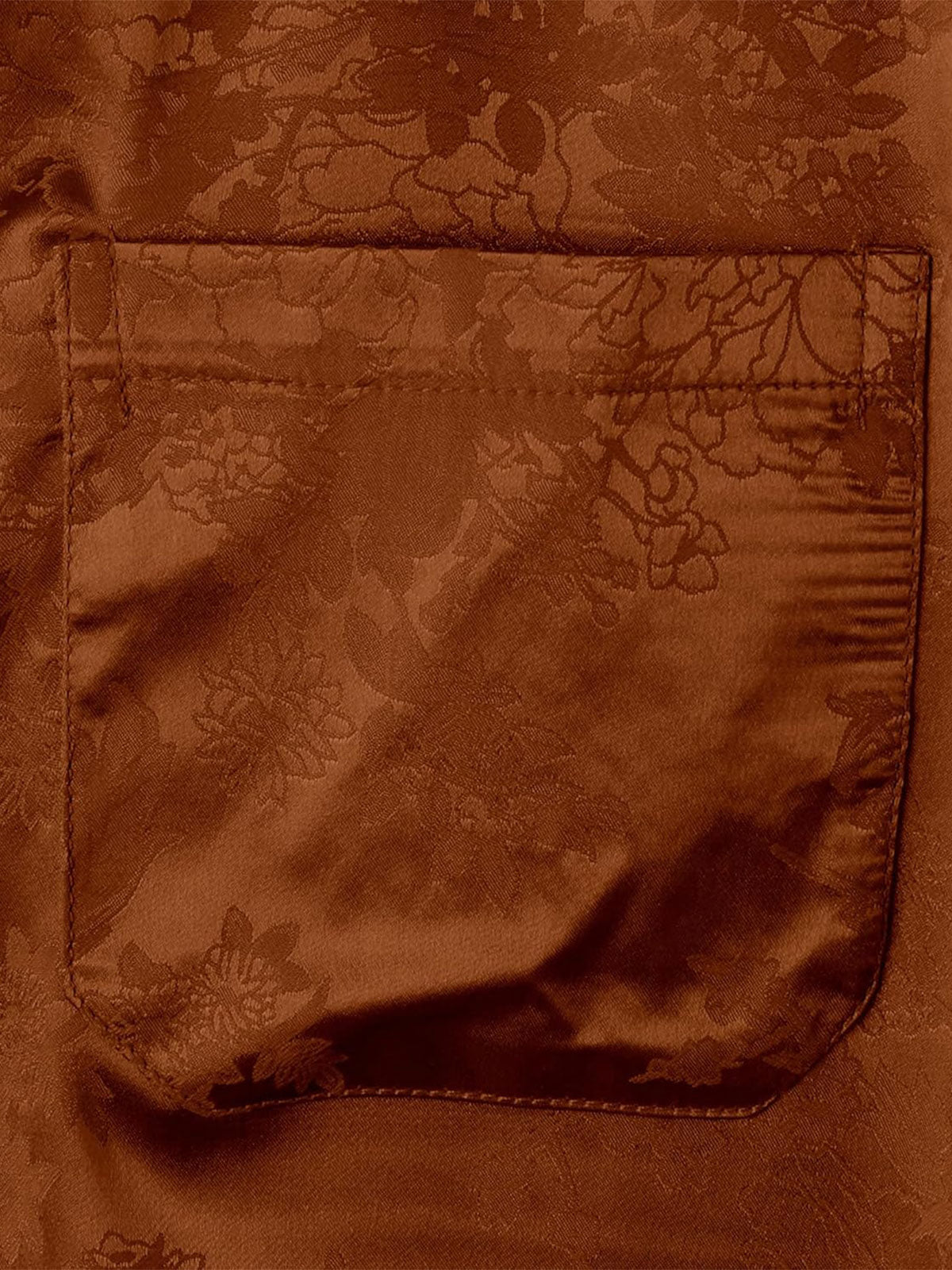 Men's Brown Jacquard Pocket Silk Satin Floral Short Sleeve Shirt