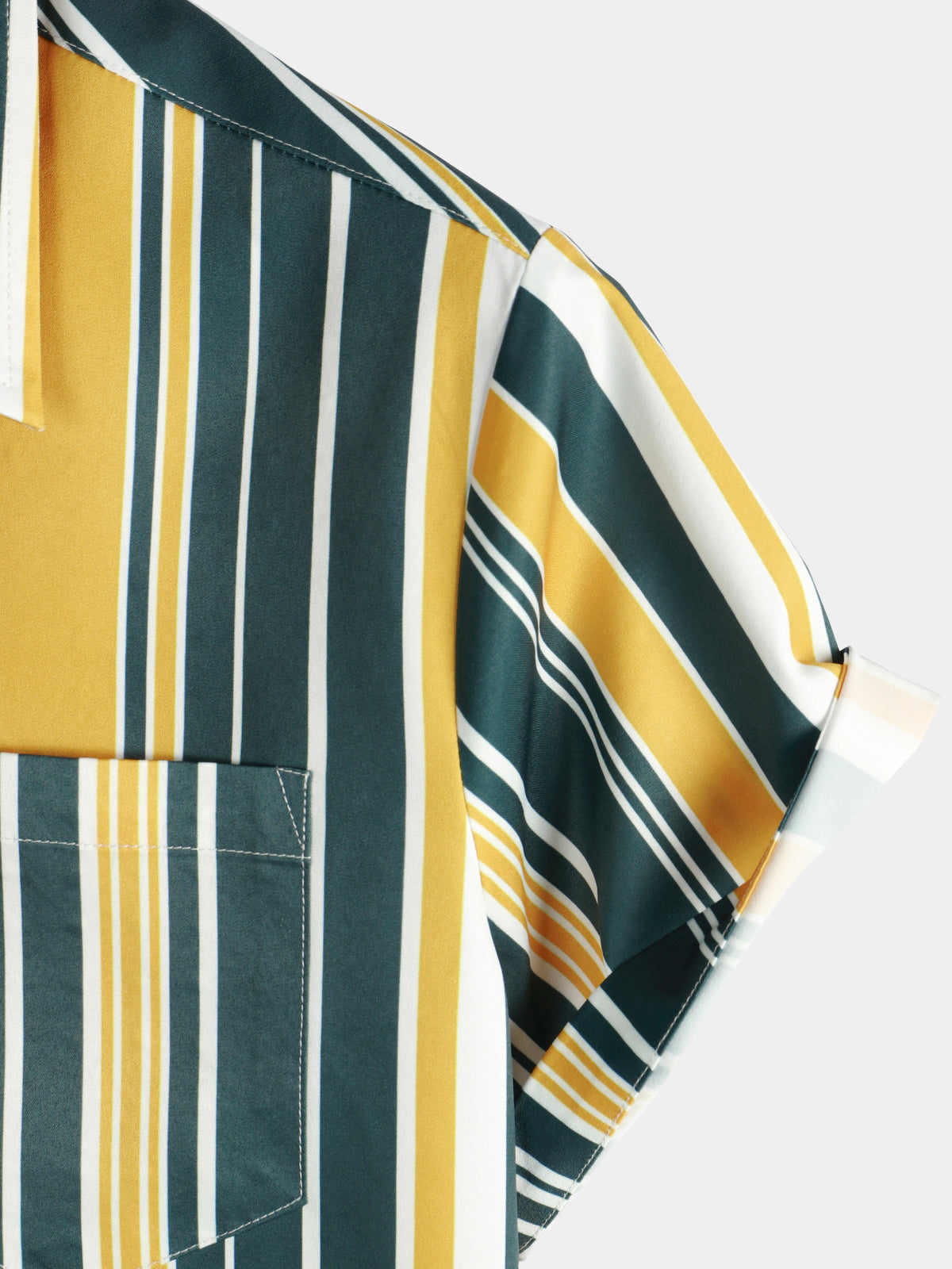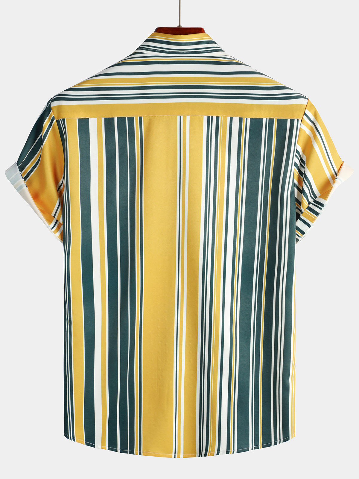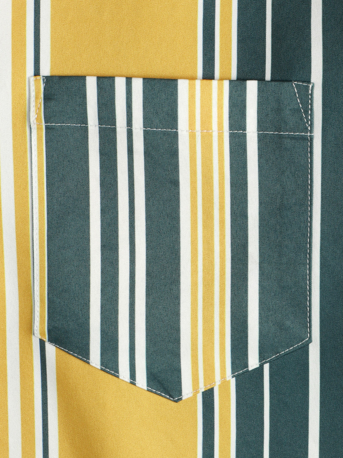 Men's Casual Button Up Retro Yellow And Green Vertical Striped Pocket Short Sleeve Shirt