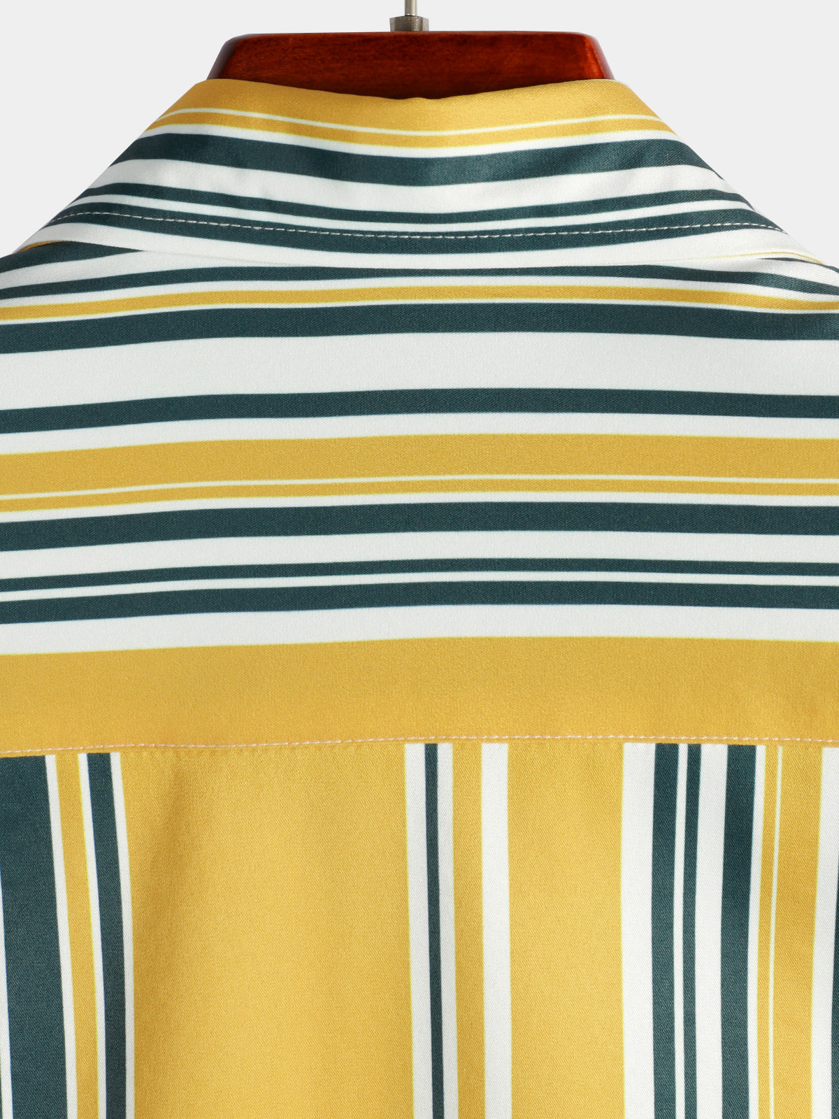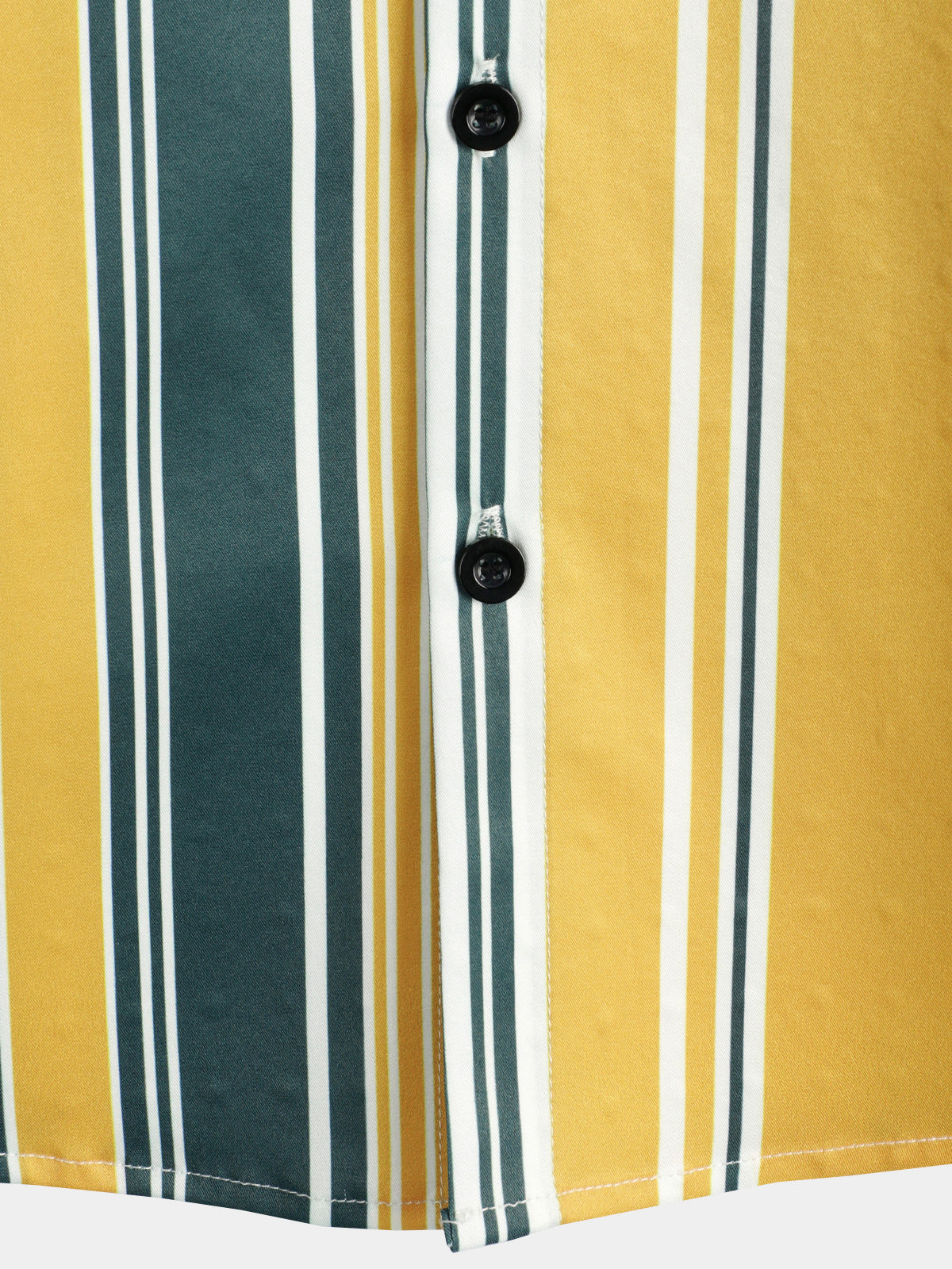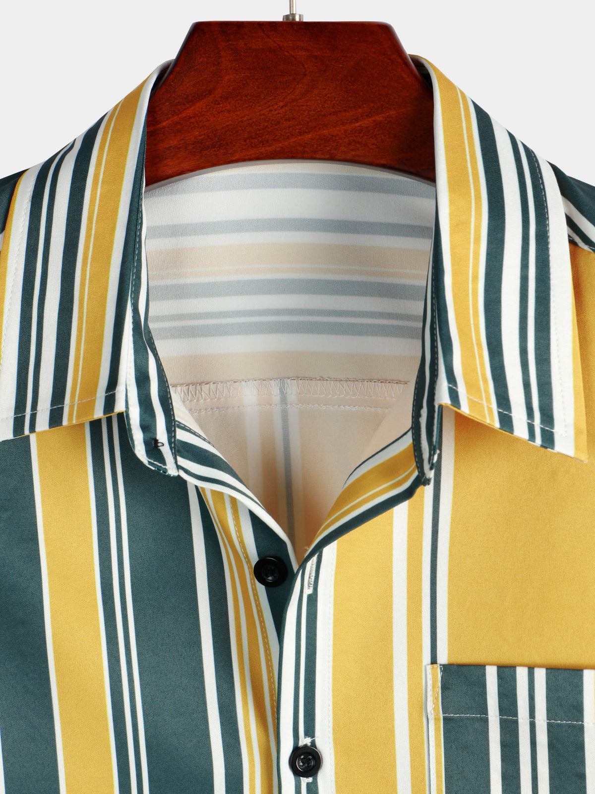 Men's Casual Button Up Retro Yellow And Green Vertical Striped Pocket Short Sleeve Shirt