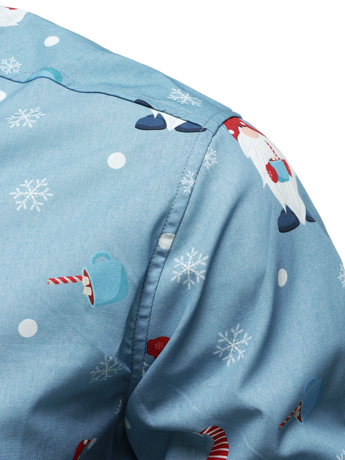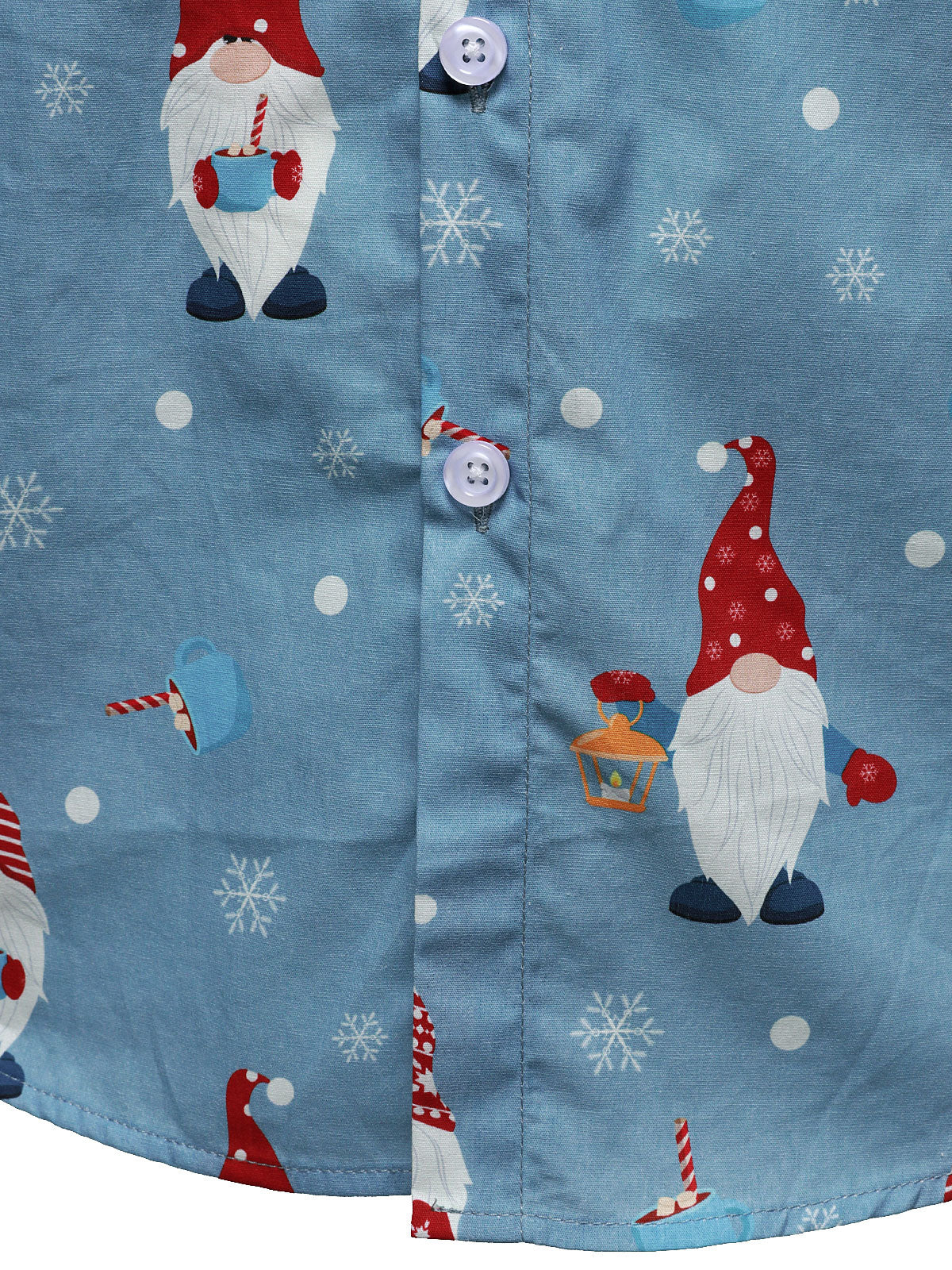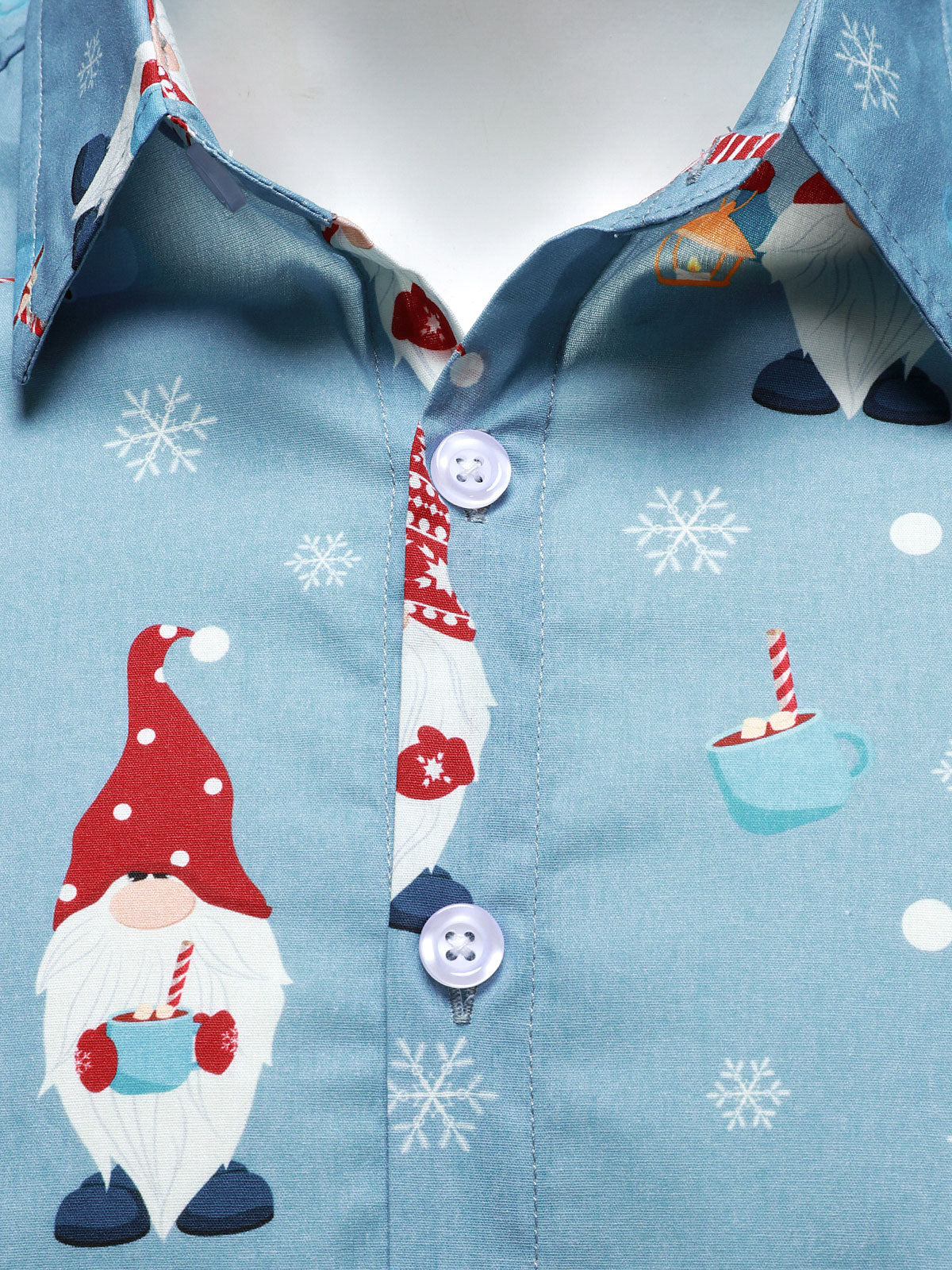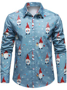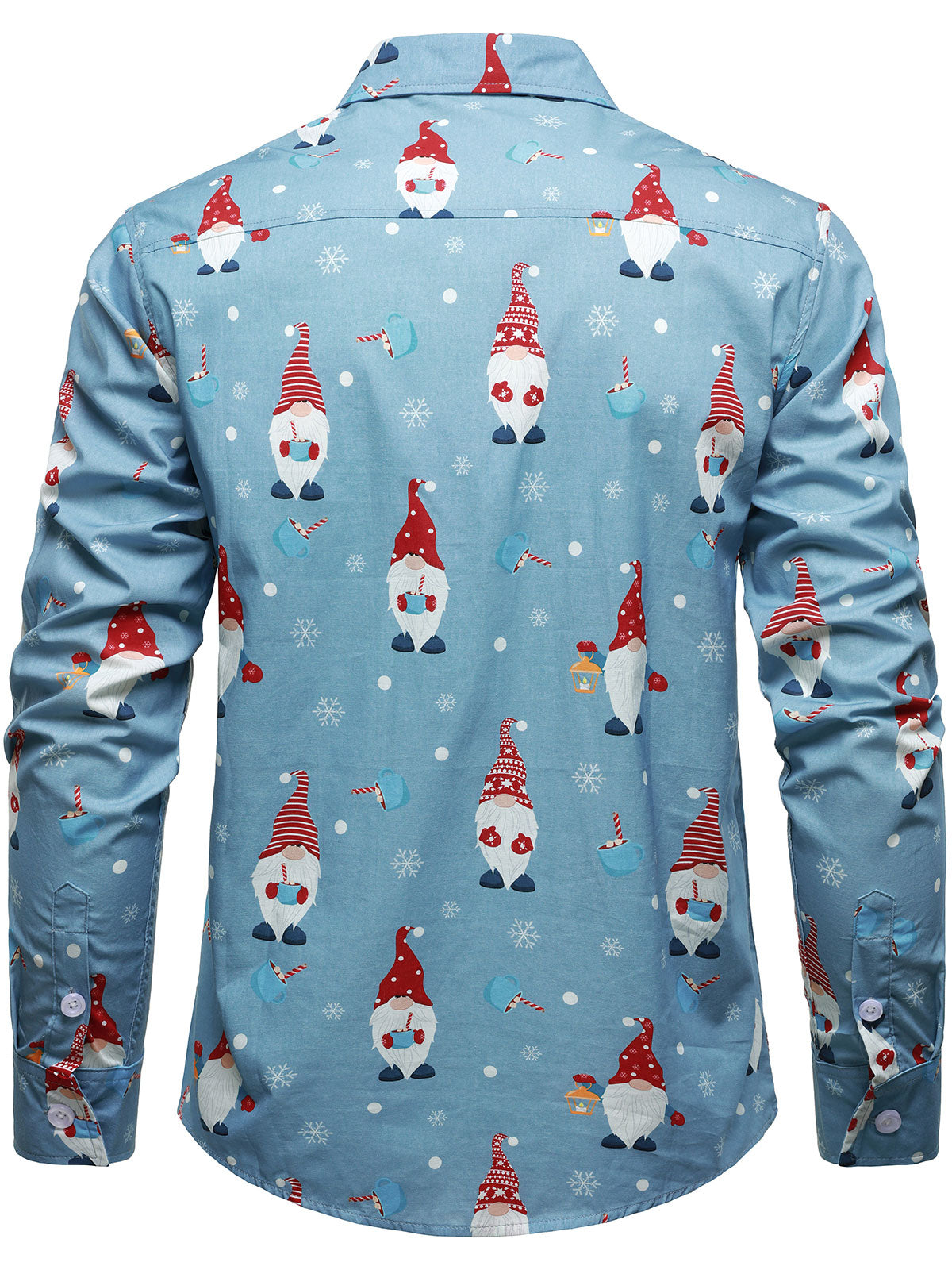 Men's Christmas Blue Cute Gnome Cotton Long Sleeve Shirt