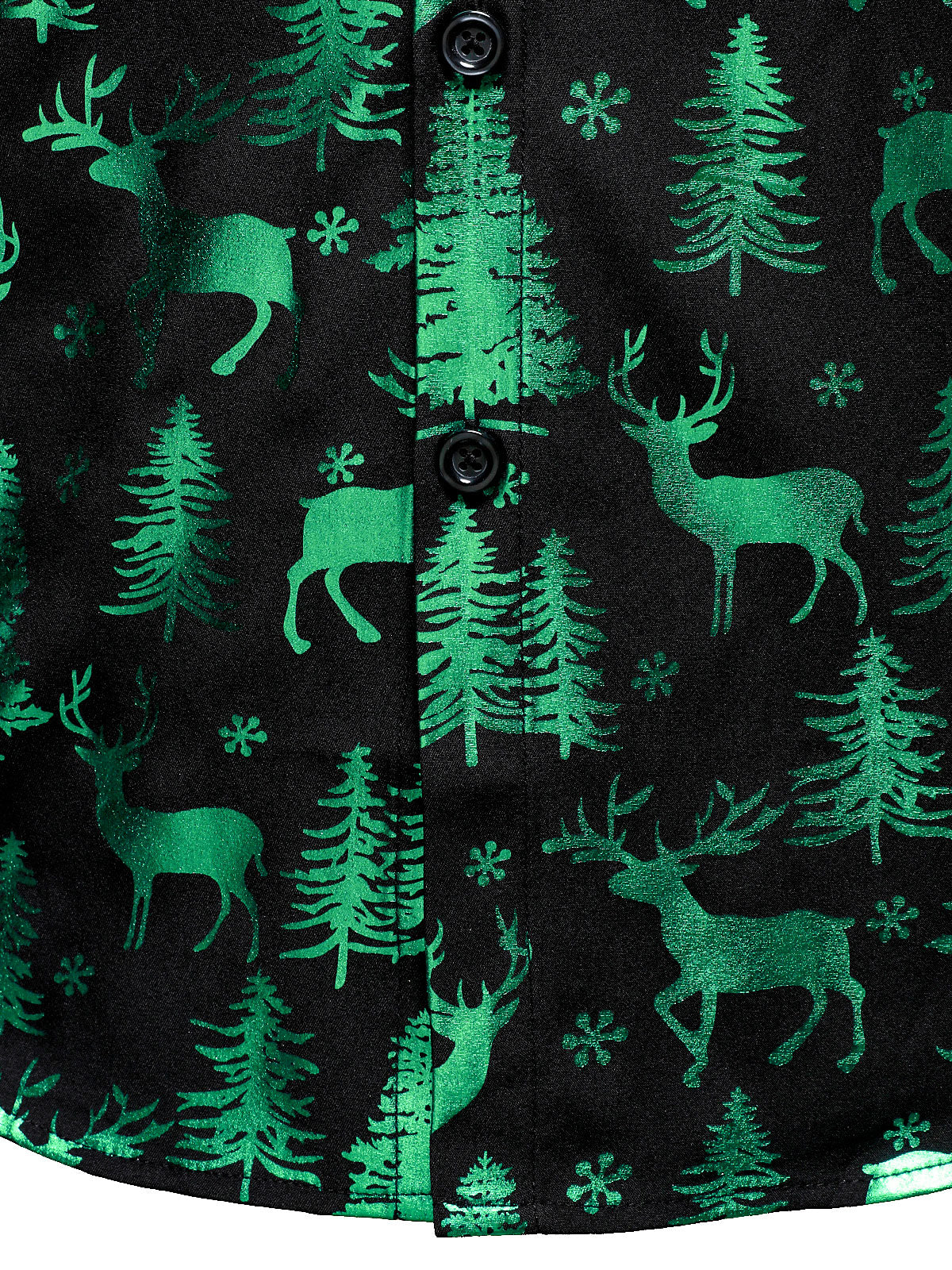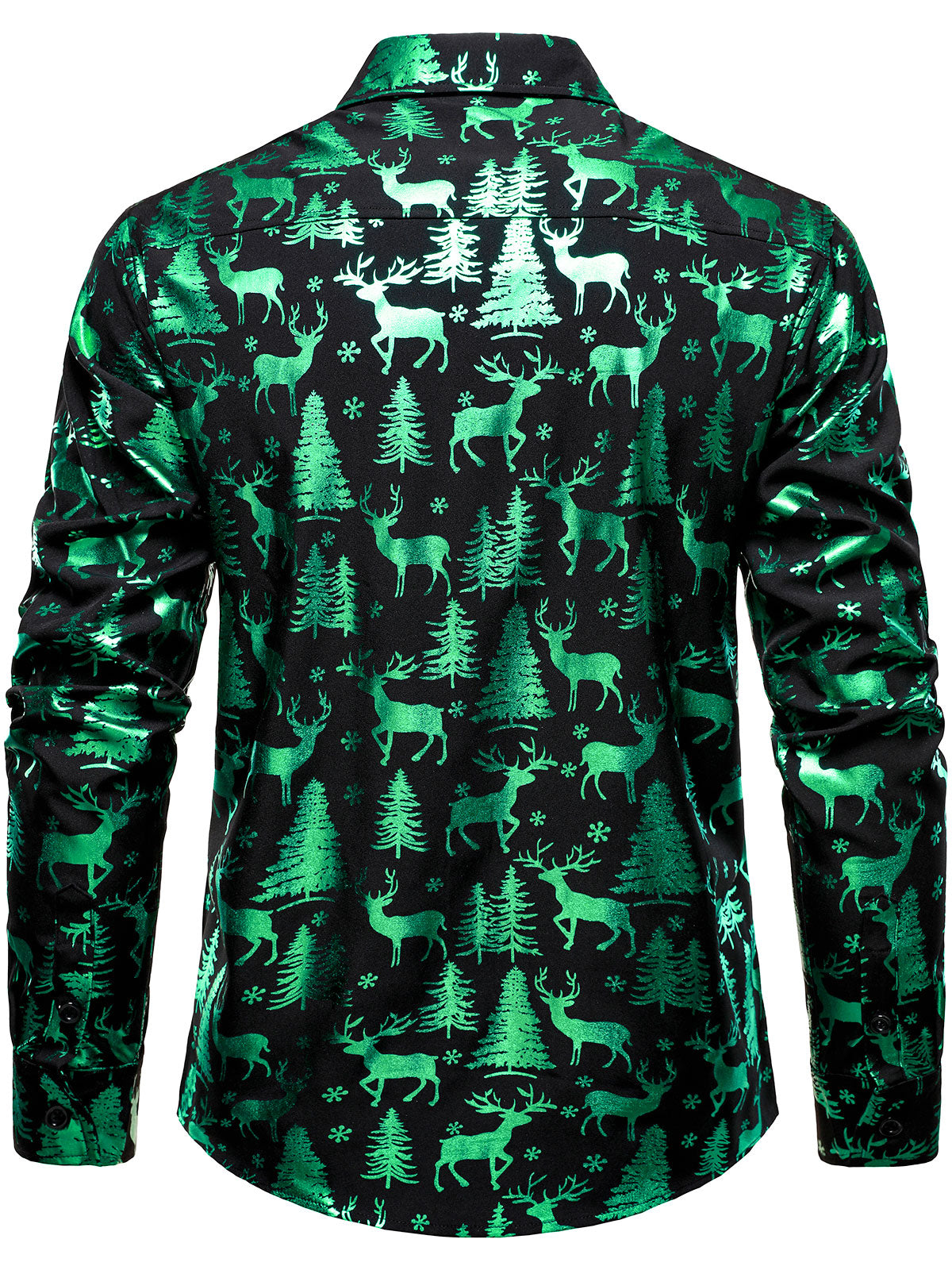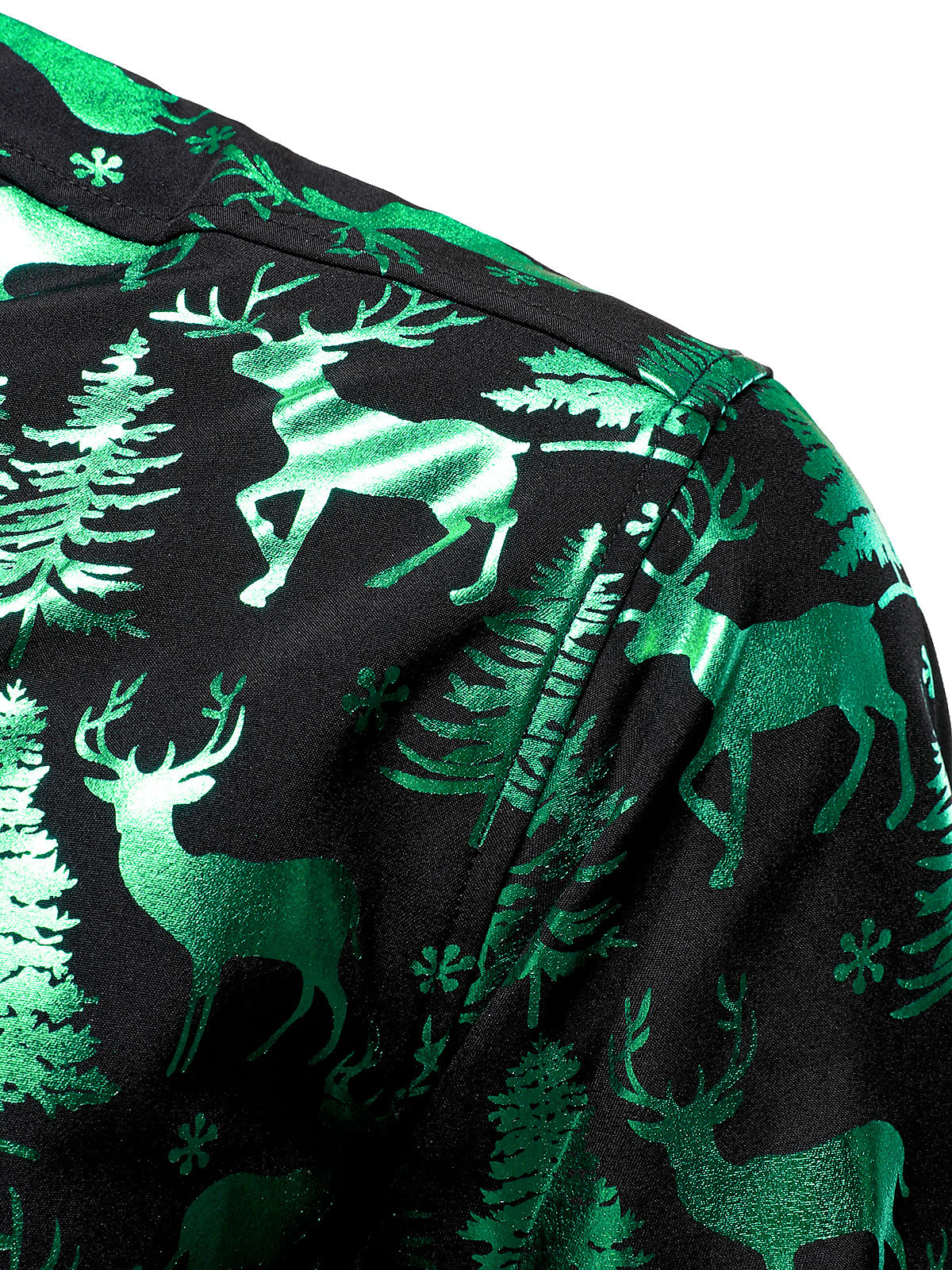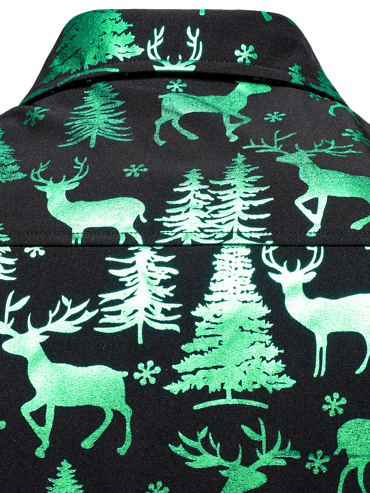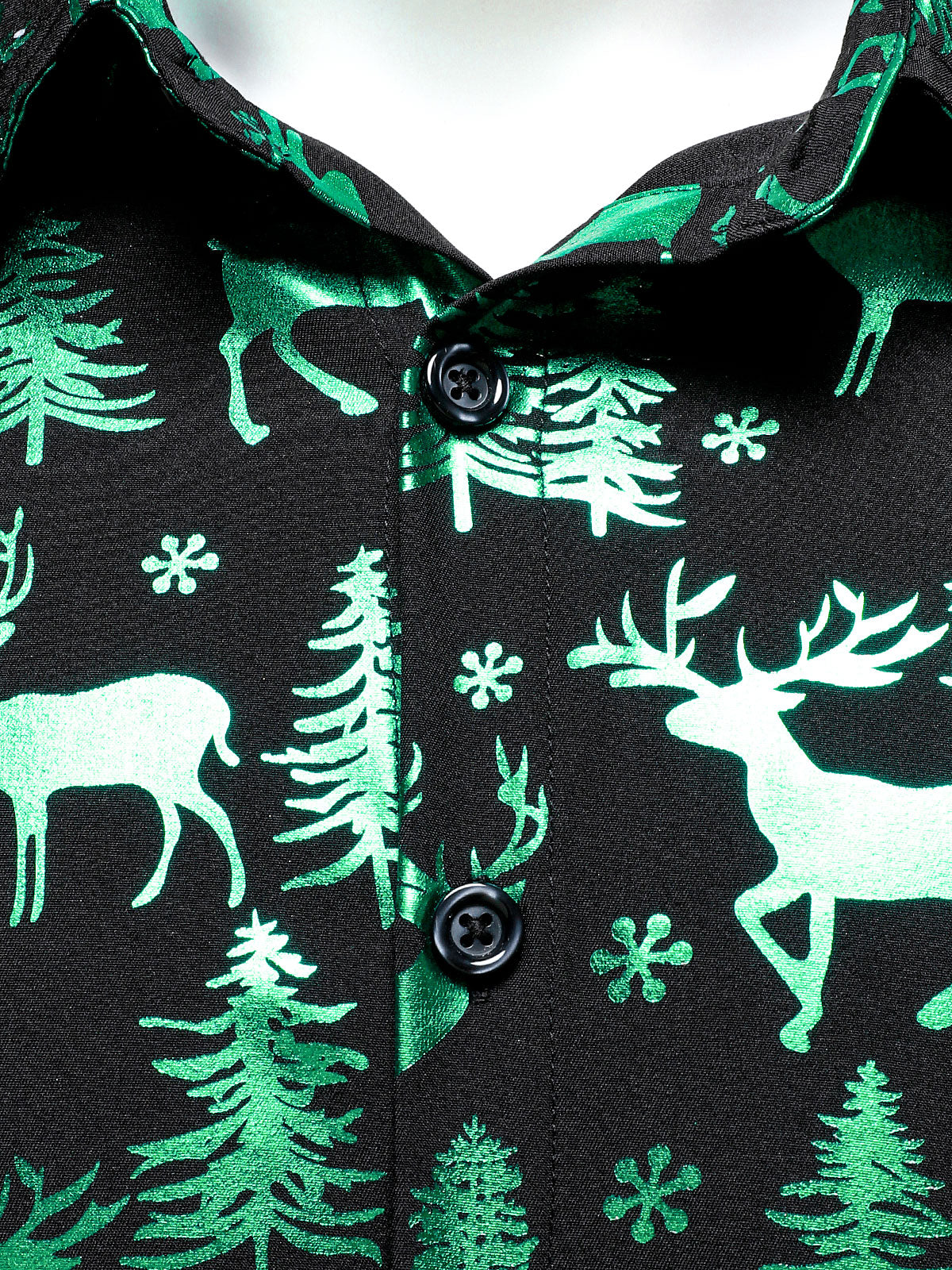 Men's Christmas Reindeer Festive Print Black Long Sleeve Shirt