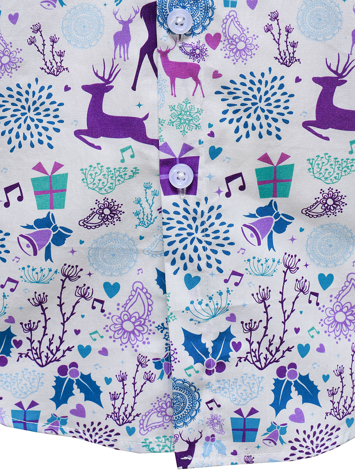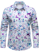 Men's Christmas Reindeer Festive Print Xmas Holiday White Long Sleeve Shirt