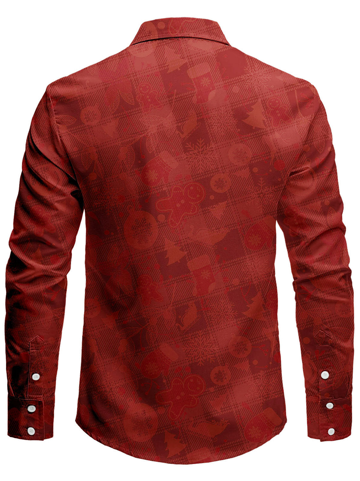Men's Christmas Themed Red Vintage Holiday Long Sleeve Shirt