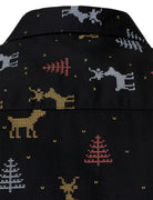 Men's Christmas Tree Elk Print Breathable Black Long Sleeve Shirt