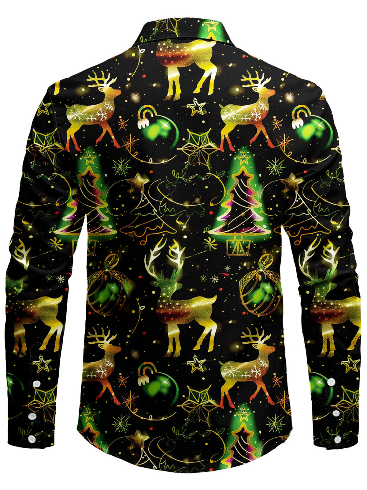Men's Festive Christmas Reindeer Print Long Sleeve Shirt