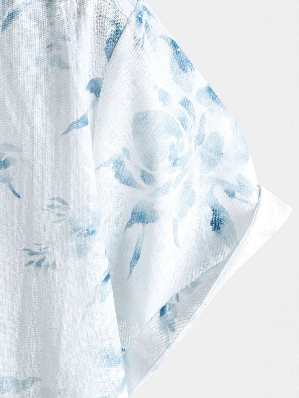 Men's Floral Holiday Casual Summer Short Sleeve Button Up Shirt