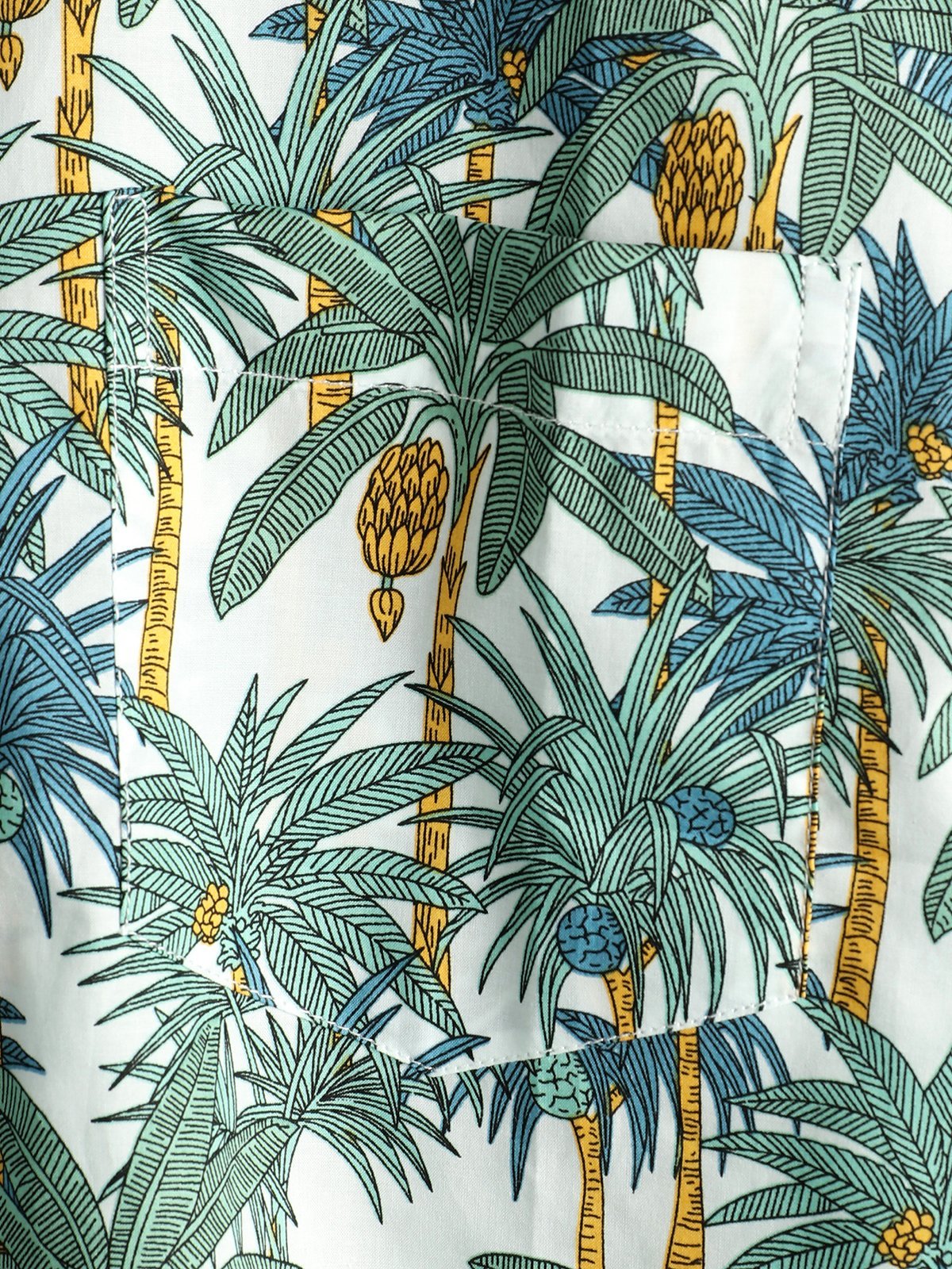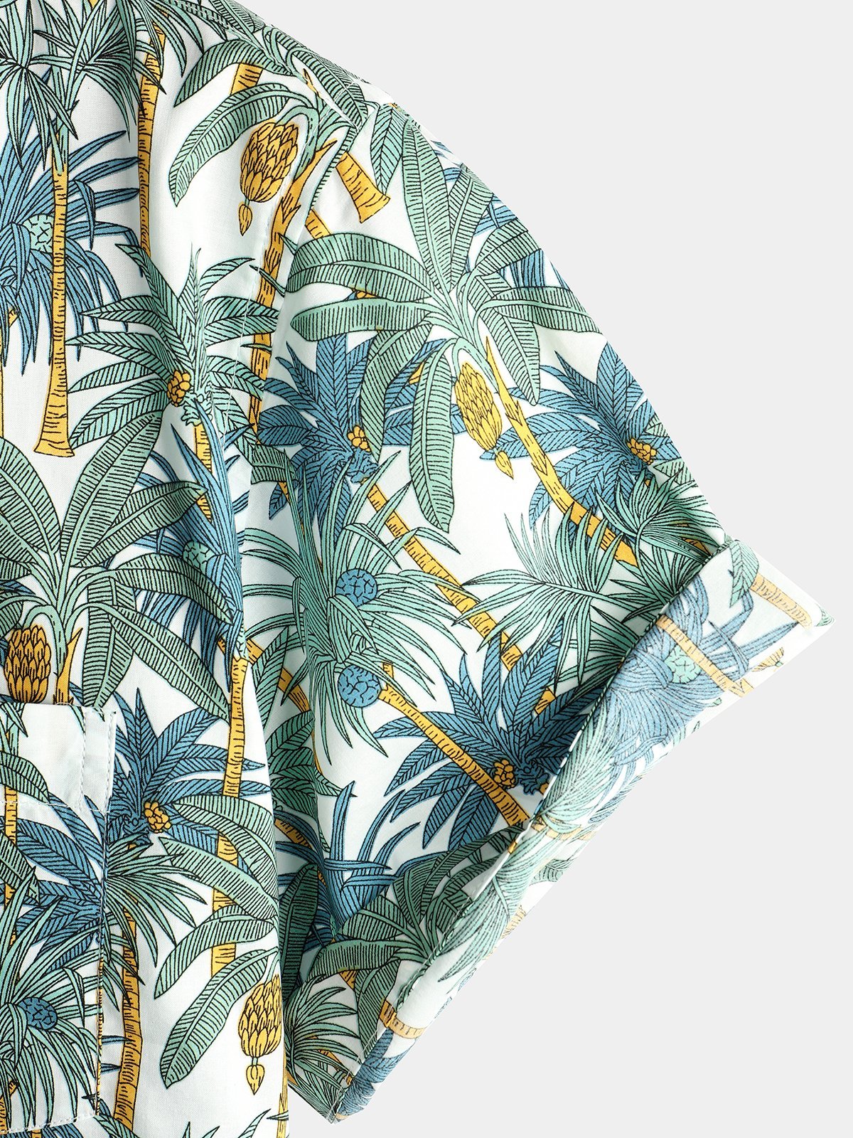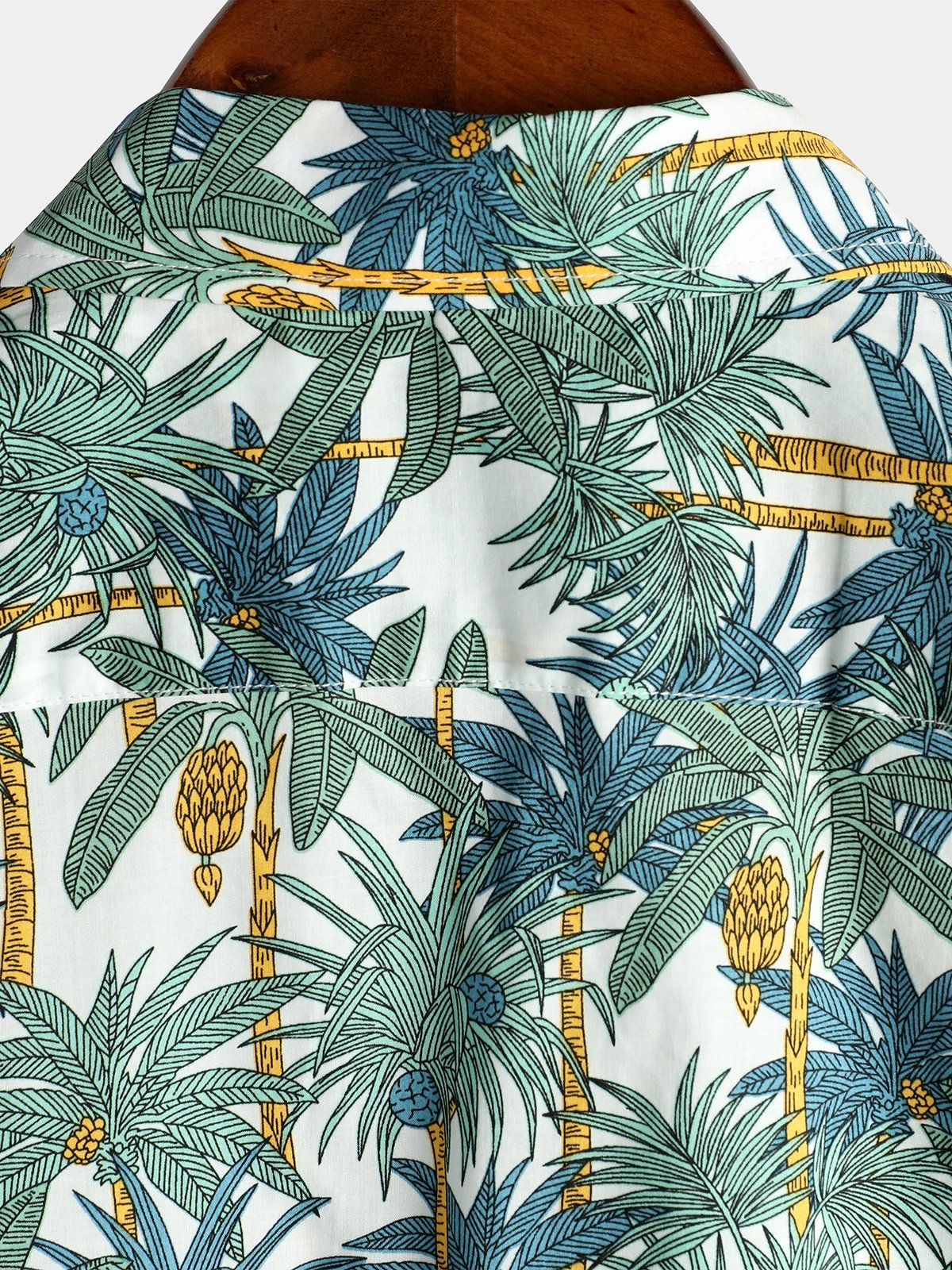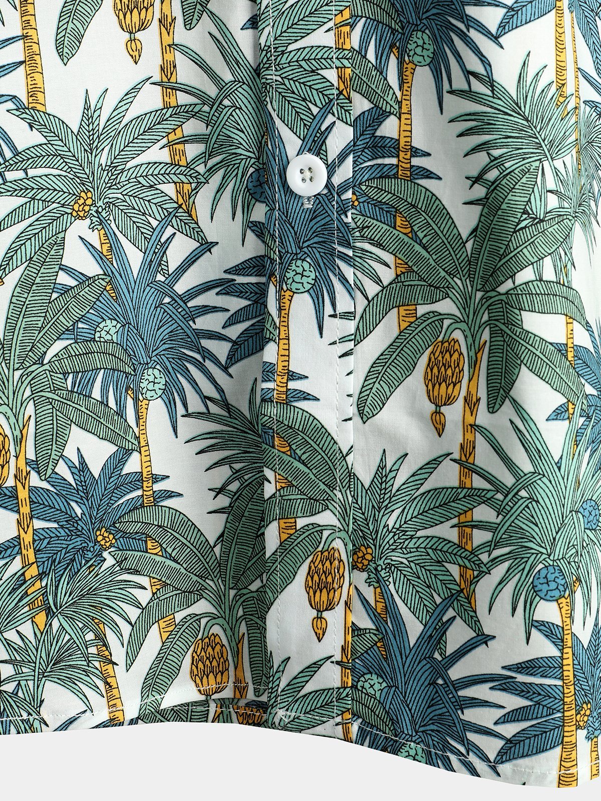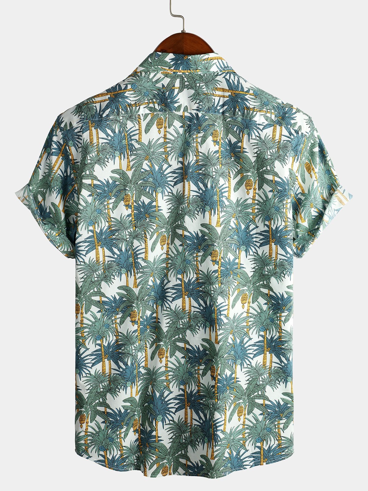 Men's Casual Hawaiian Tropical Print Short Sleeve Cotton Shirt