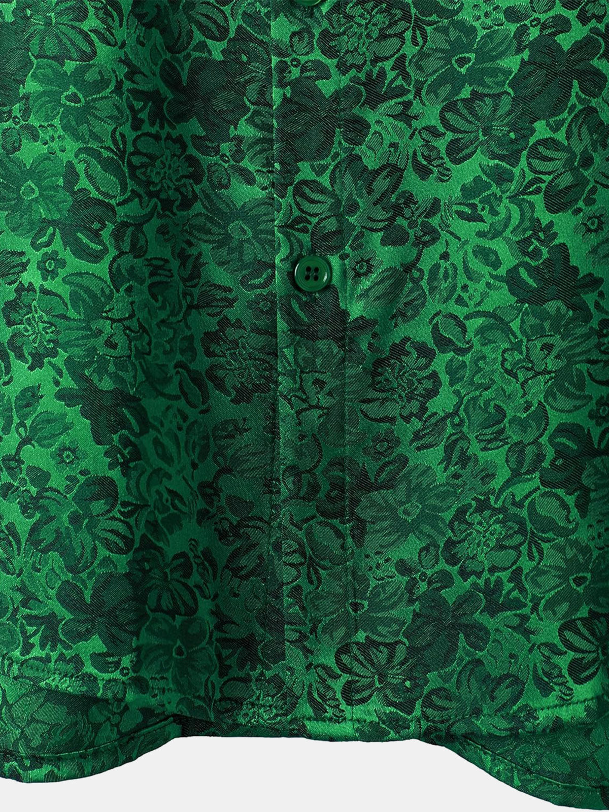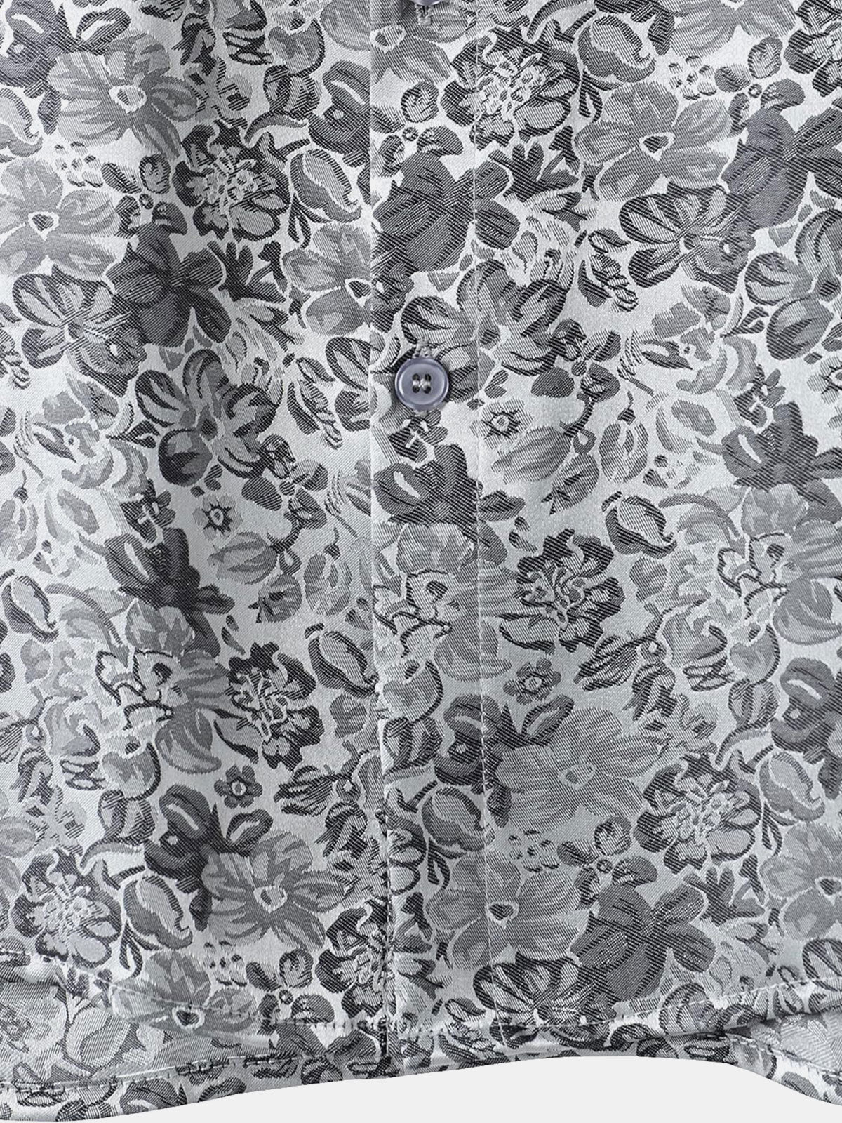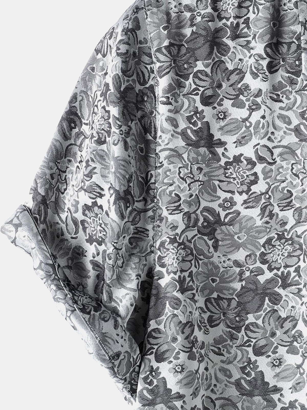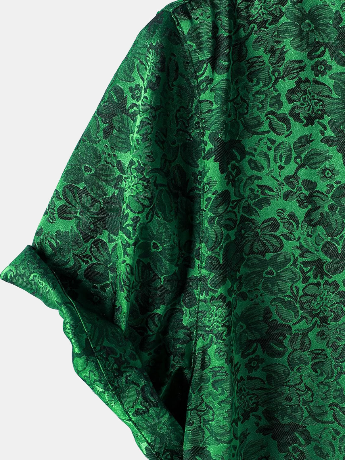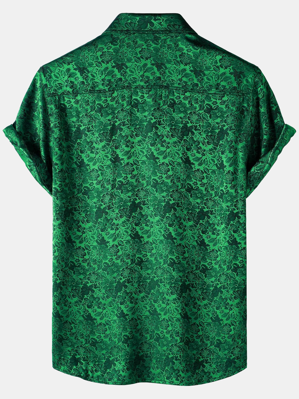 Men's Floral Print Jacquard Silk Satin Short Sleeve Shirt
