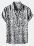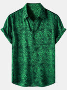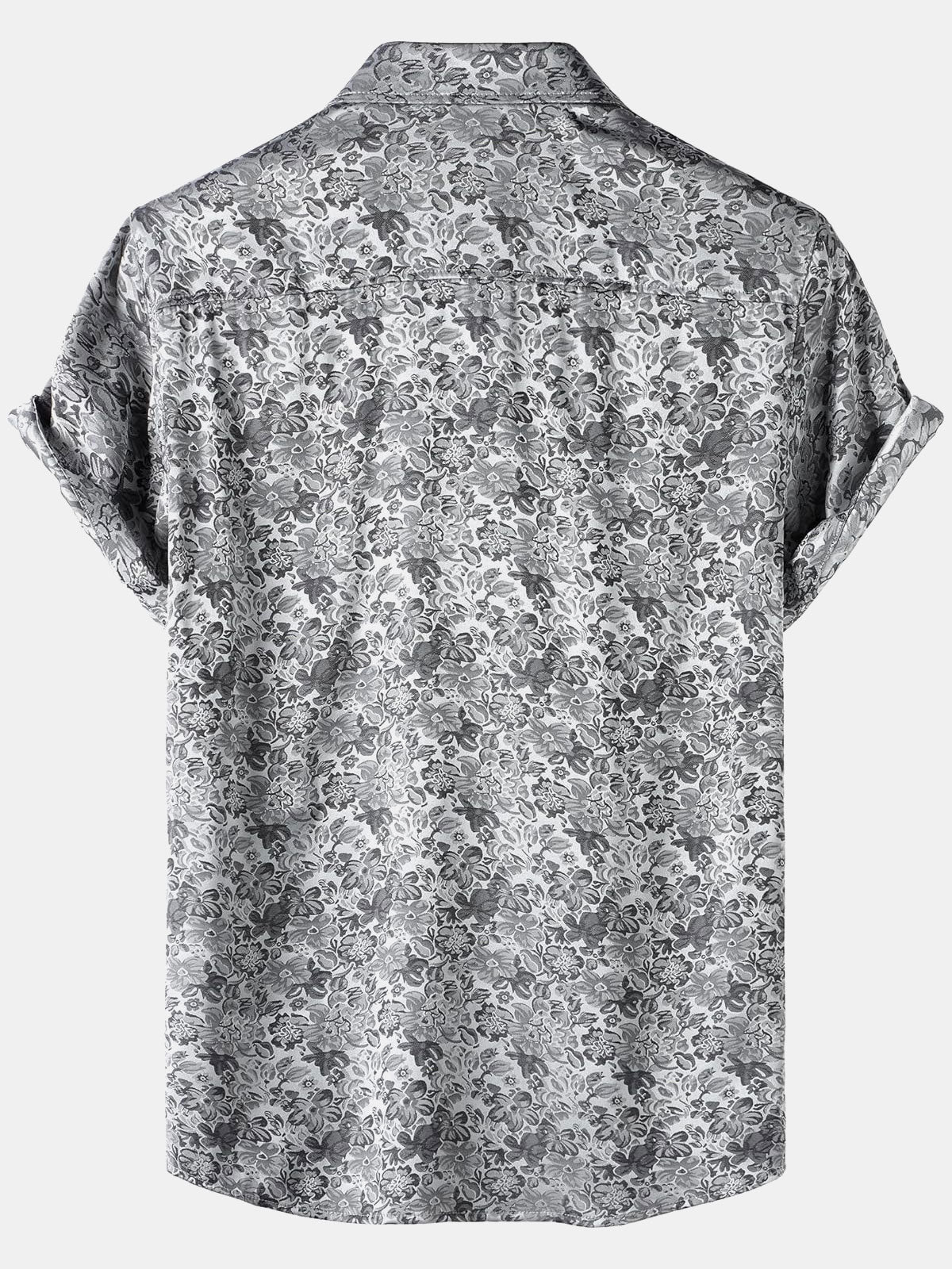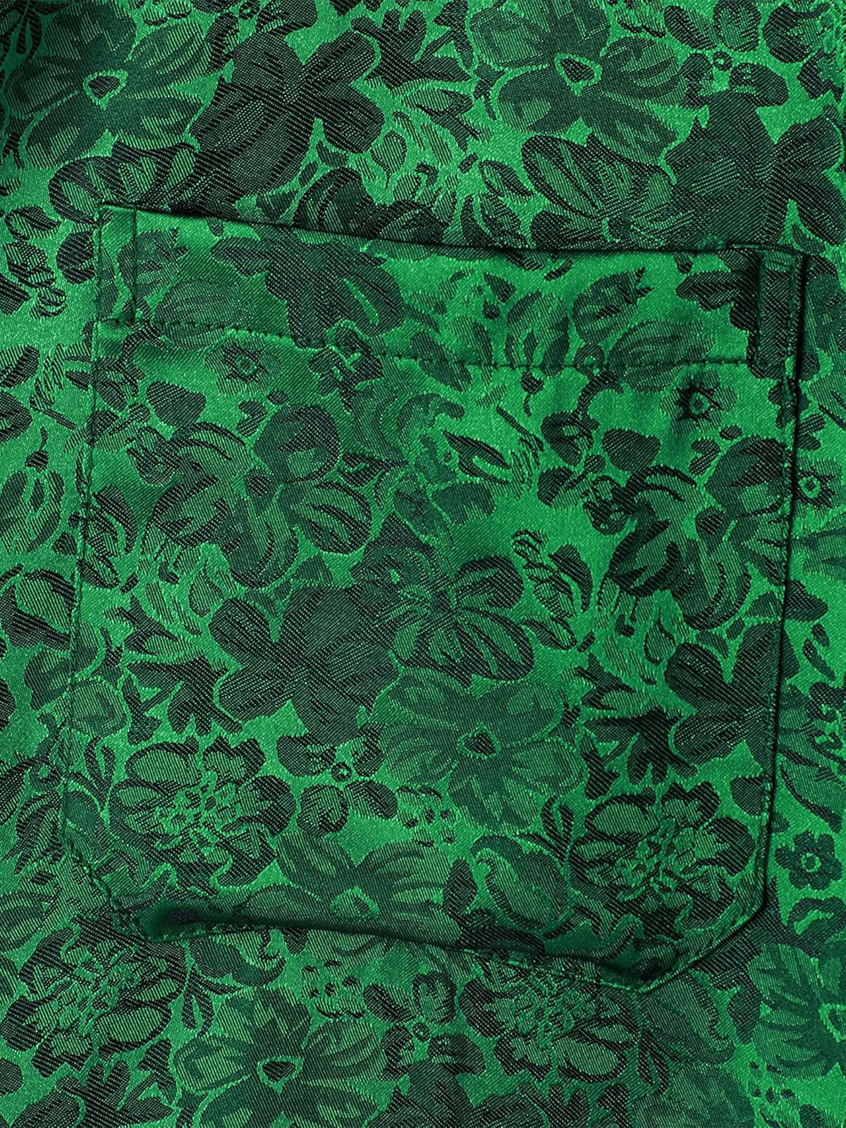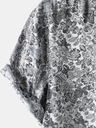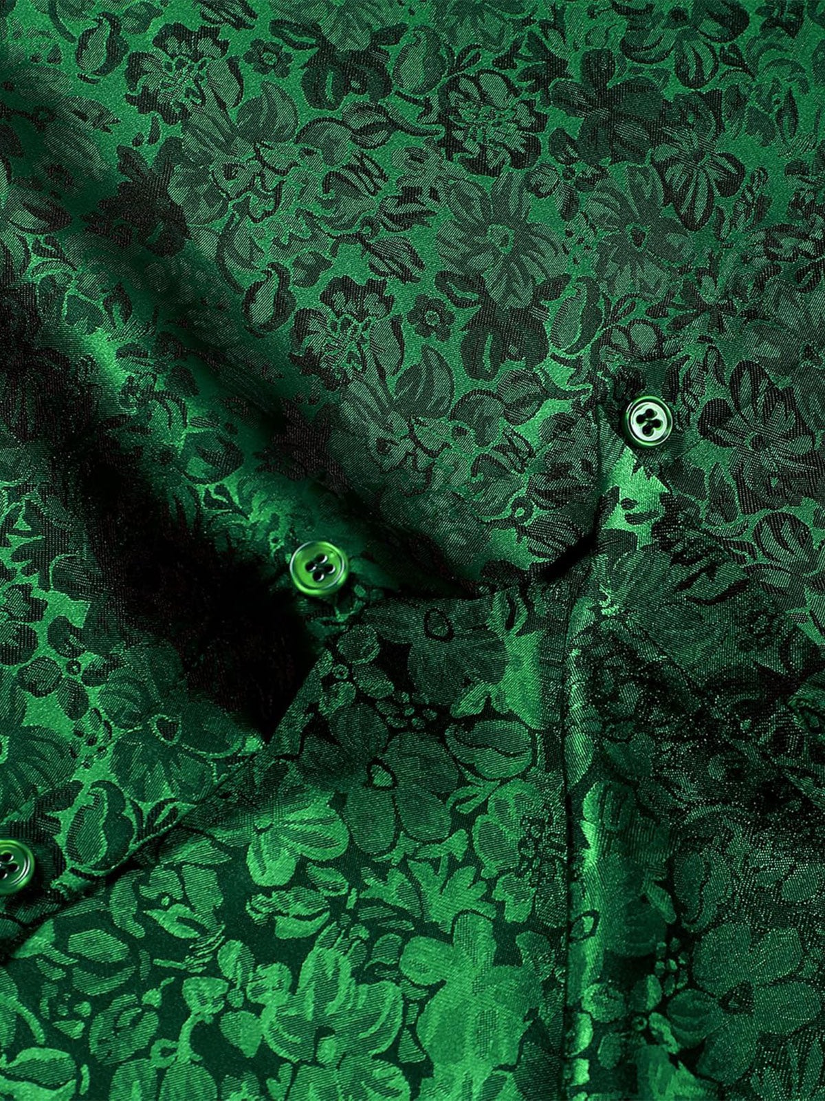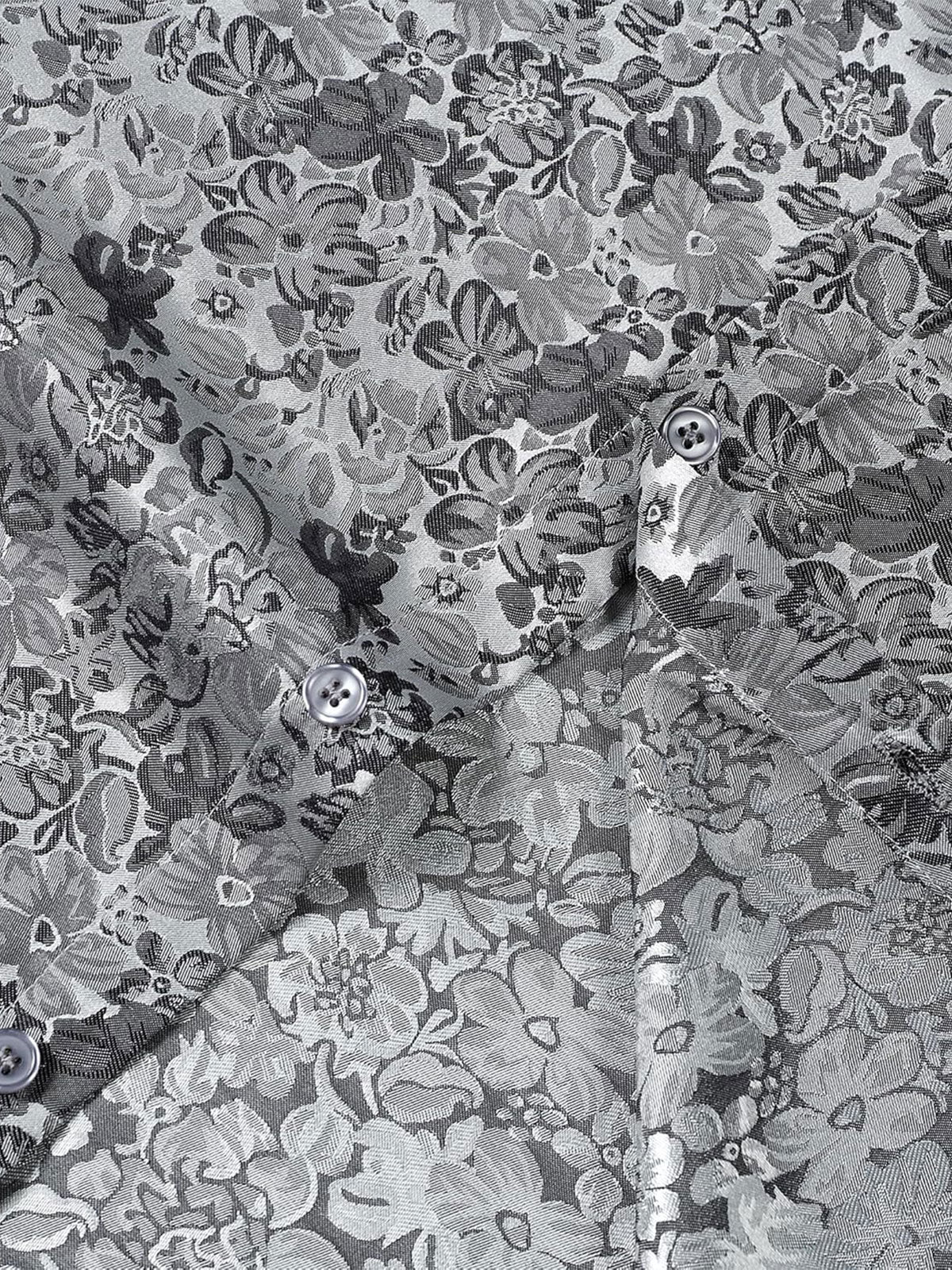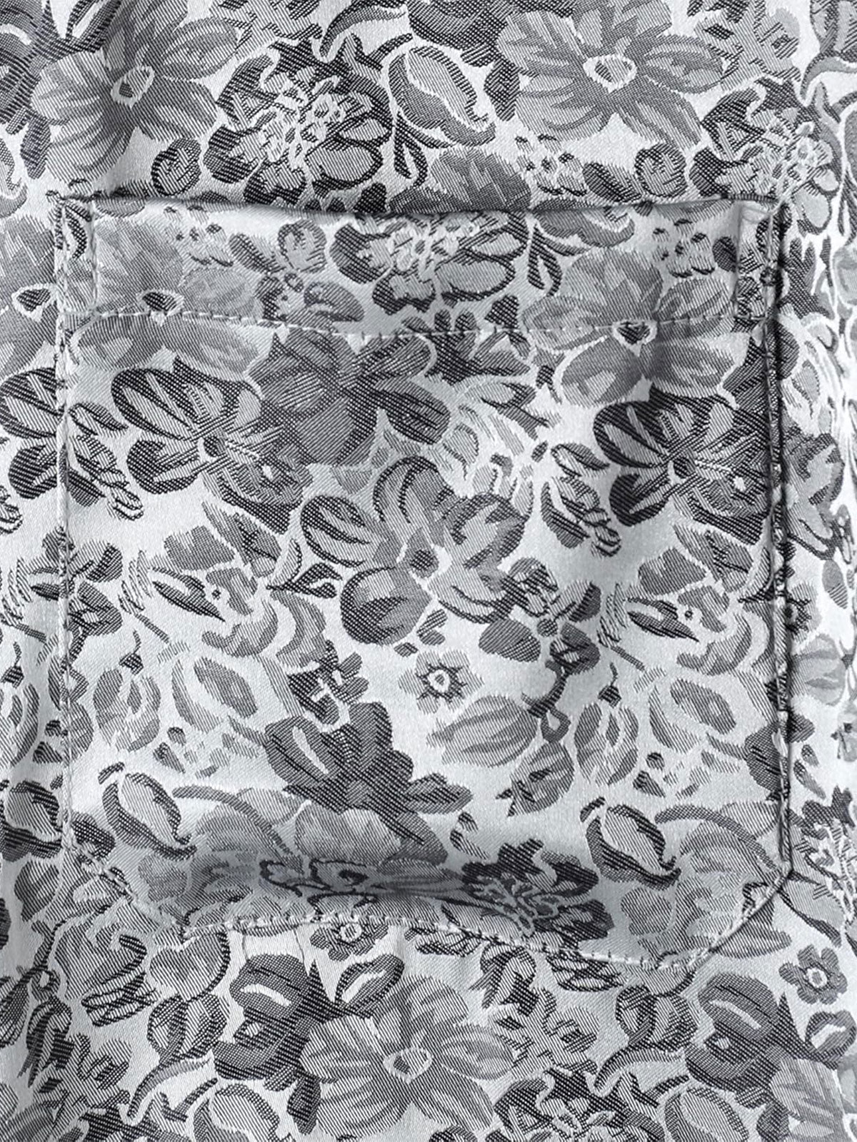 Men's Floral Print Jacquard Silk Satin Short Sleeve Shirt