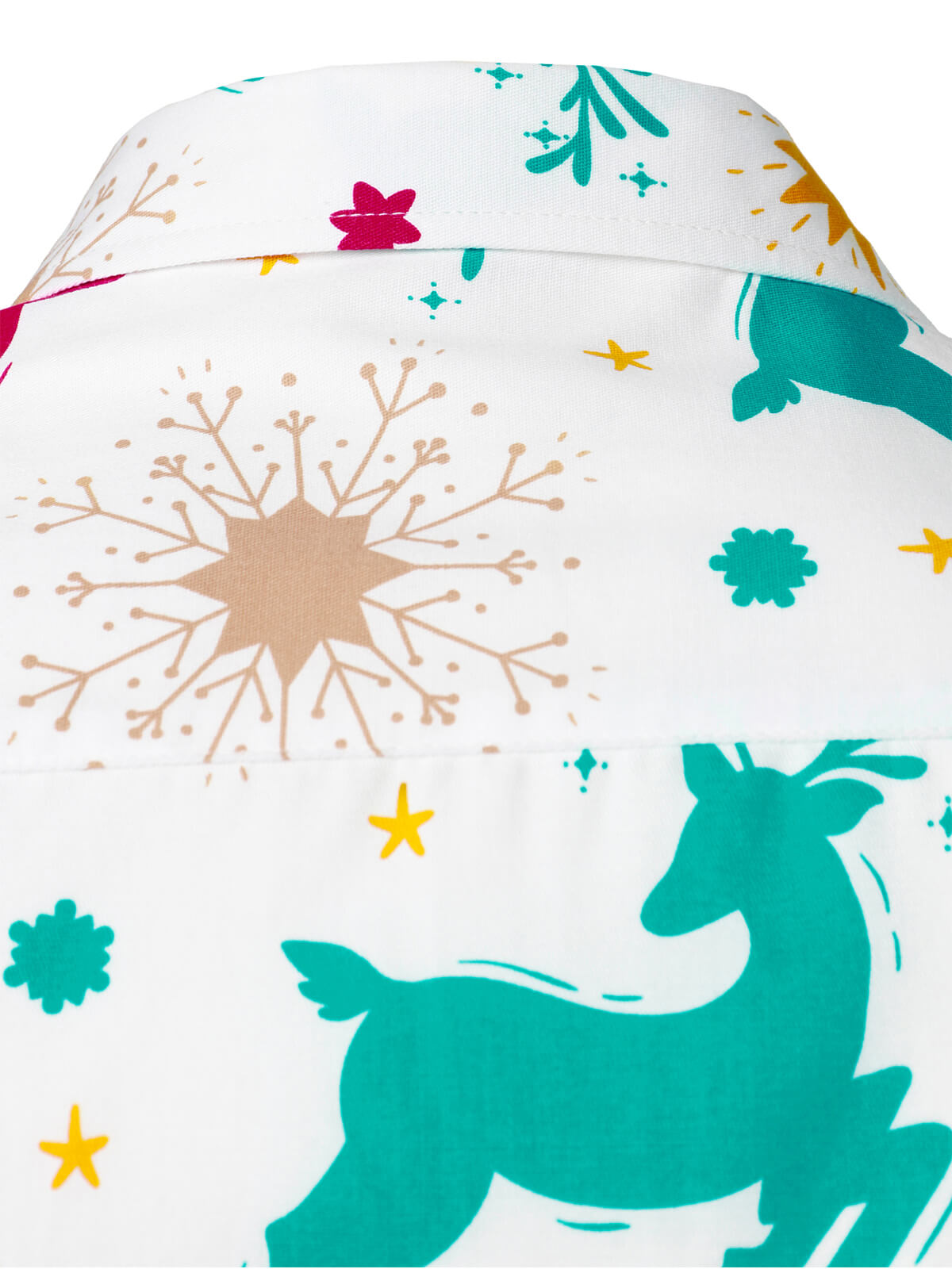Men's Holiday Forest Animal and Tree Christmas Print Button Up White Long Sleeve Shirt