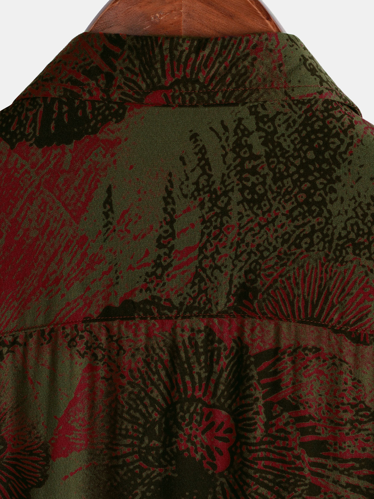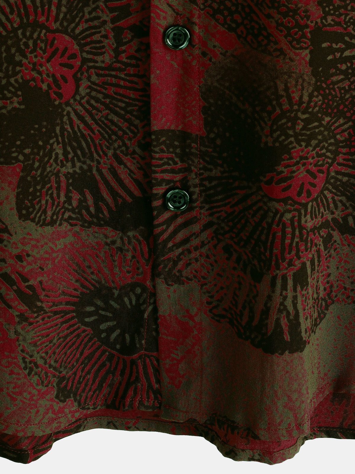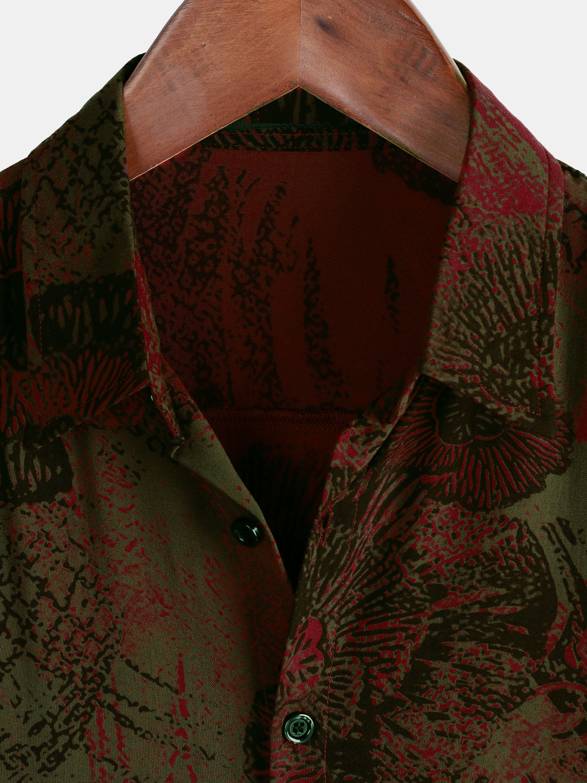 Men's Retro Floral Button Up Casual Short Sleeve Shirt