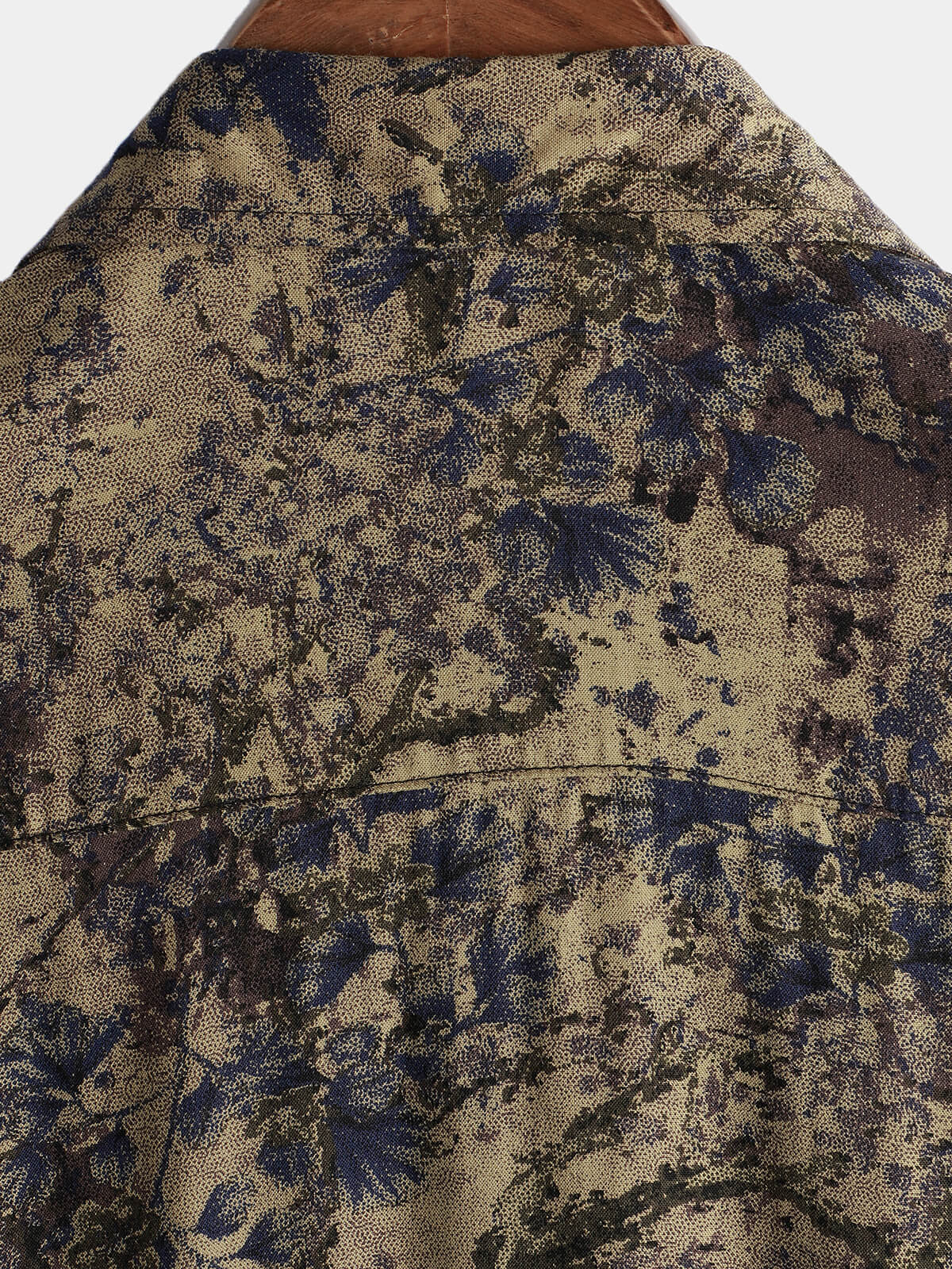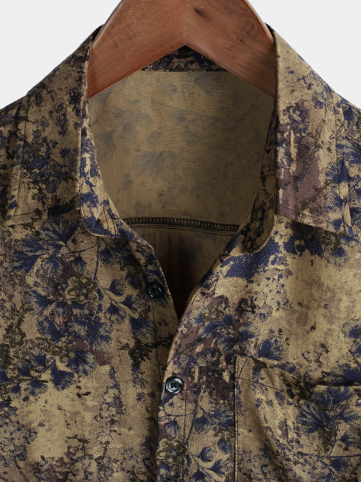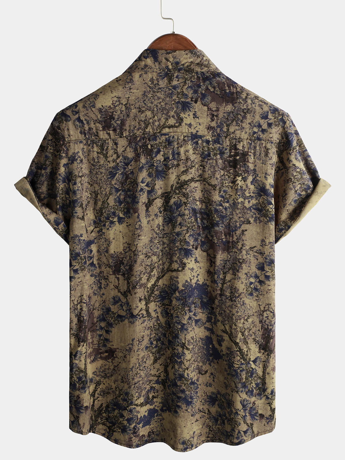 Men's Retro Floral Print Casual Short Sleeve Holiday Shirt