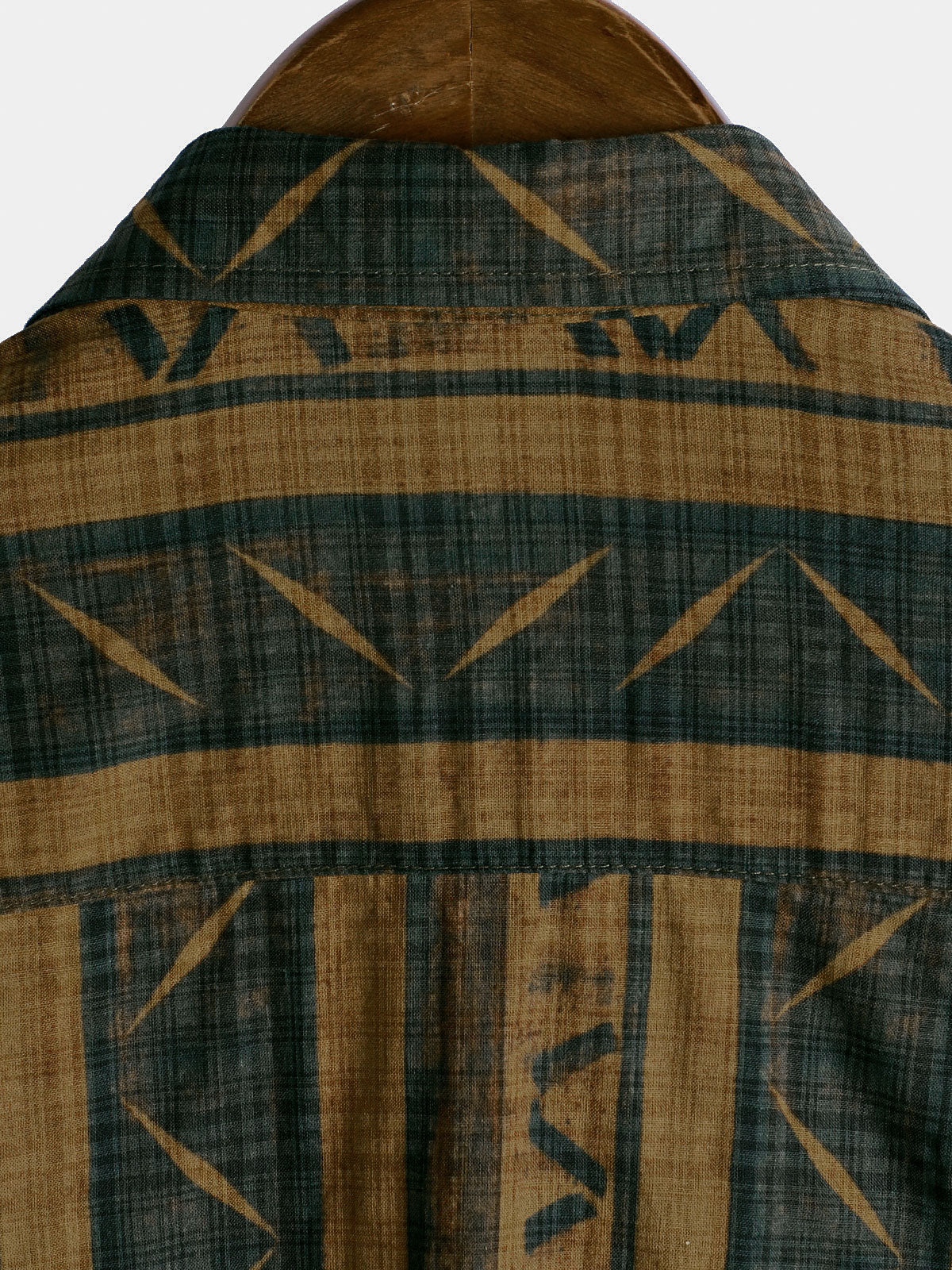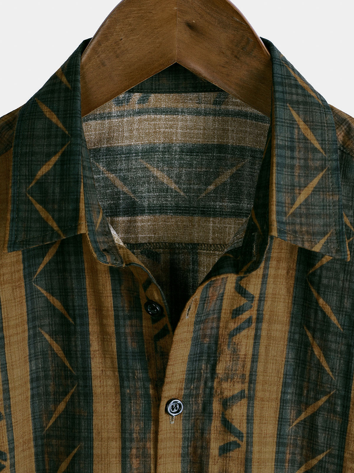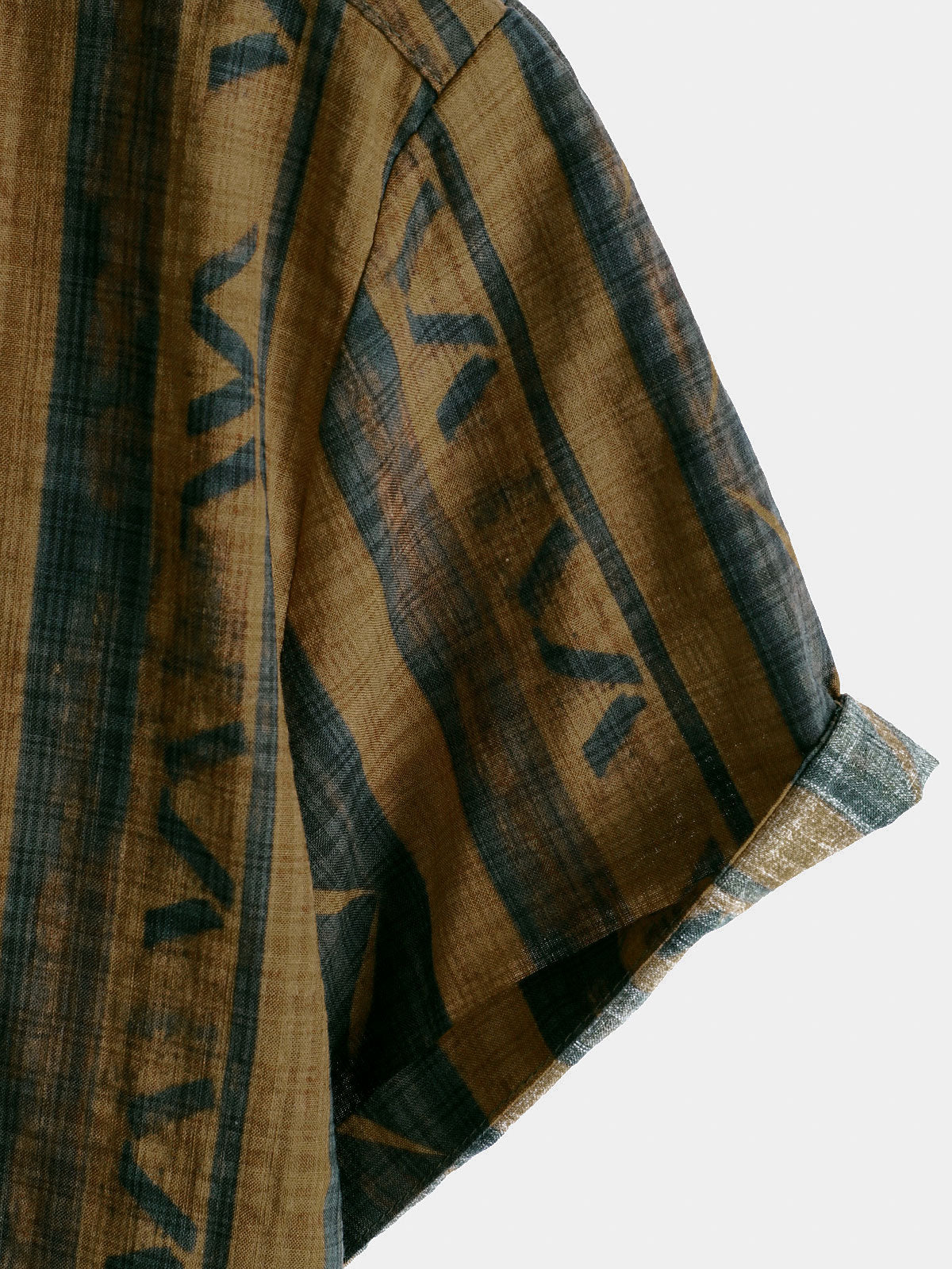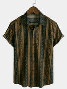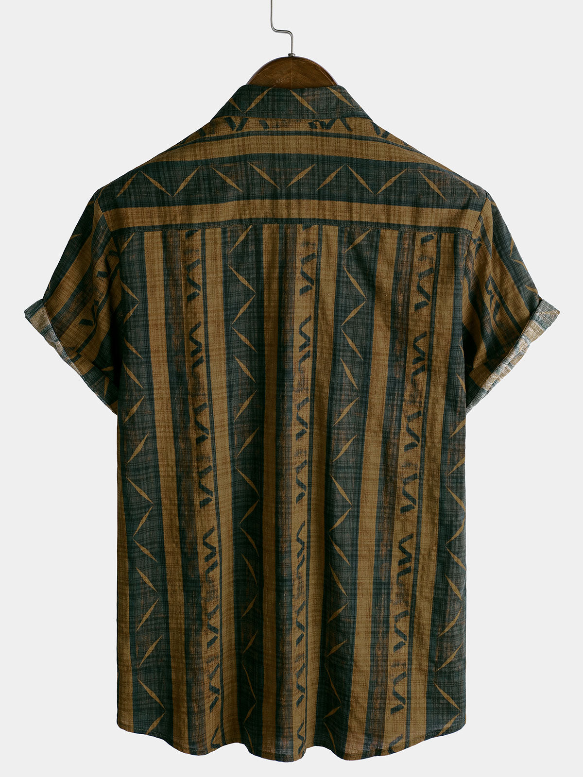 Men's Summer Casual Short Sleeve Cotton Retro Striped Shirt