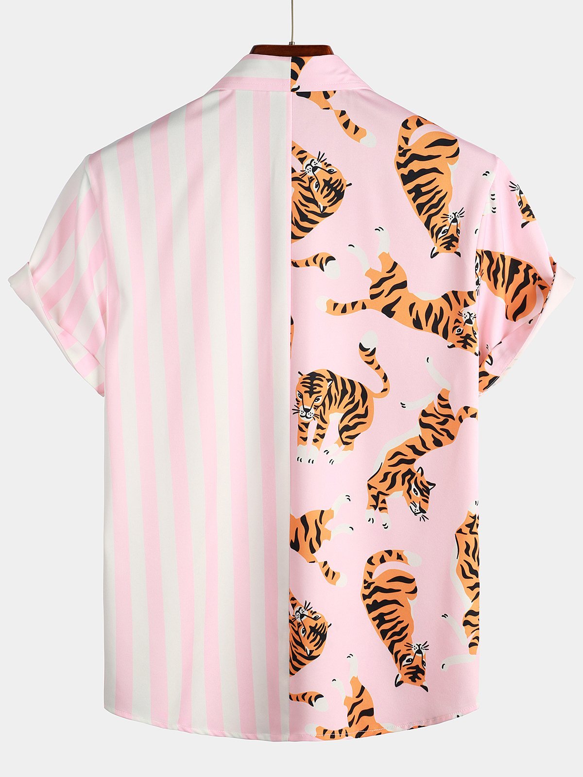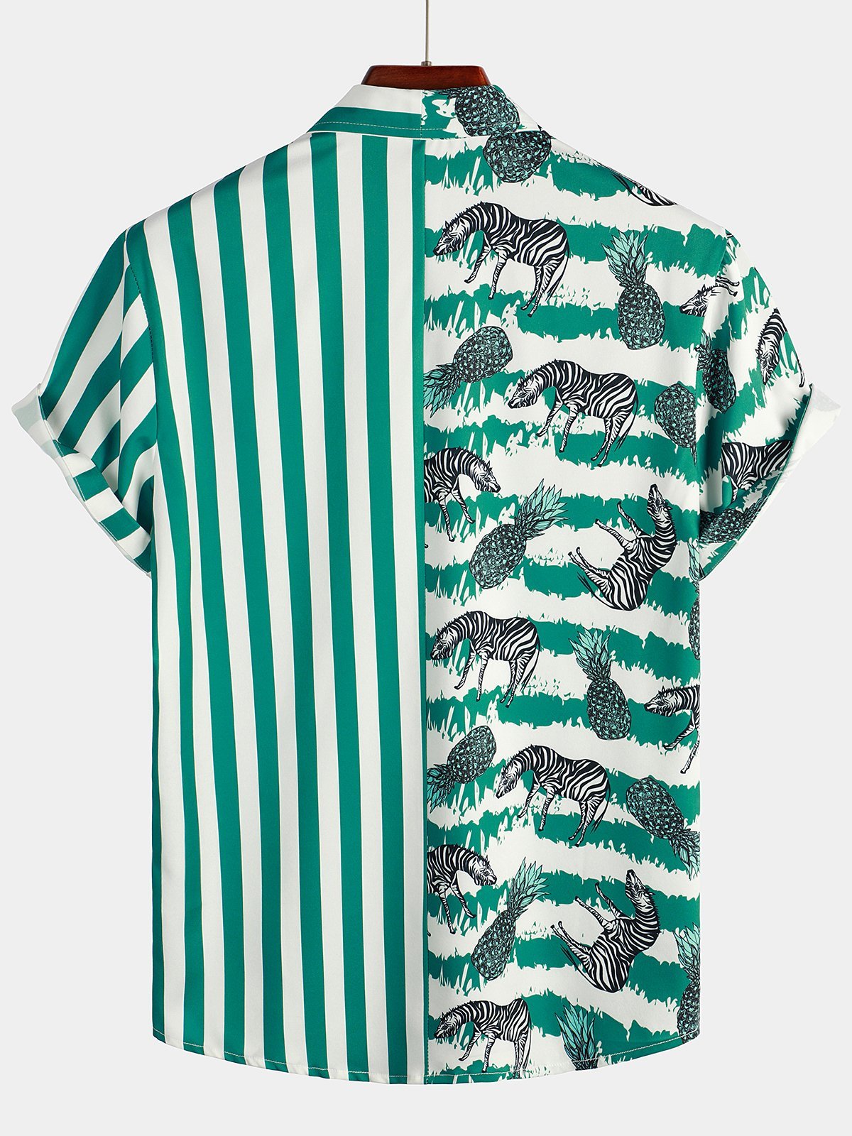 Men's Short Sleeve Animal Striped Patchwork Pocket Casual Shirt