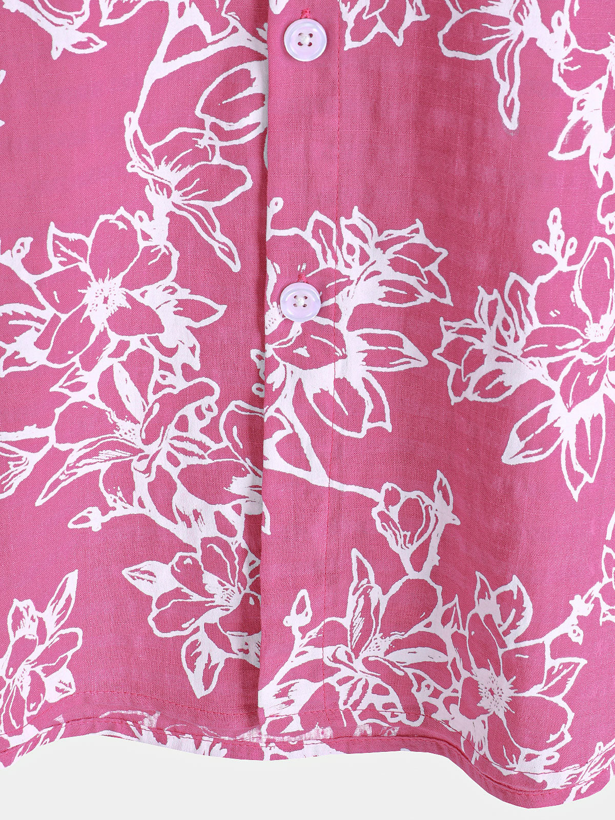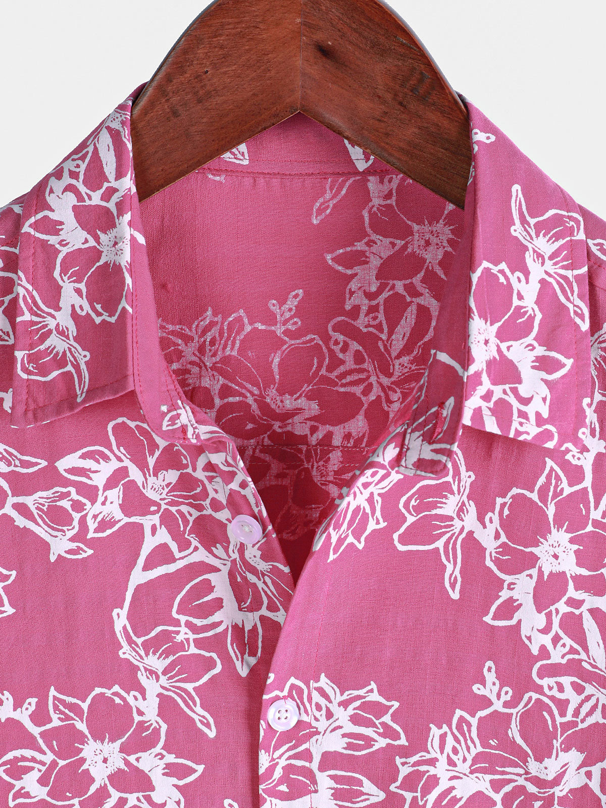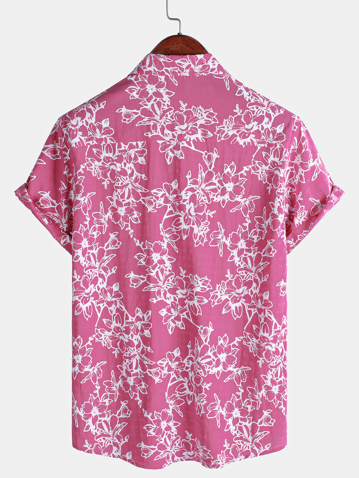 Men's Summer Casual Floral Holiday Beach Short Sleeve Cotton Shirt