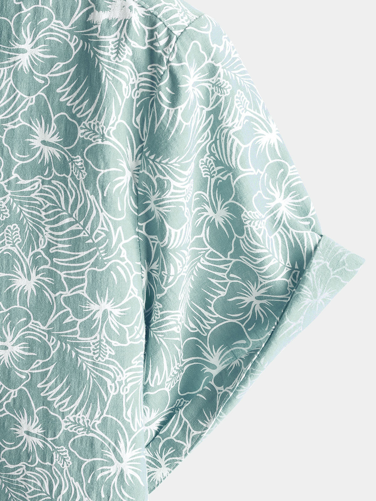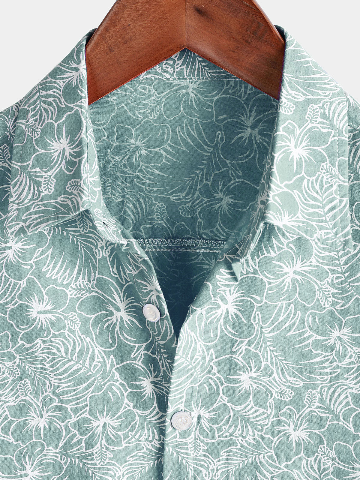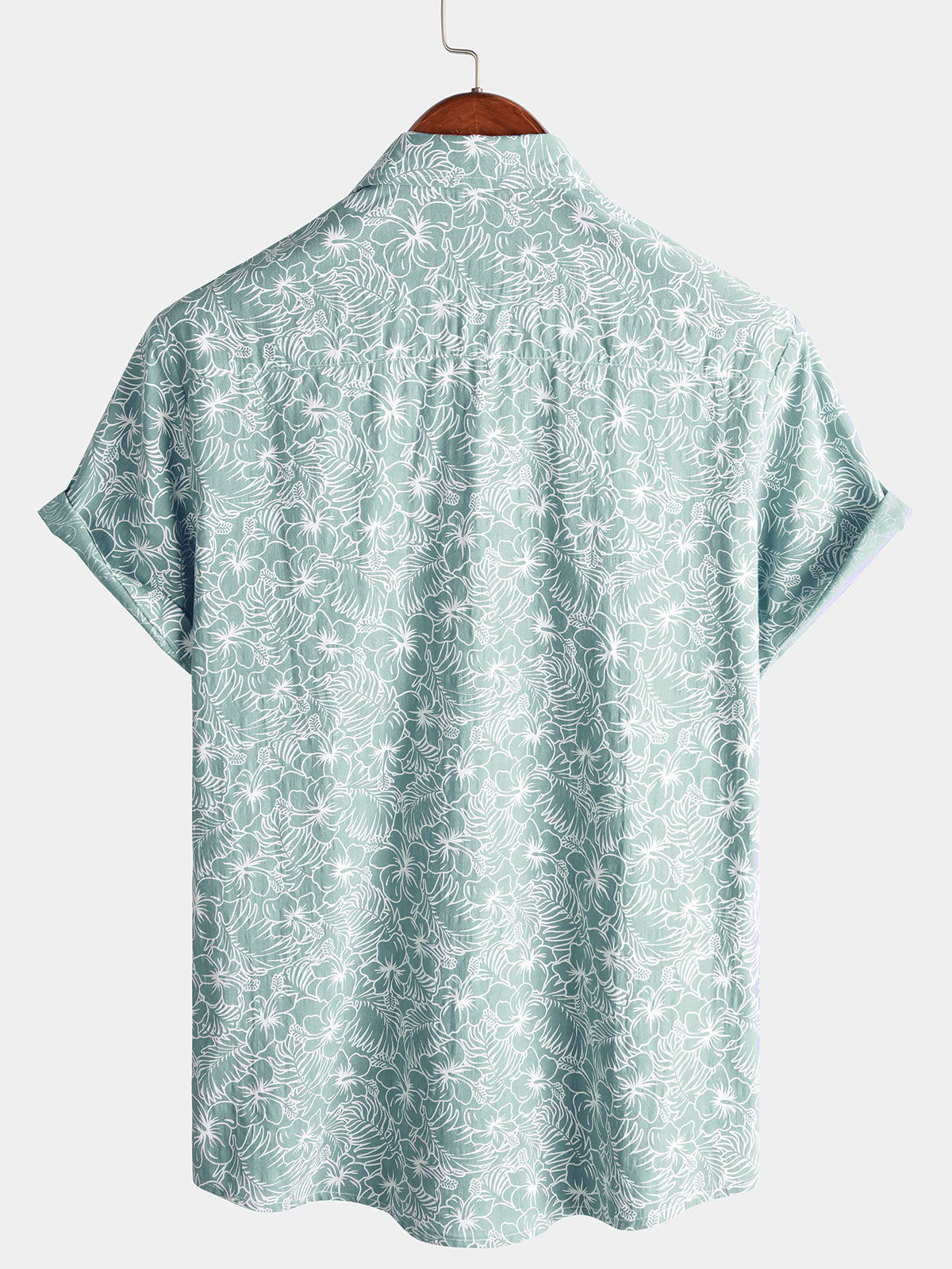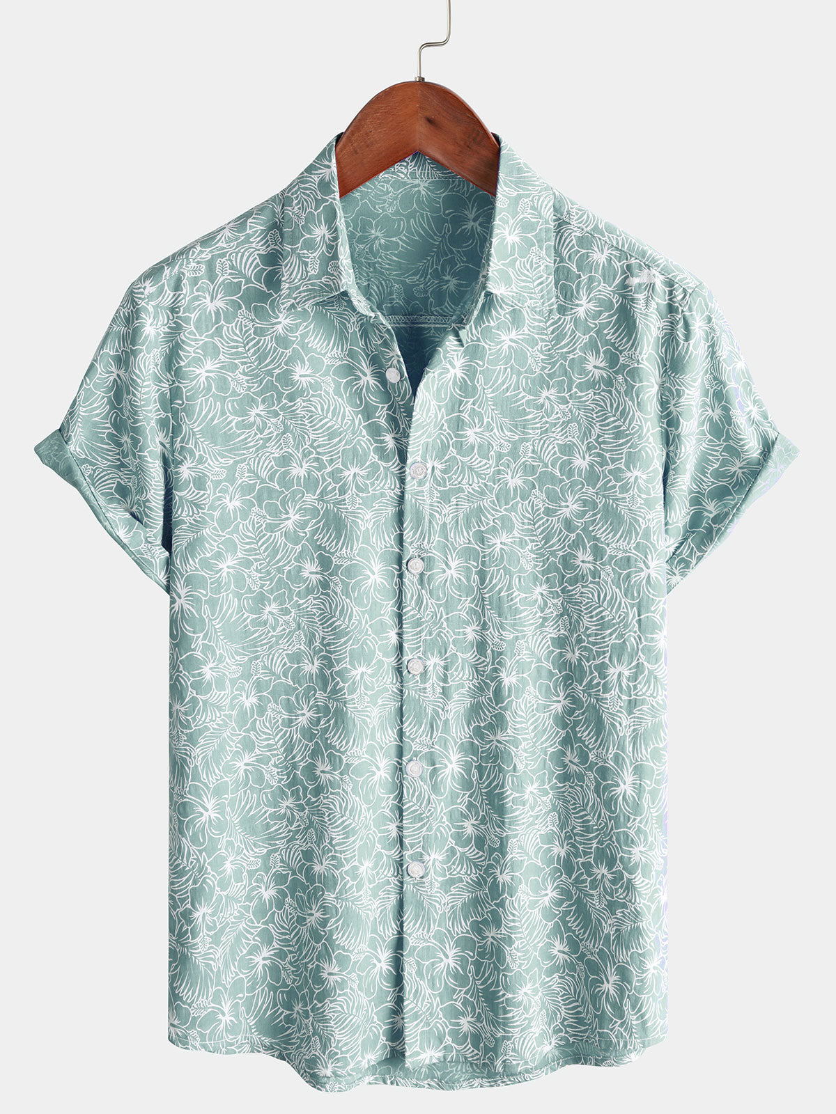 Men's Summer Floral Cotton Short Sleeve Holiday Beach Shirt