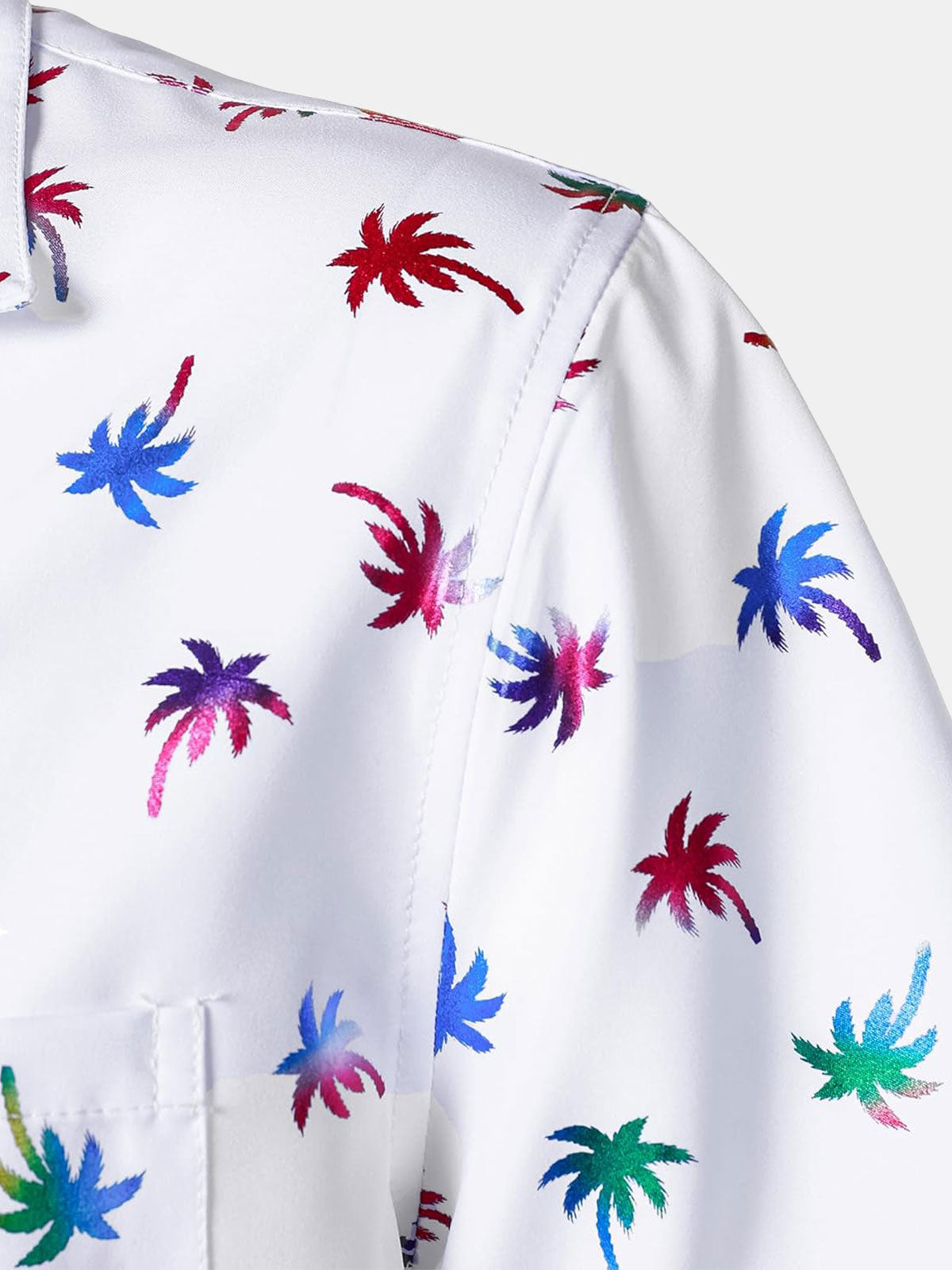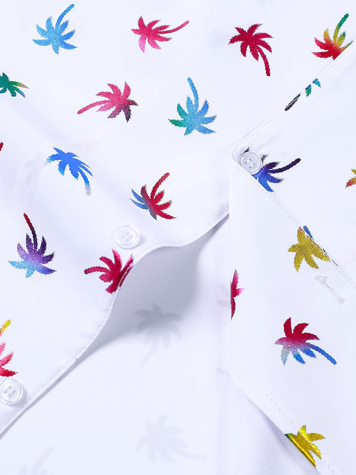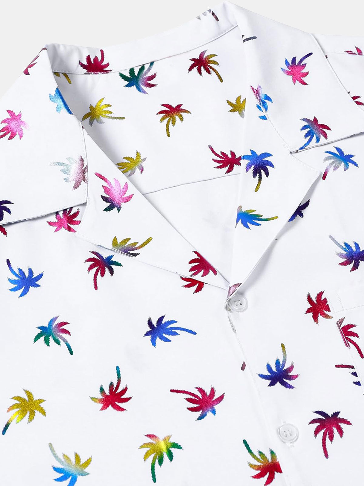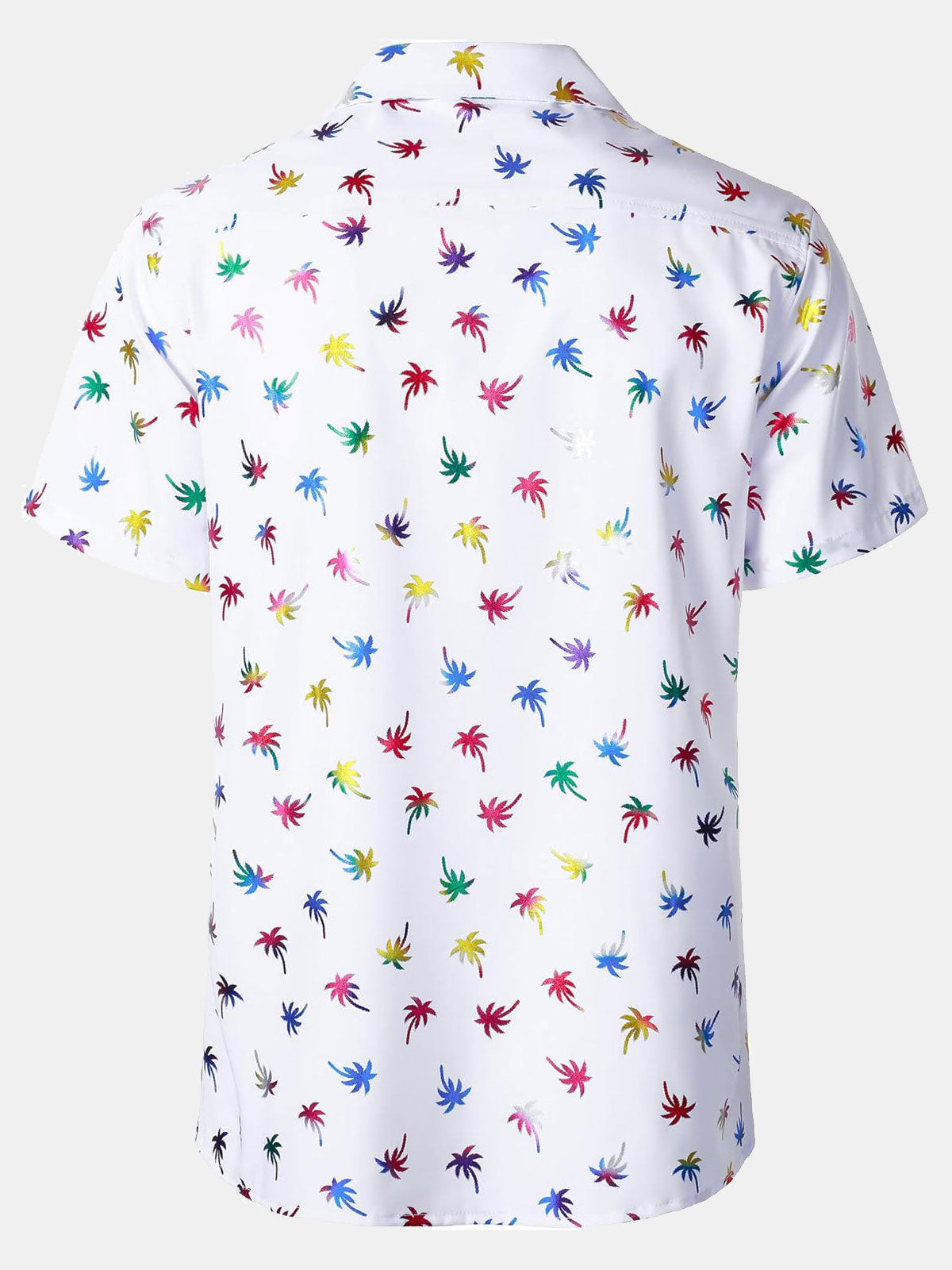 Men's Tropical Colorful Print Cuban Collar Short Sleeve Shirt