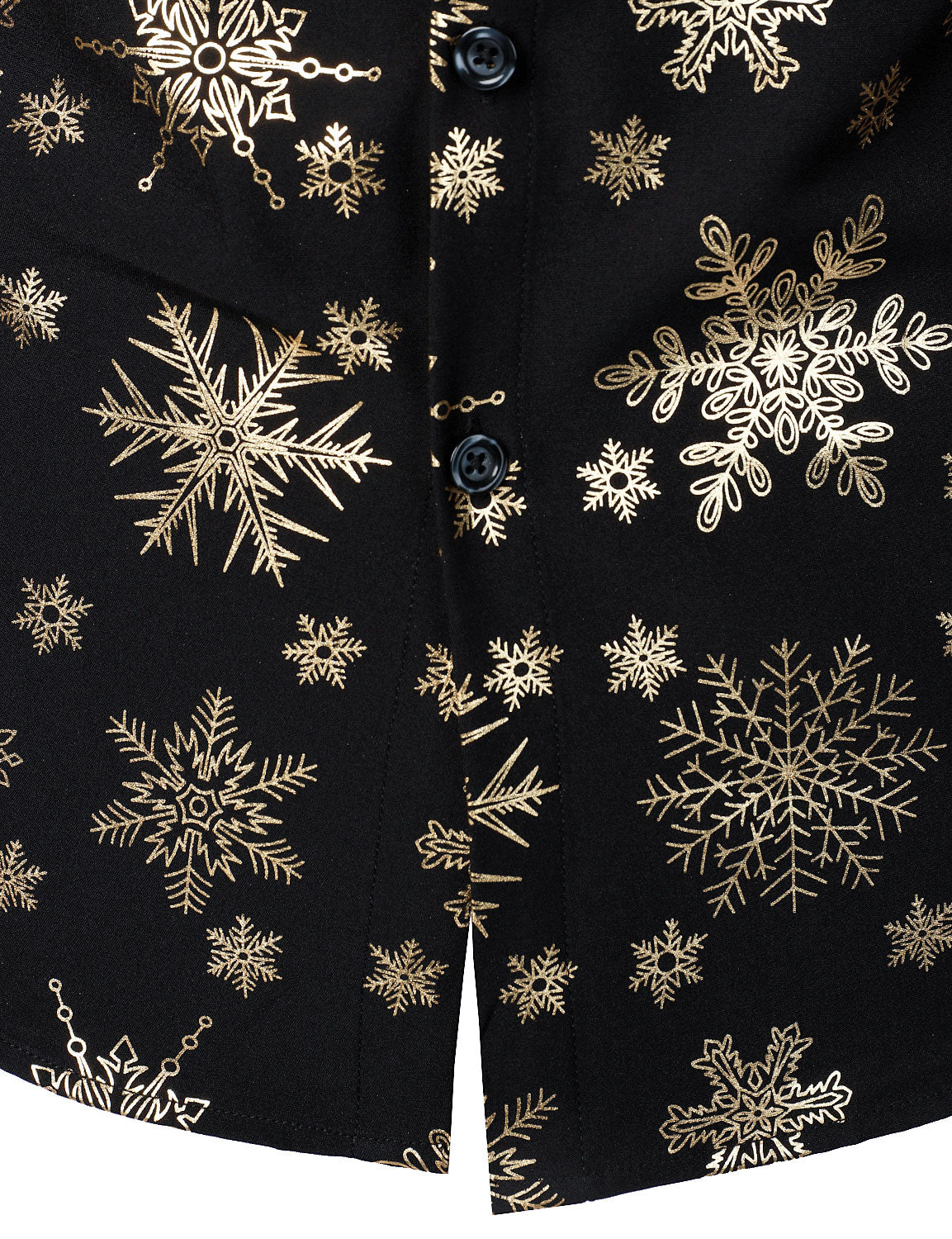 Men's Golden Christmas Snowflake Print Long Sleeve Shirt