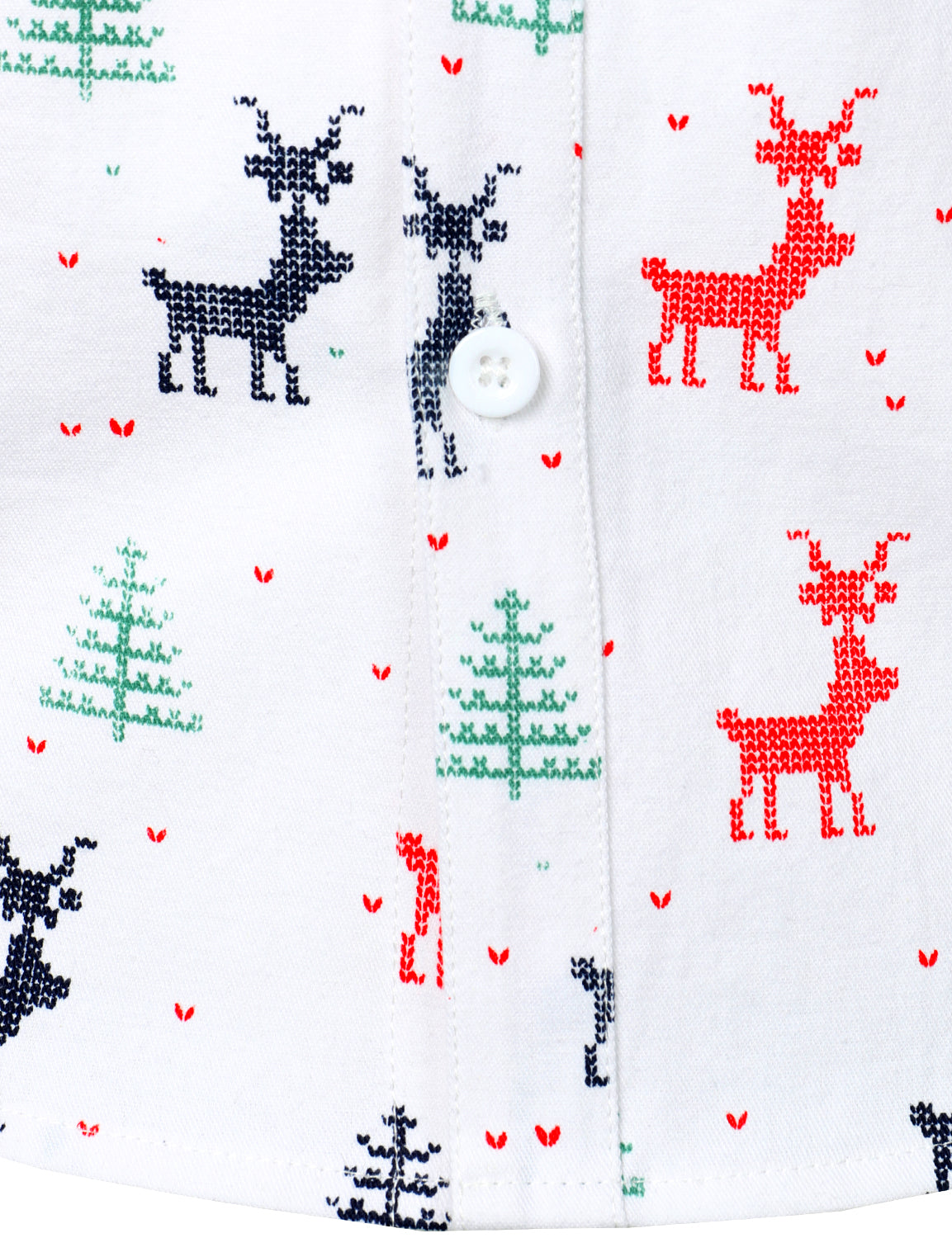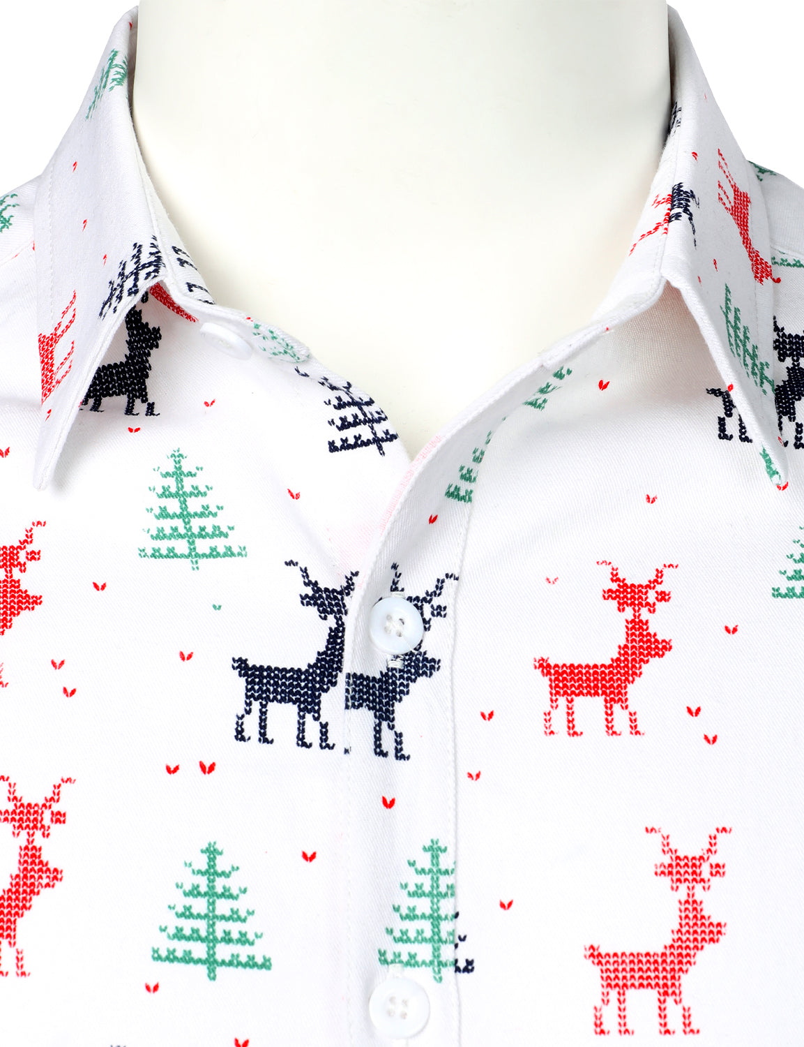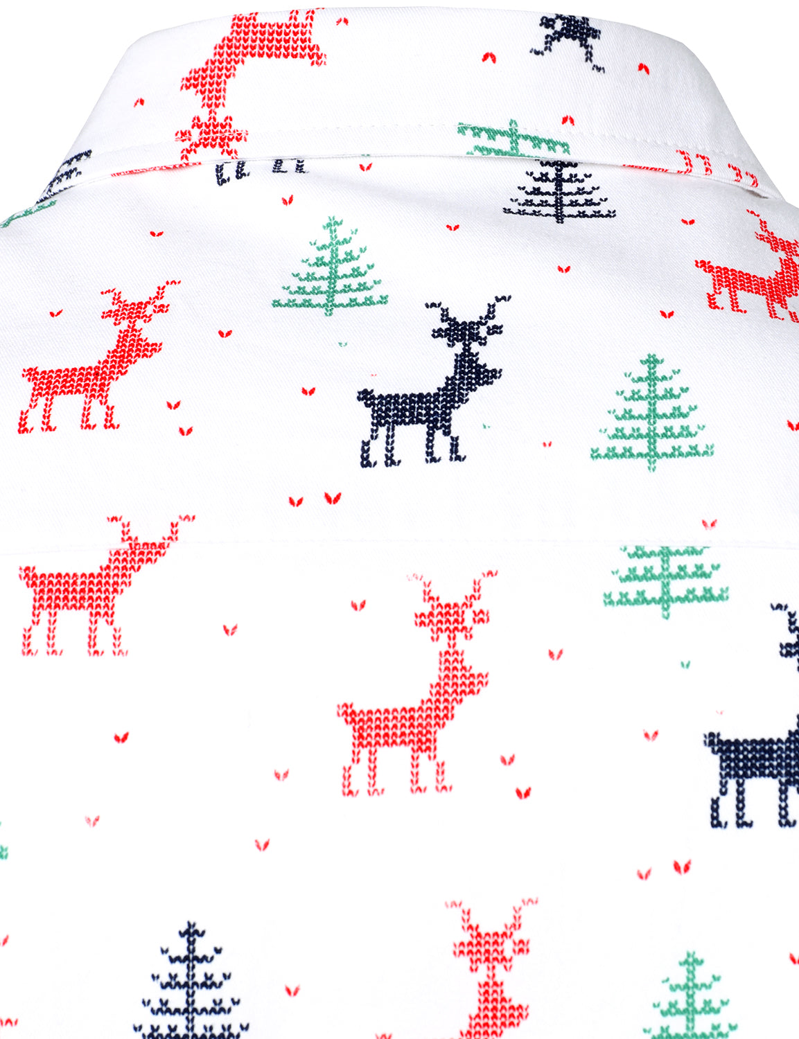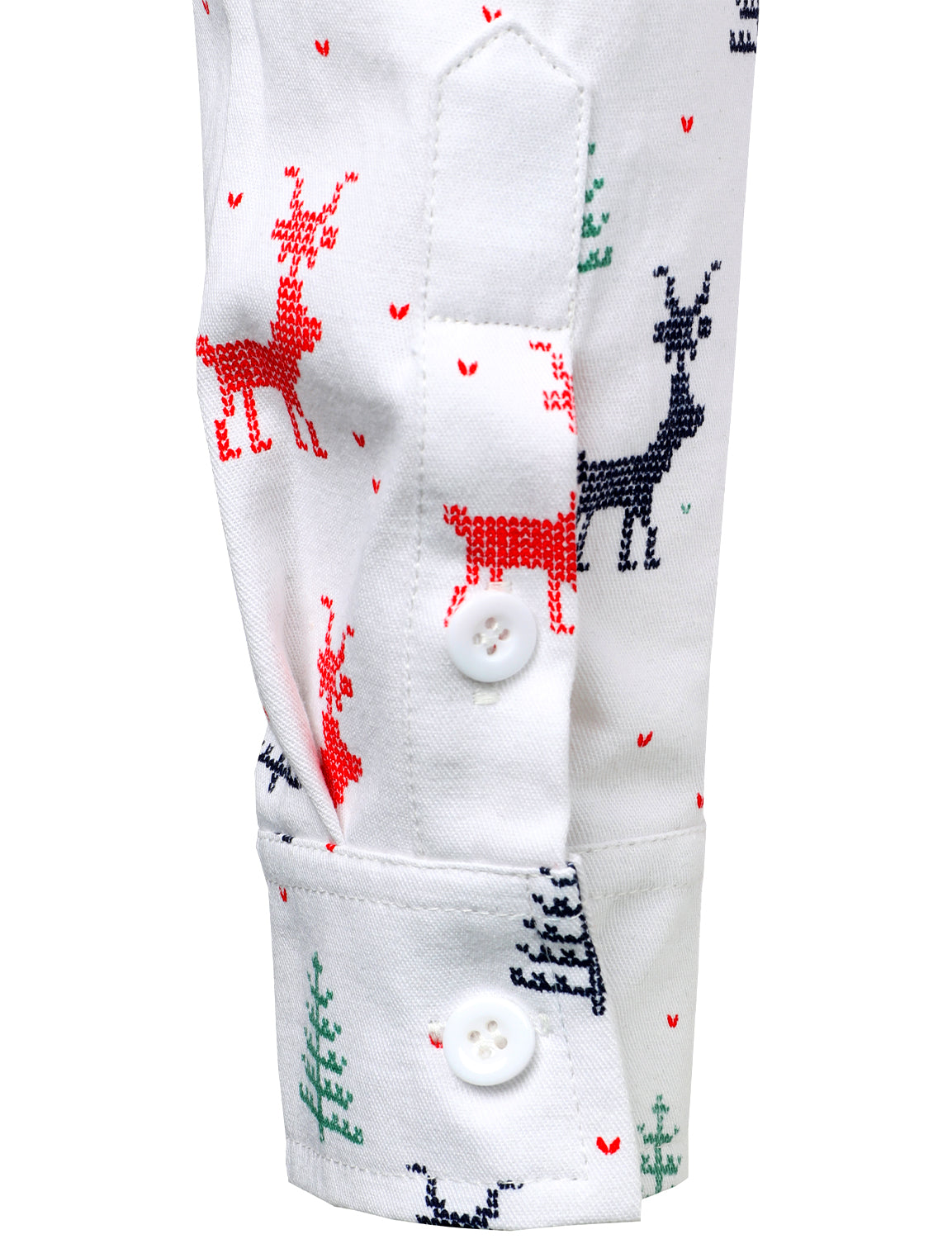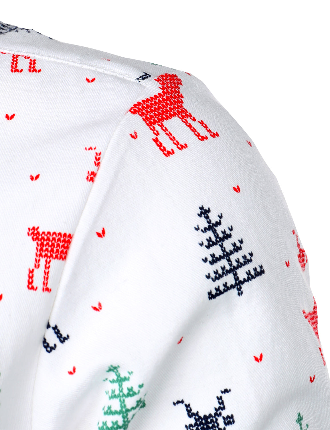 Men's Christmas Print Regular Fit White Button Down Long Sleeve Dress Shirt