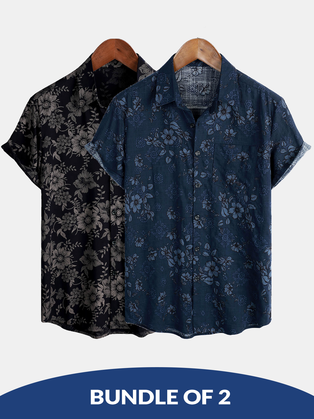 Bundle Of 2 | Men's Floral Hawaiian Vintage Short Sleeve Shirt