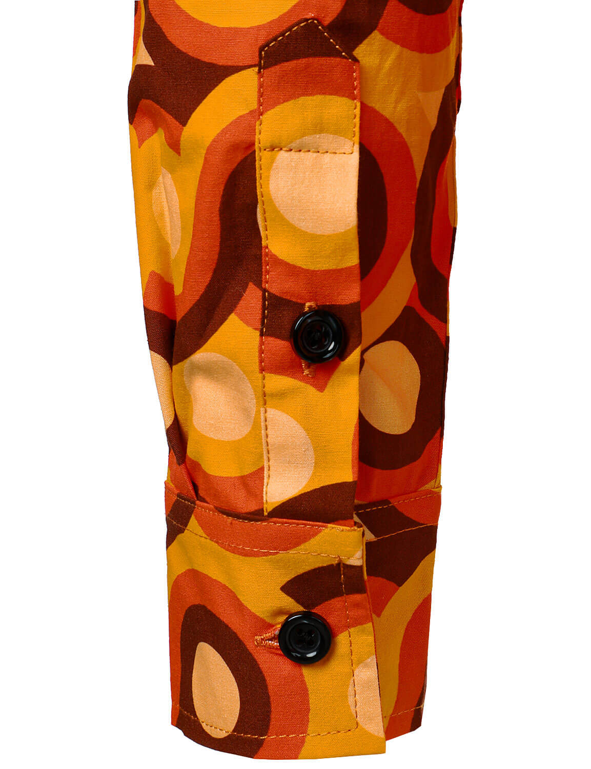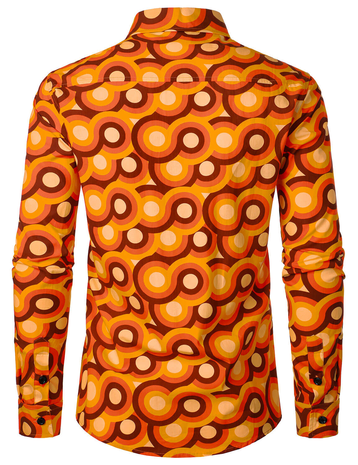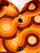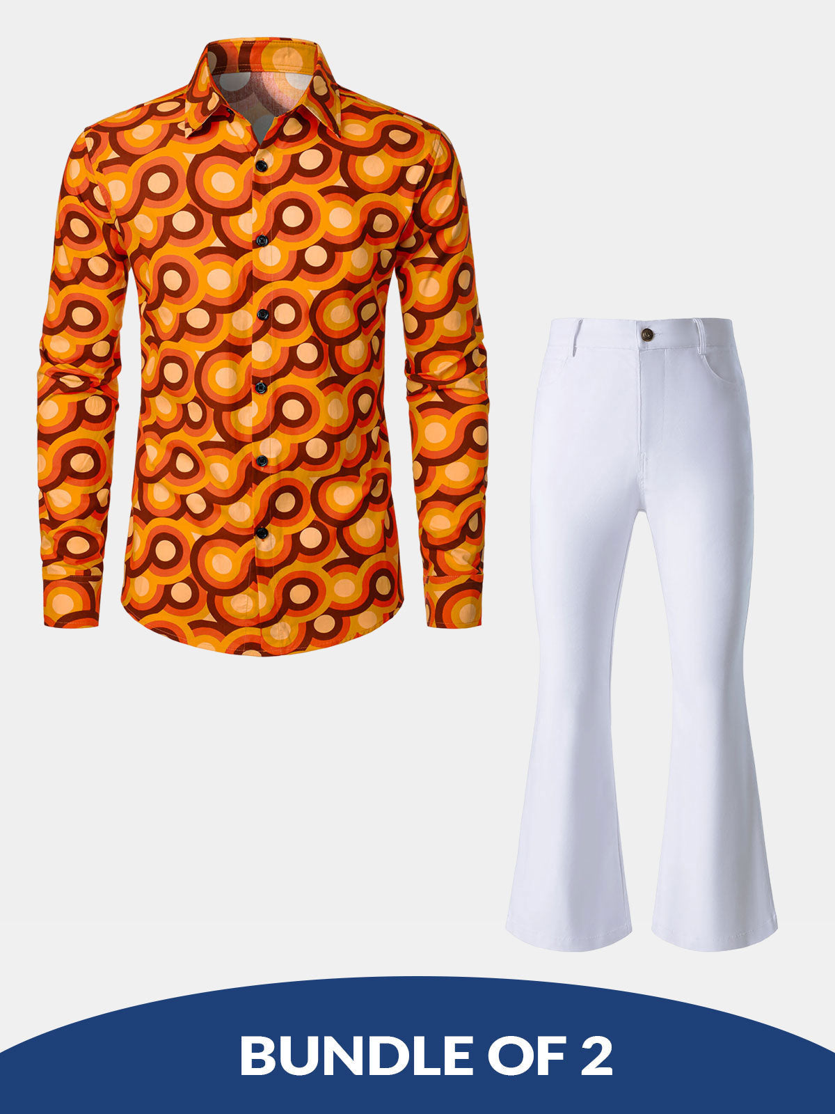 Bundle Of 2 | Men's Orange 70s Retro Vintage Geometric Circle Long Sleeve Shirt & Disco Slim Fit Retro Flared Trousers