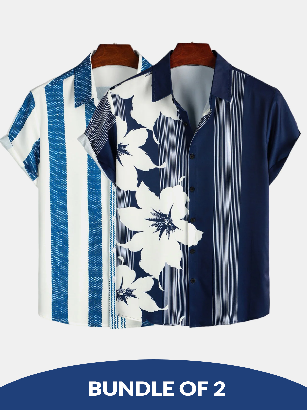 Bundle Of 2 | Men's Vintage Blue Casual Short Sleeve Shirts