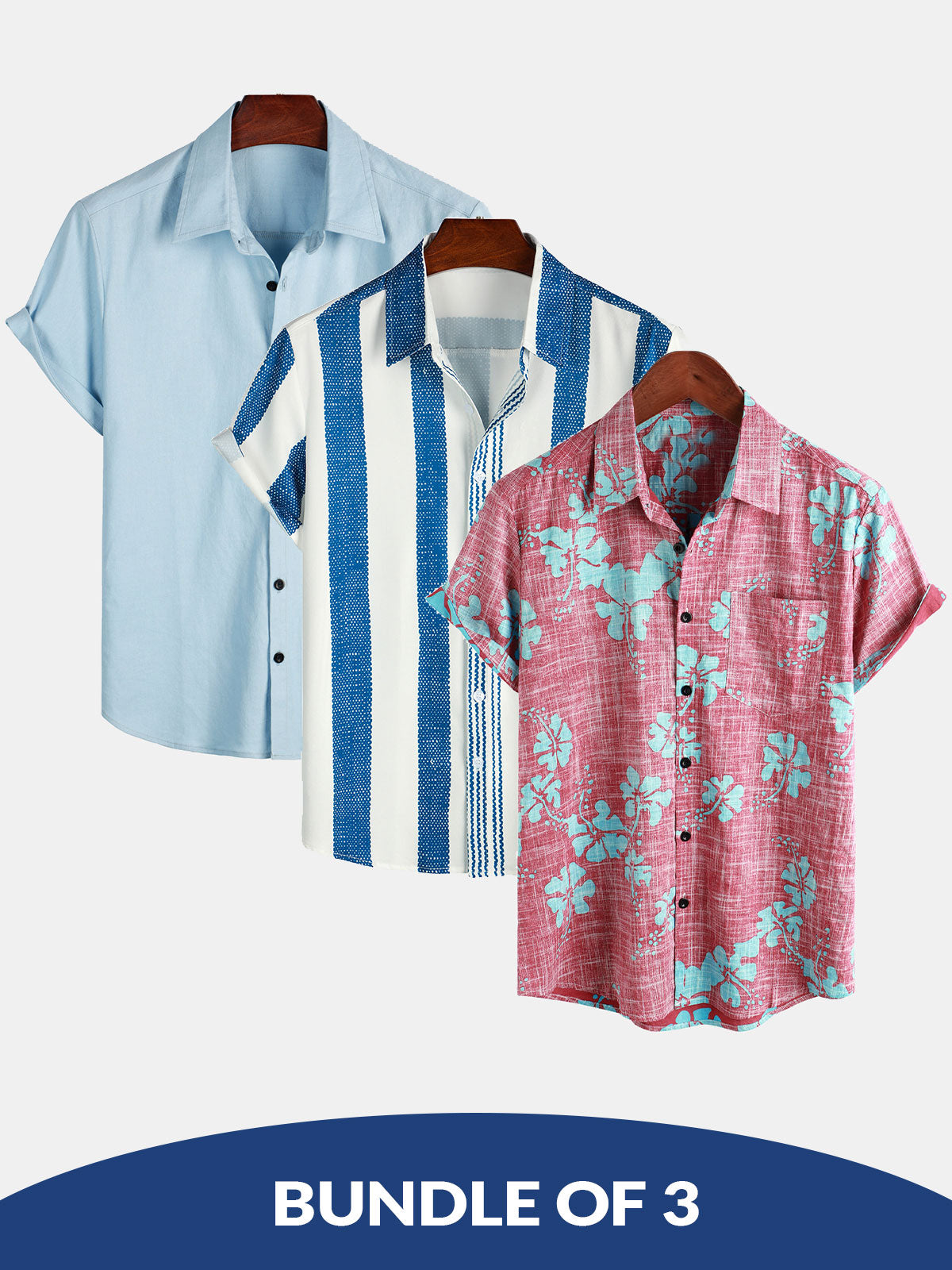 Bundle Of 3 | Men's Beach Summer Short Sleeve Hawaiian Shirts