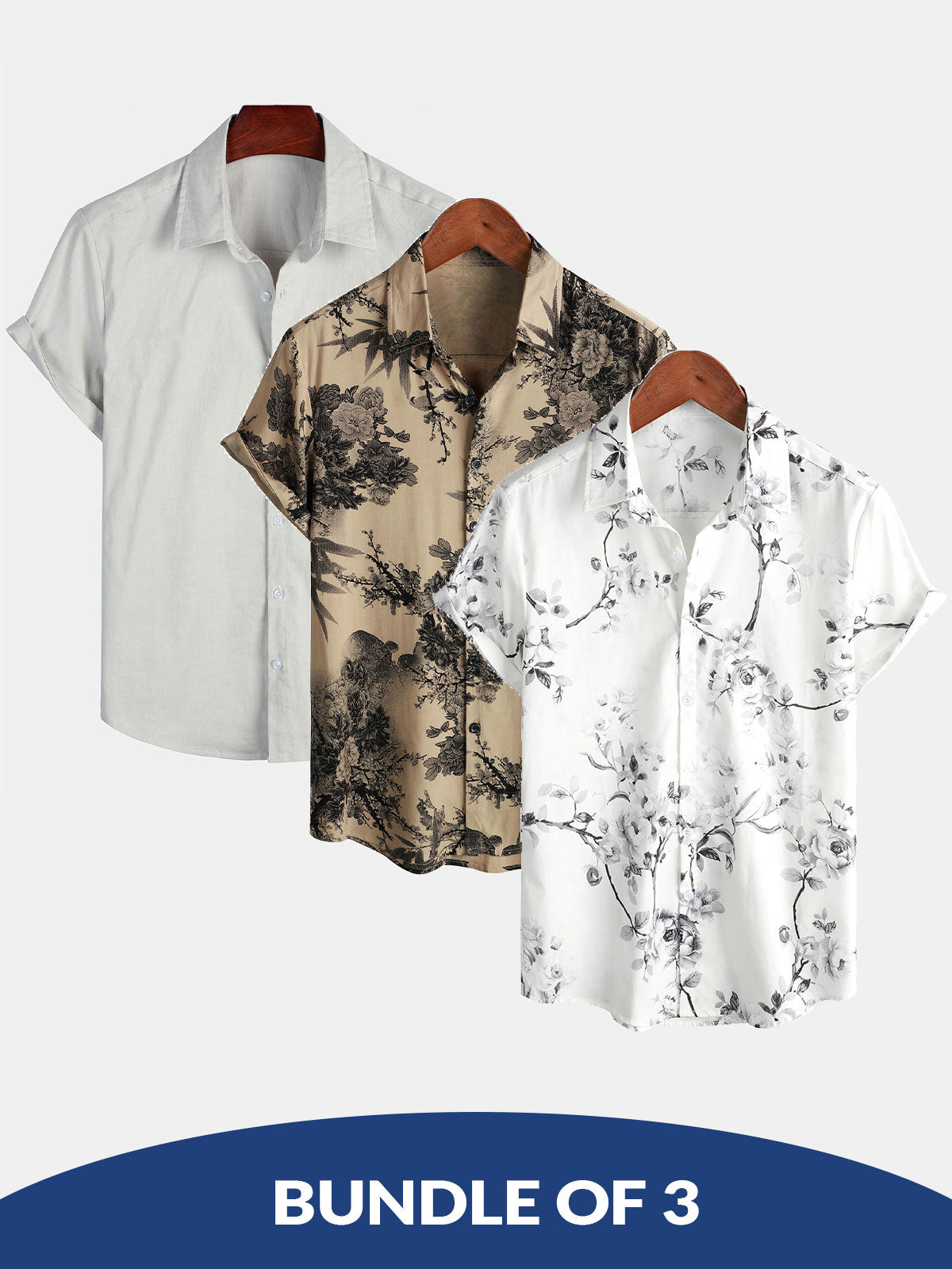 Bundle Of 3 | Men's Casual Button Short Sleeve Hawaiian Shirt