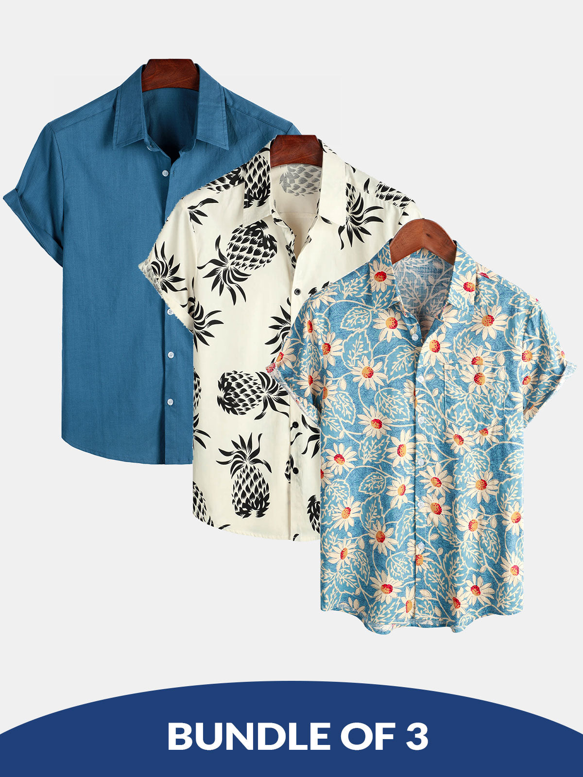 Bundle Of 3 | Men's Hawaiian Beach Summer Short Sleeve Shirts