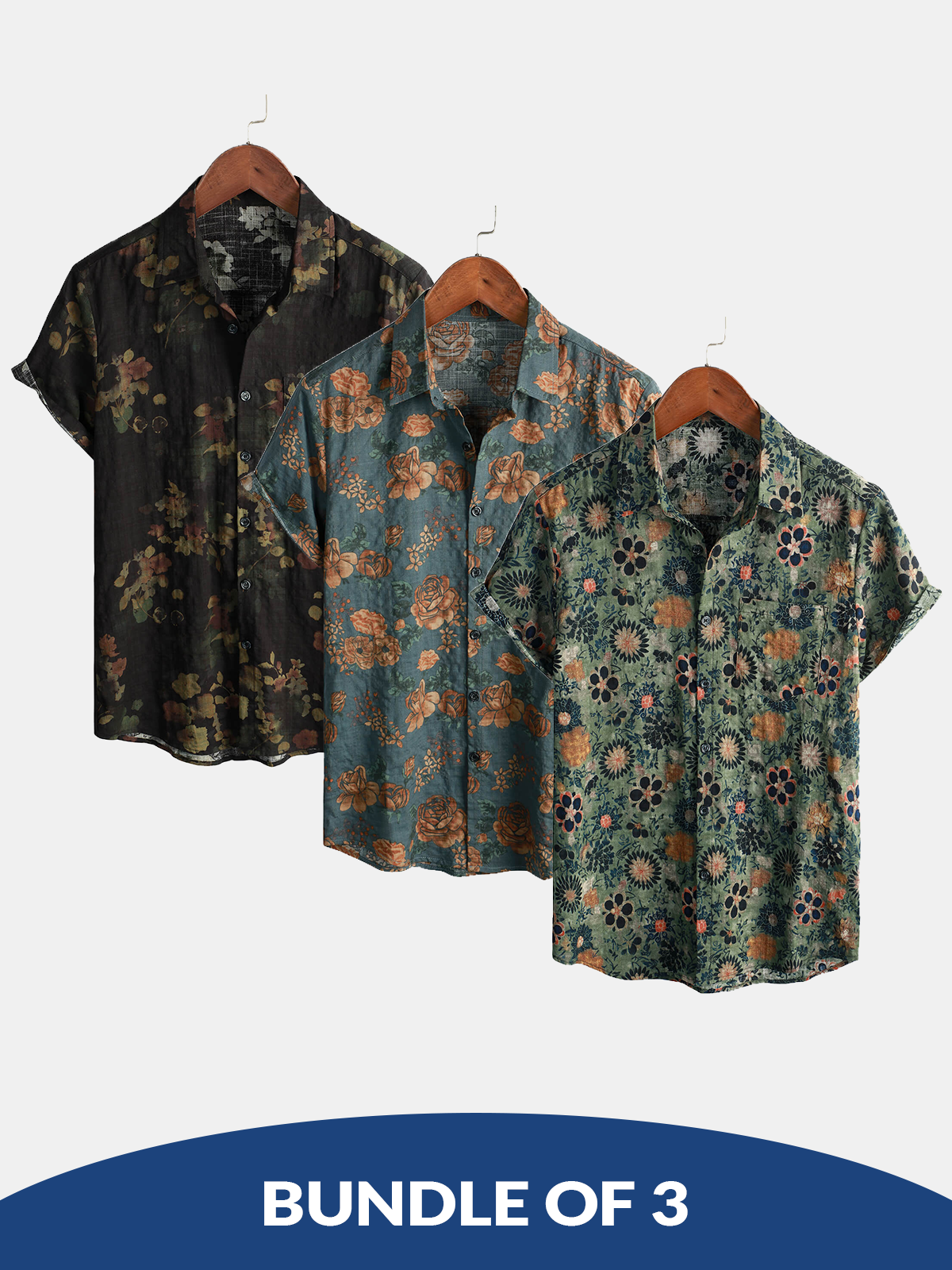 Bundle Of 3 | Men's Vintage Floral Retro Button Up Short Sleeve Shirt