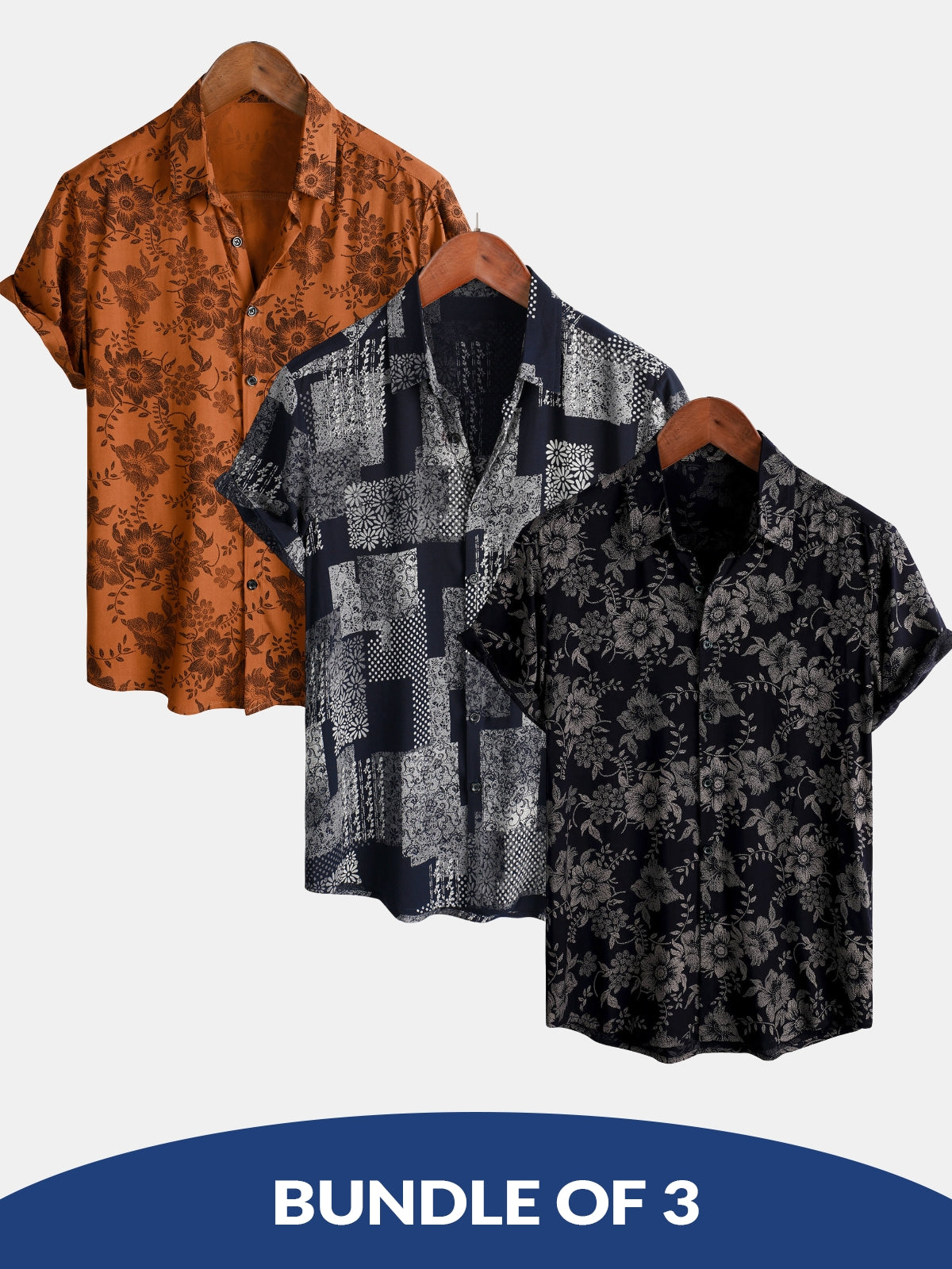 Bundle Of 3 | Men's Vintage Paisley Print 70s Button Up Retro Short Sleeve Shirt
