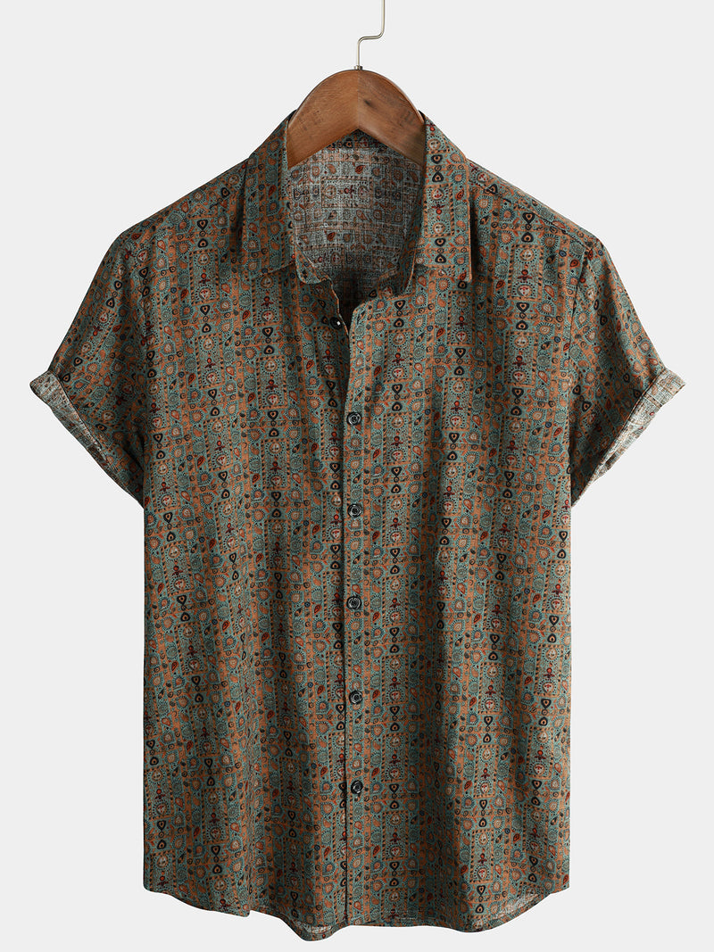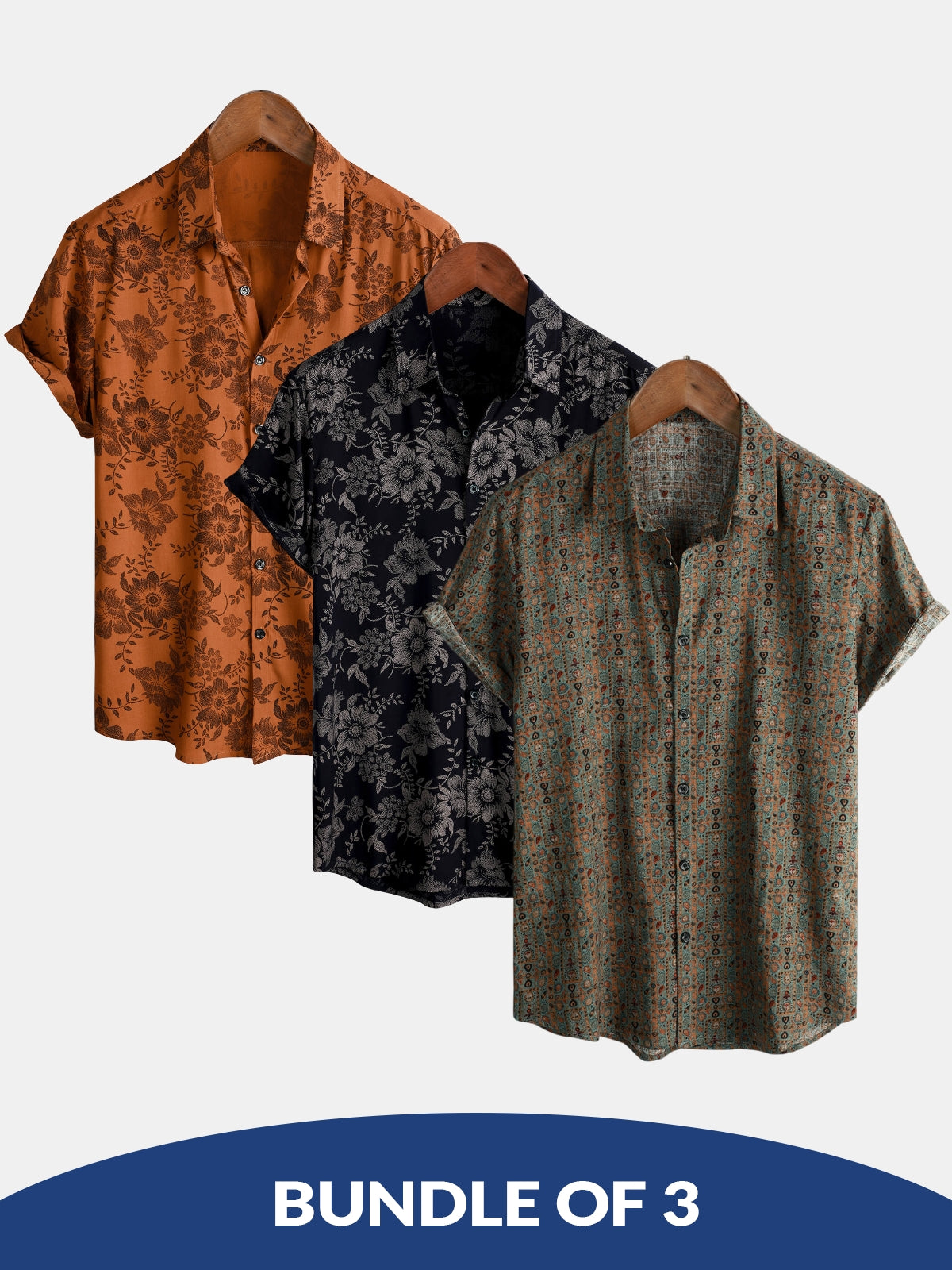 Bundle Of 3 | Men's Vintage Paisley Print 70s Button Up Retro Tribal Short Sleeve Shirt