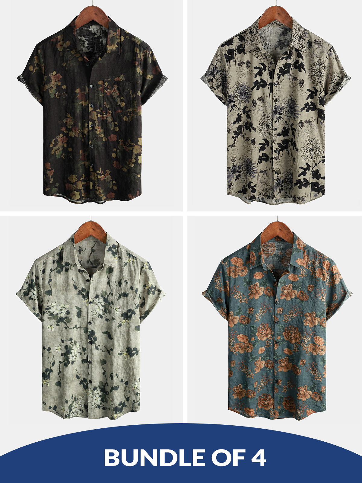 Bundle Of 4 | Men's Retro Short Sleeve Casual Cotton Beach Shirts