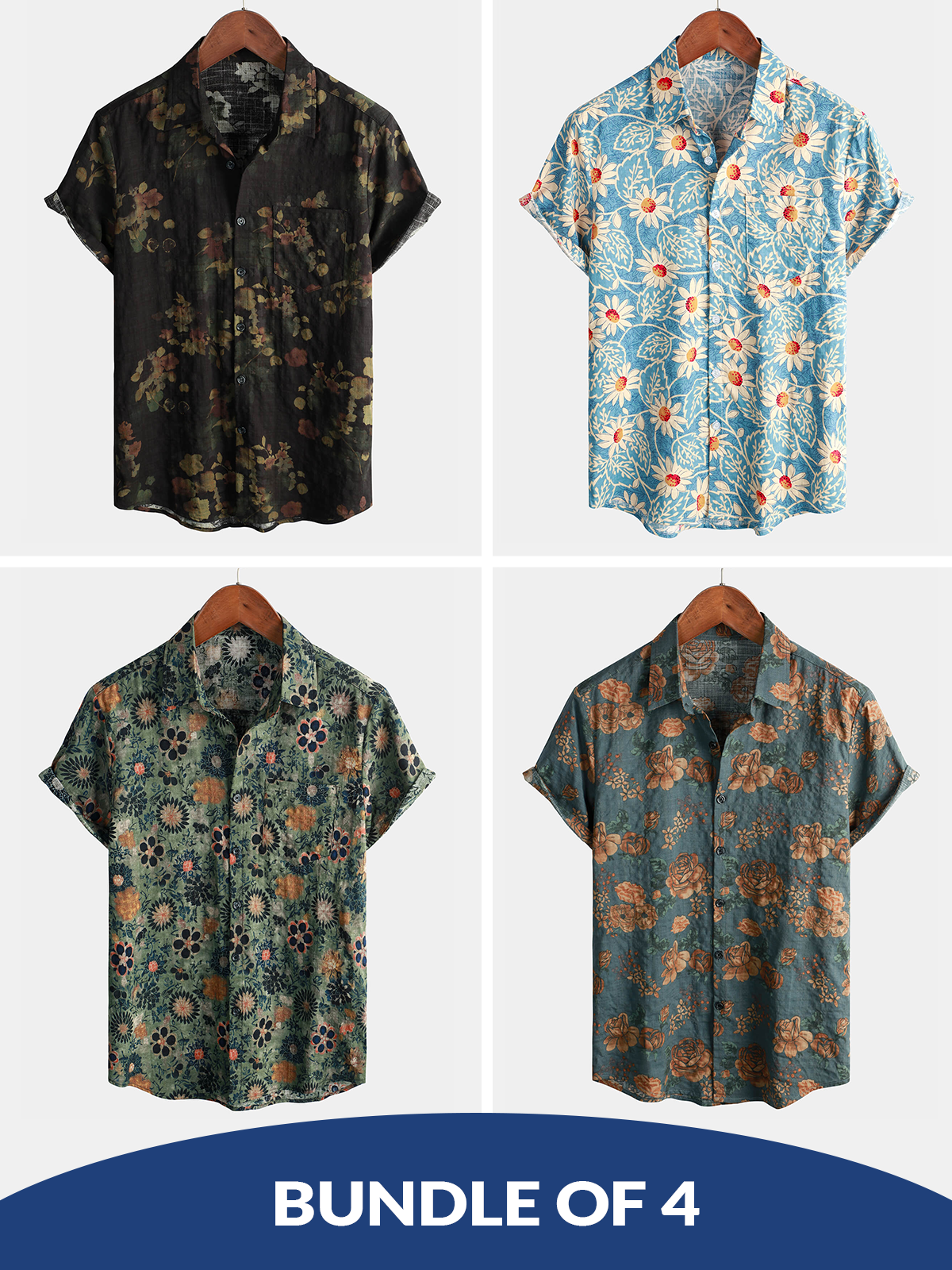 Bundle Of 4 | Men's Short Sleeve Casual Cotton Beach Shirts
