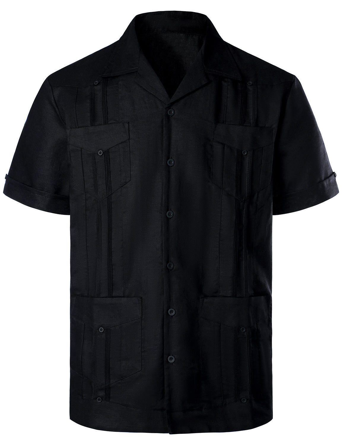 Men’s Linen Cuban Guayabera Casual Button Up Short Sleeve Summer Shirt