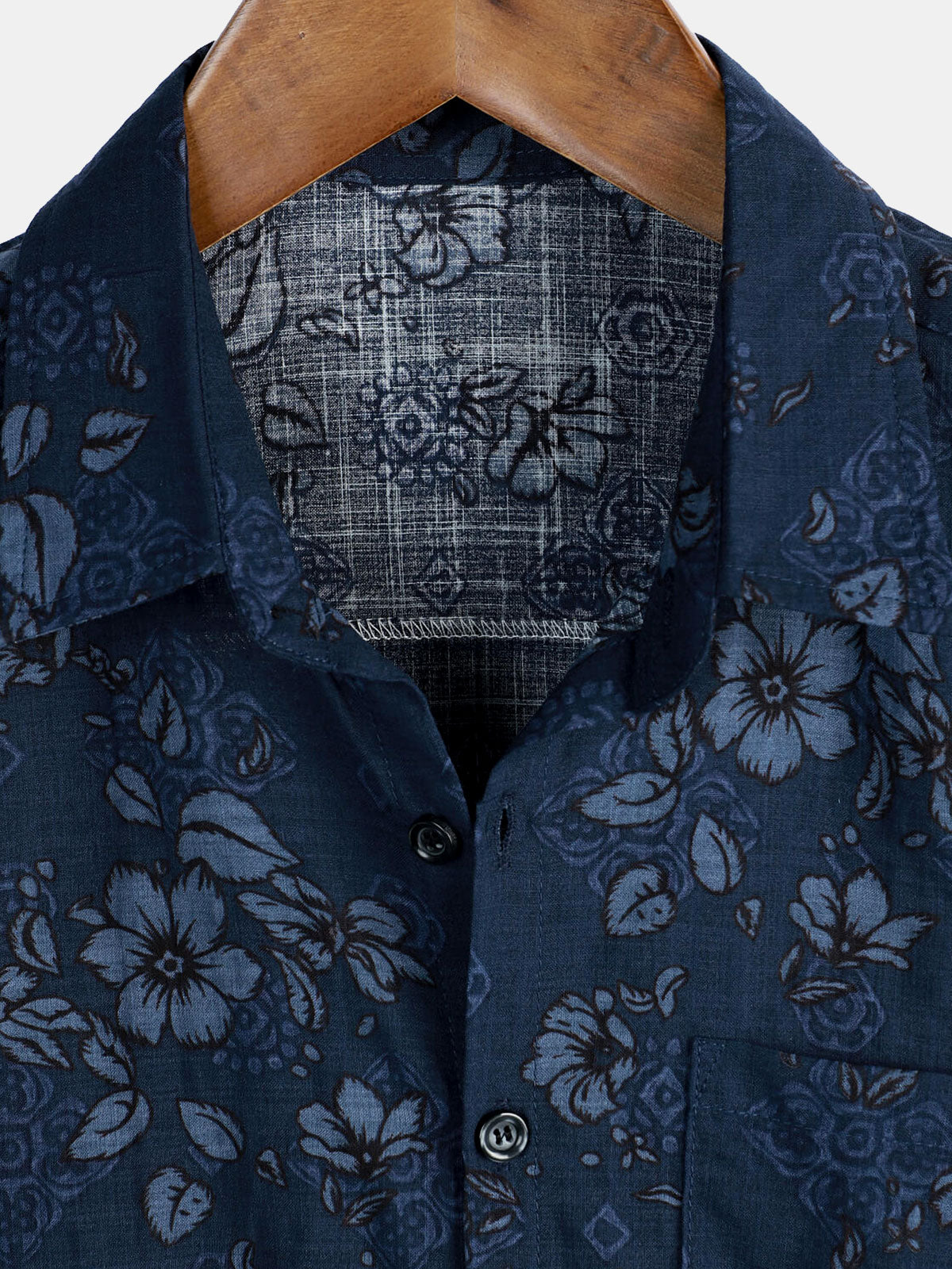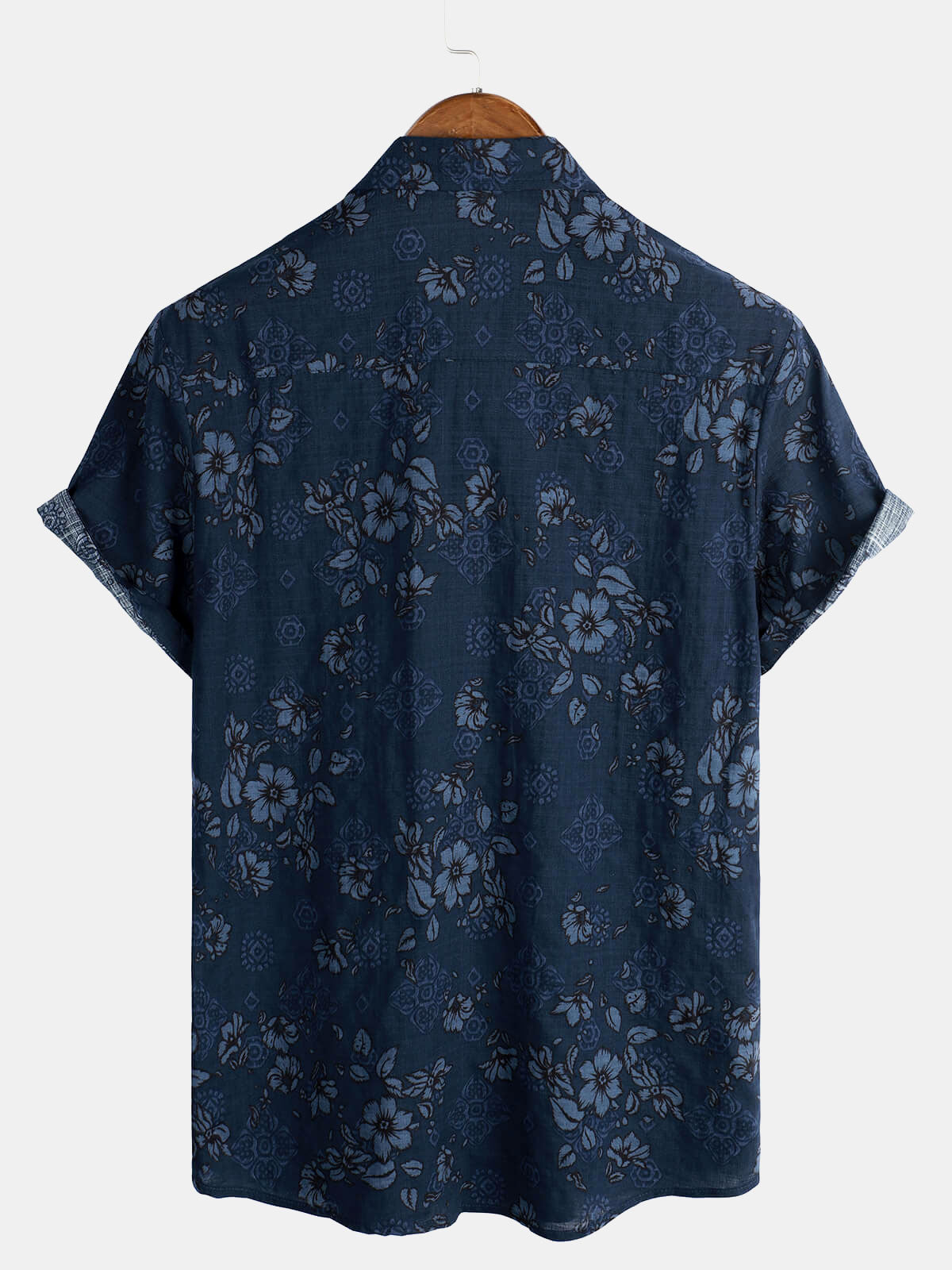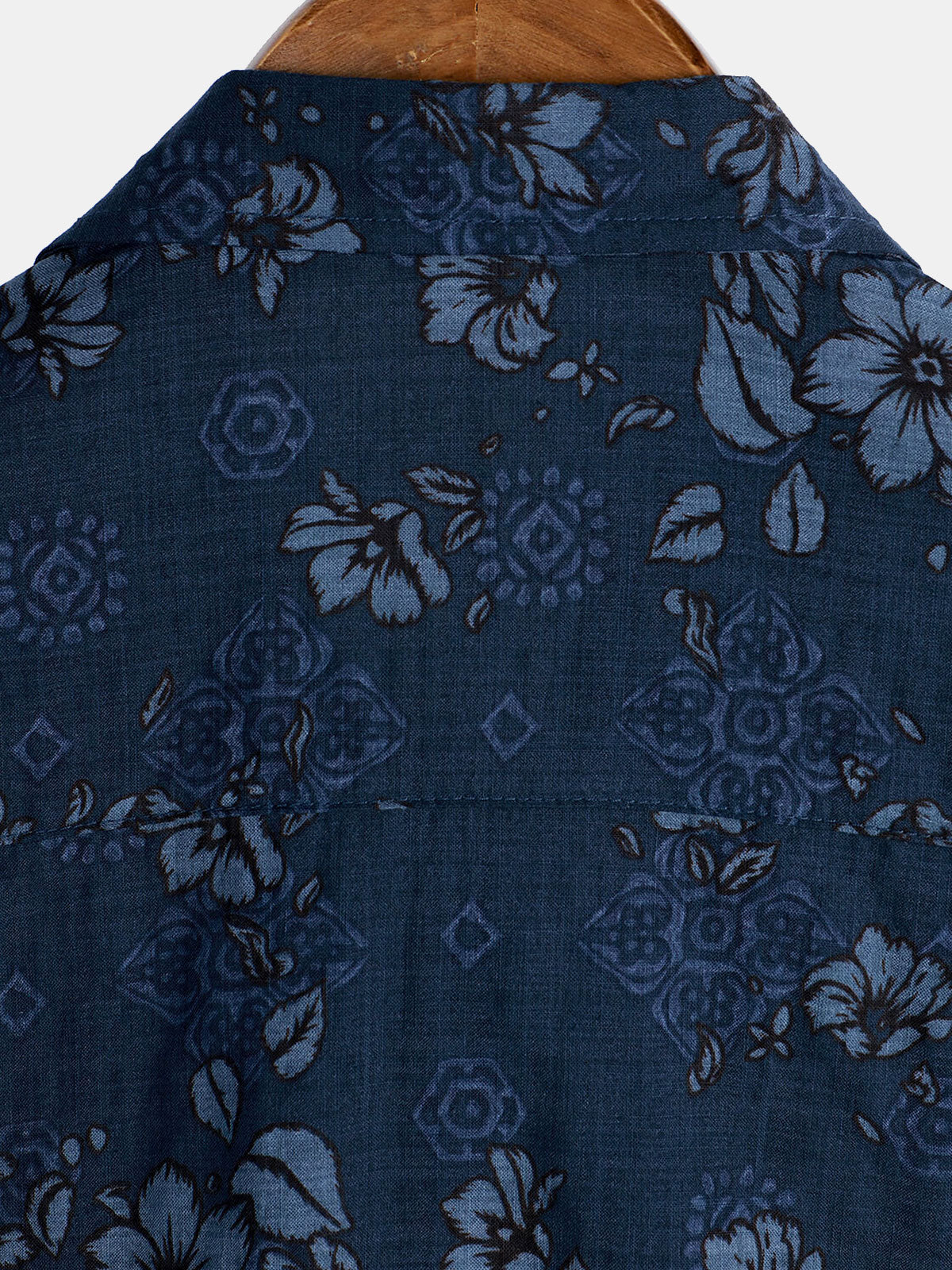 Men's Blue Cotton Floral Hawaiian Vintage Shirt