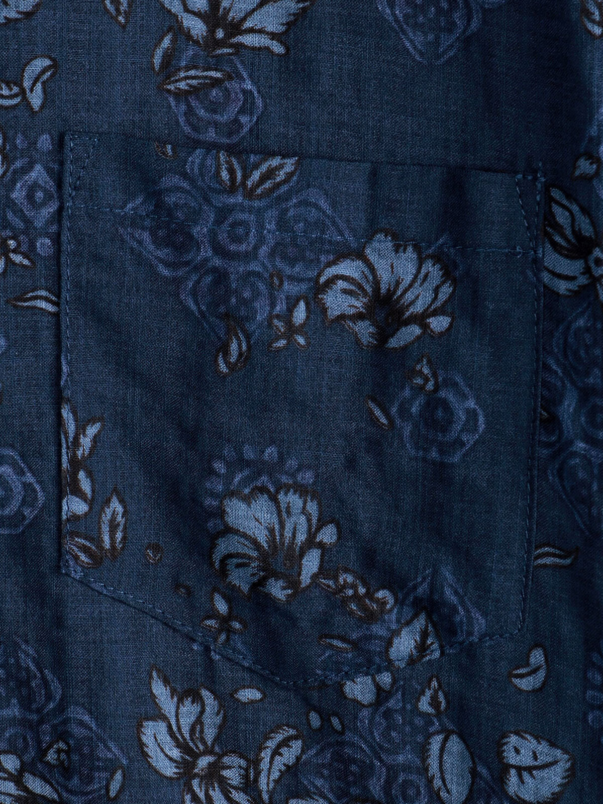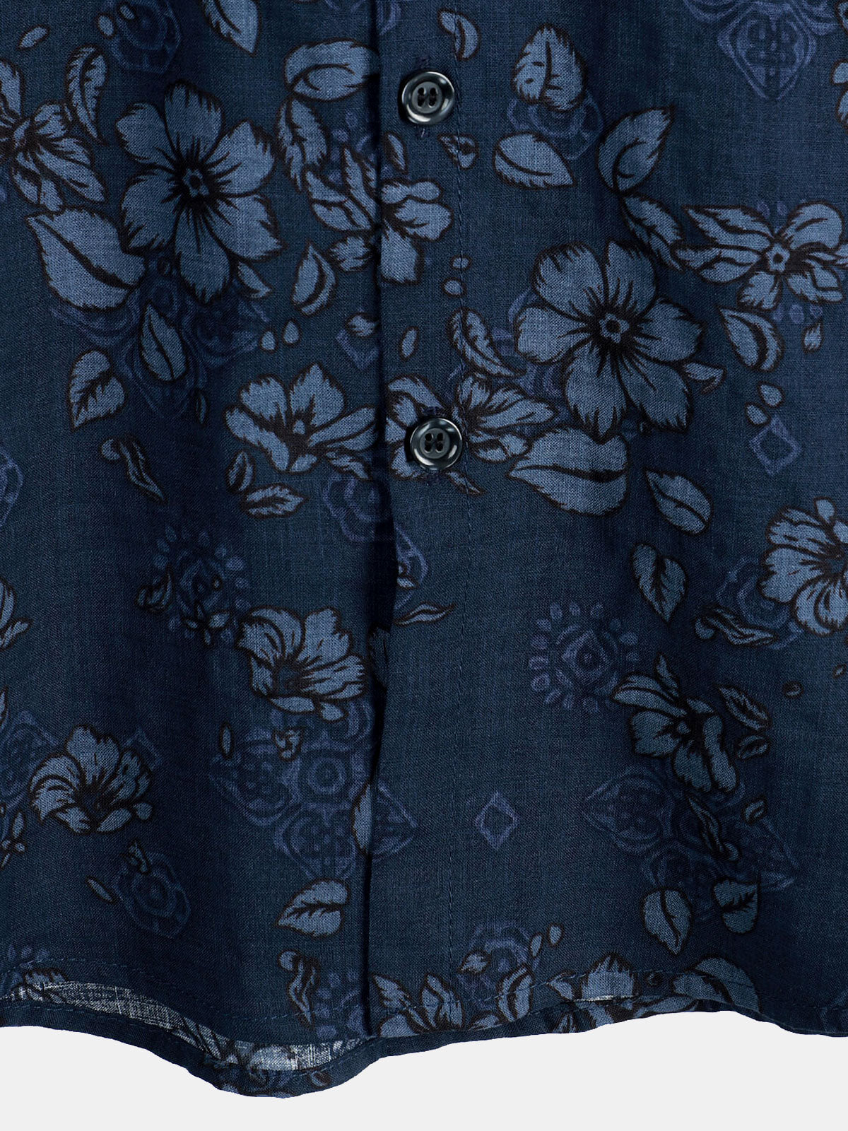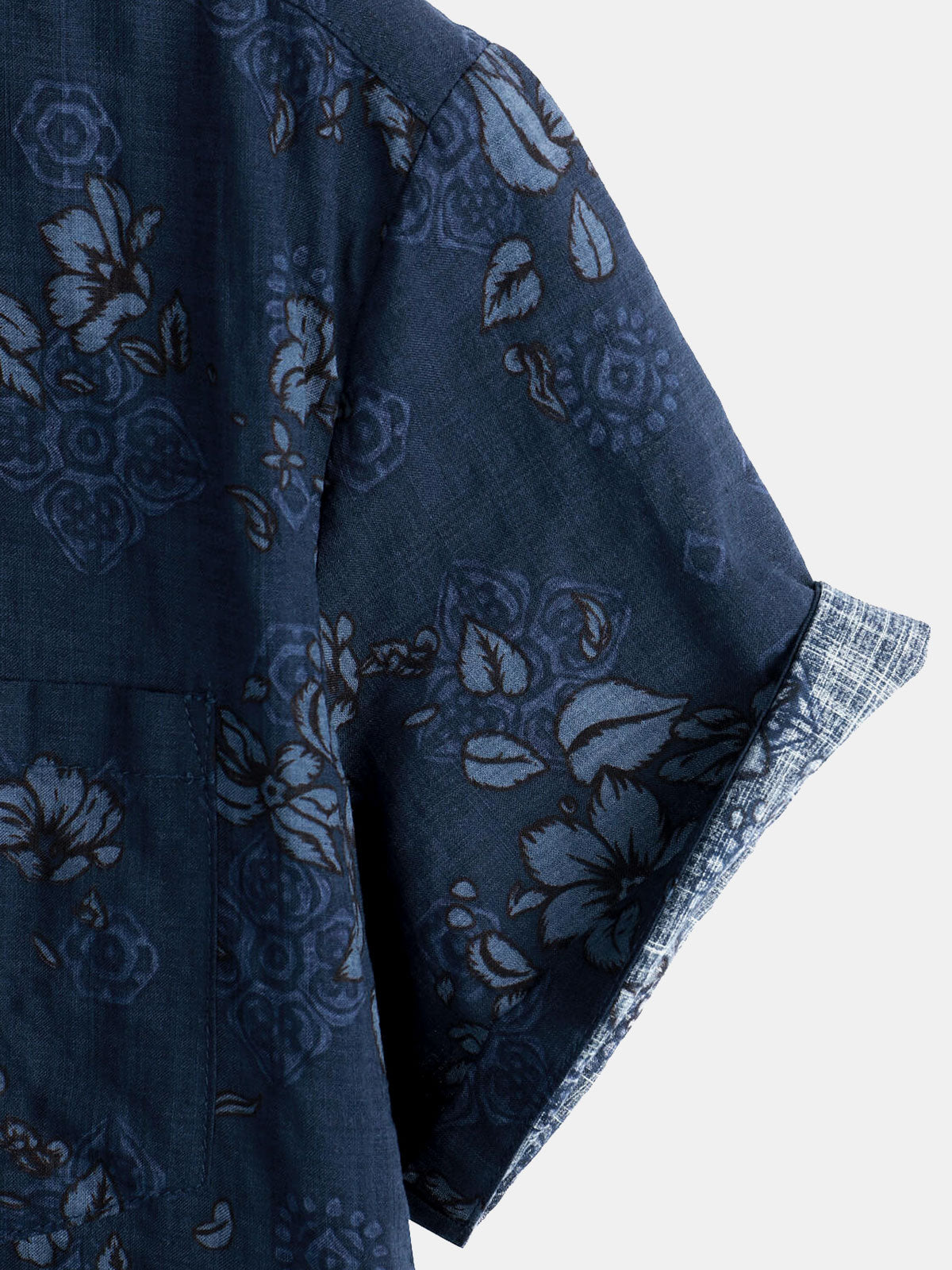 Men's Blue Cotton Floral Hawaiian Vintage Shirt