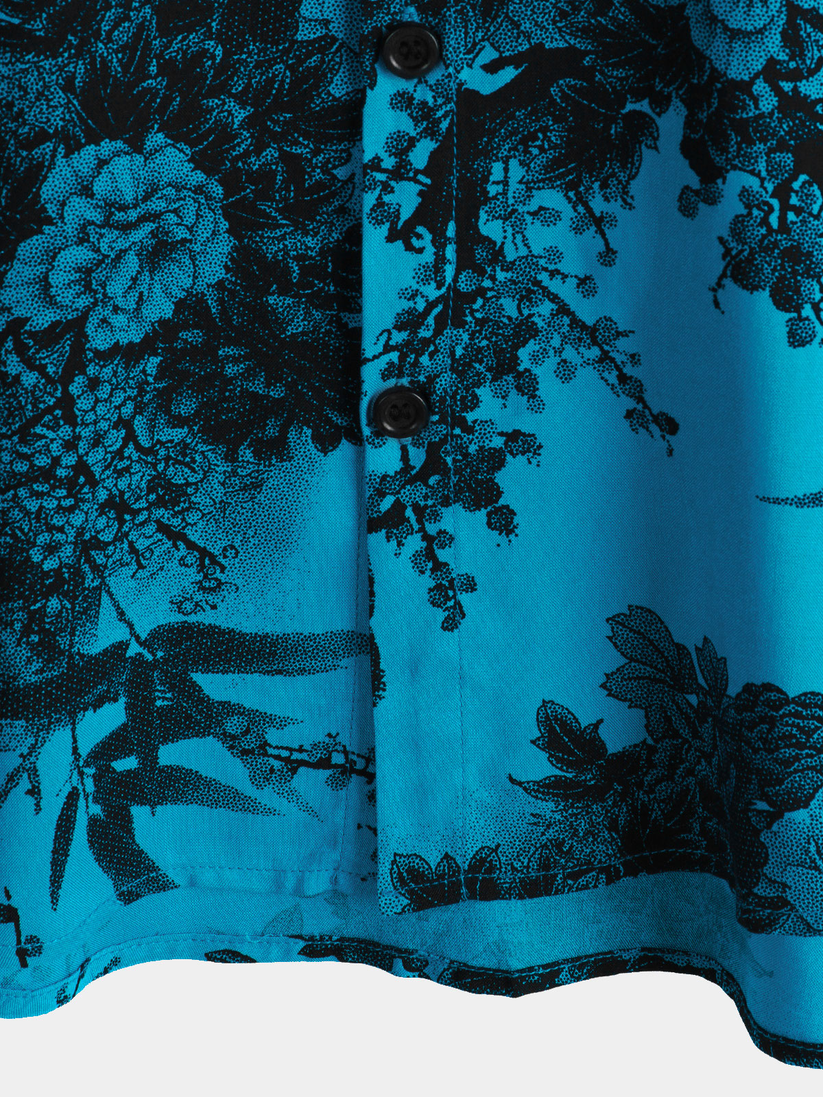 Men's Blue Retro Holiday Breathable Flower Hawaiian Short Sleeve Shirt