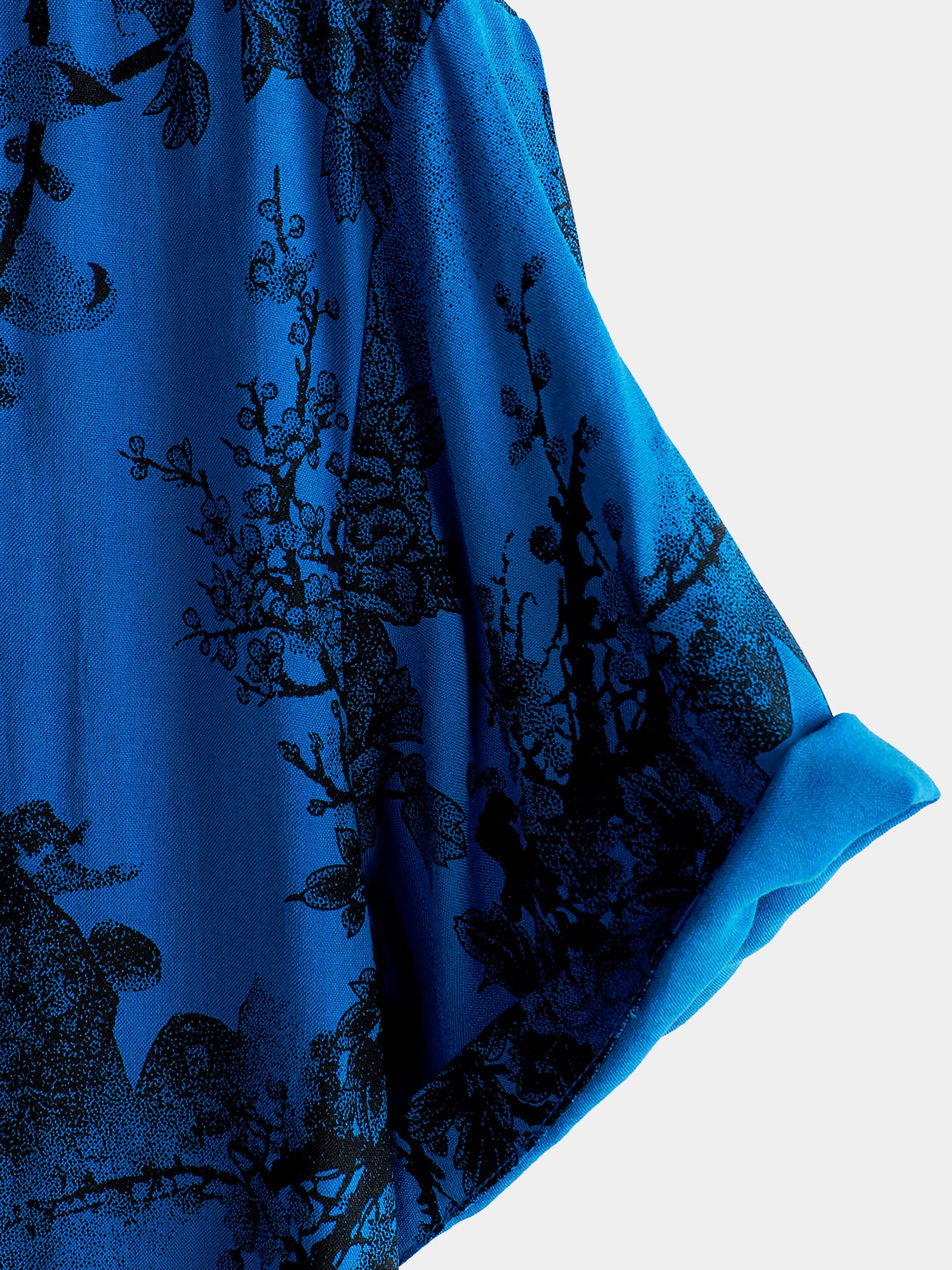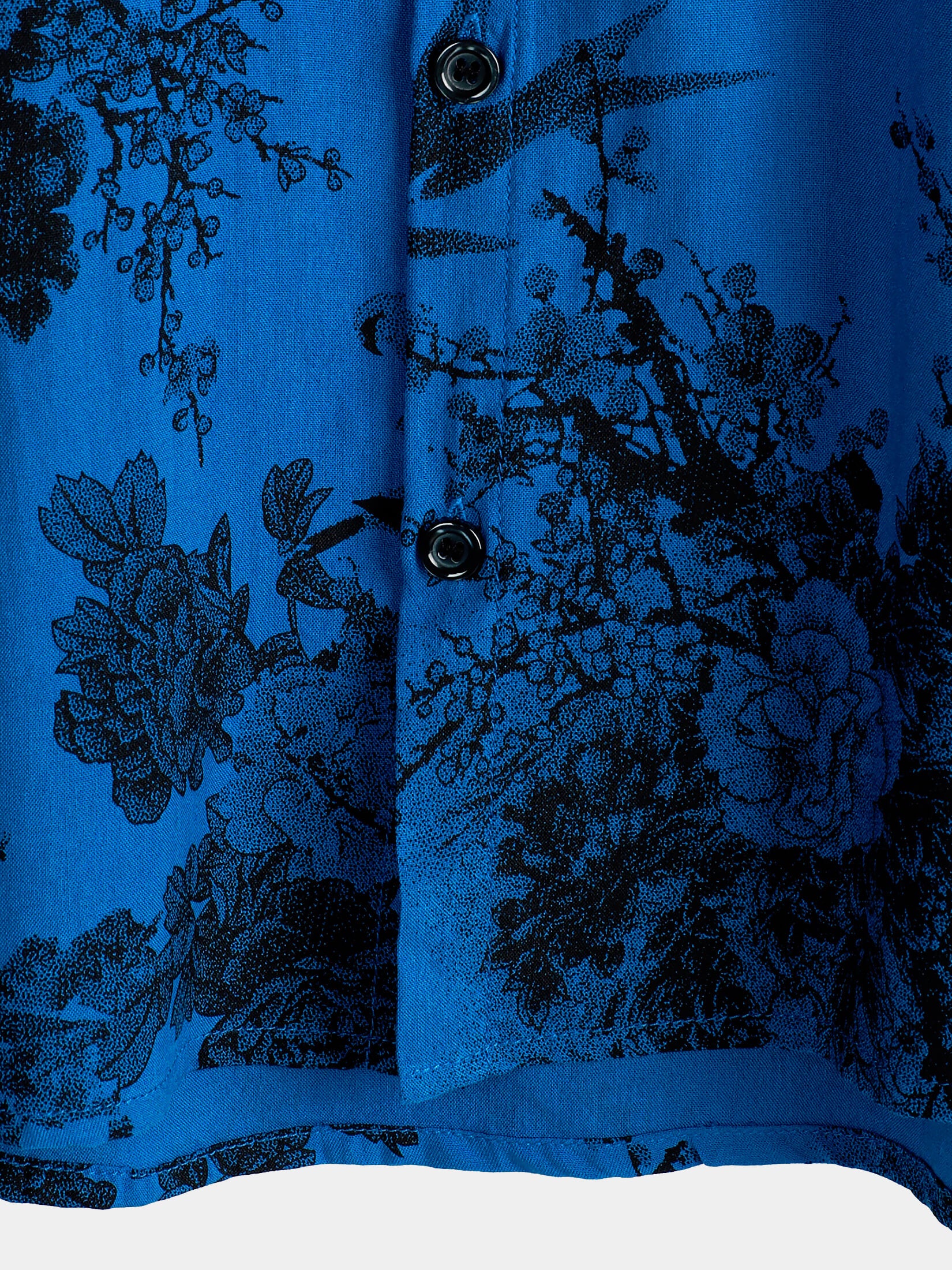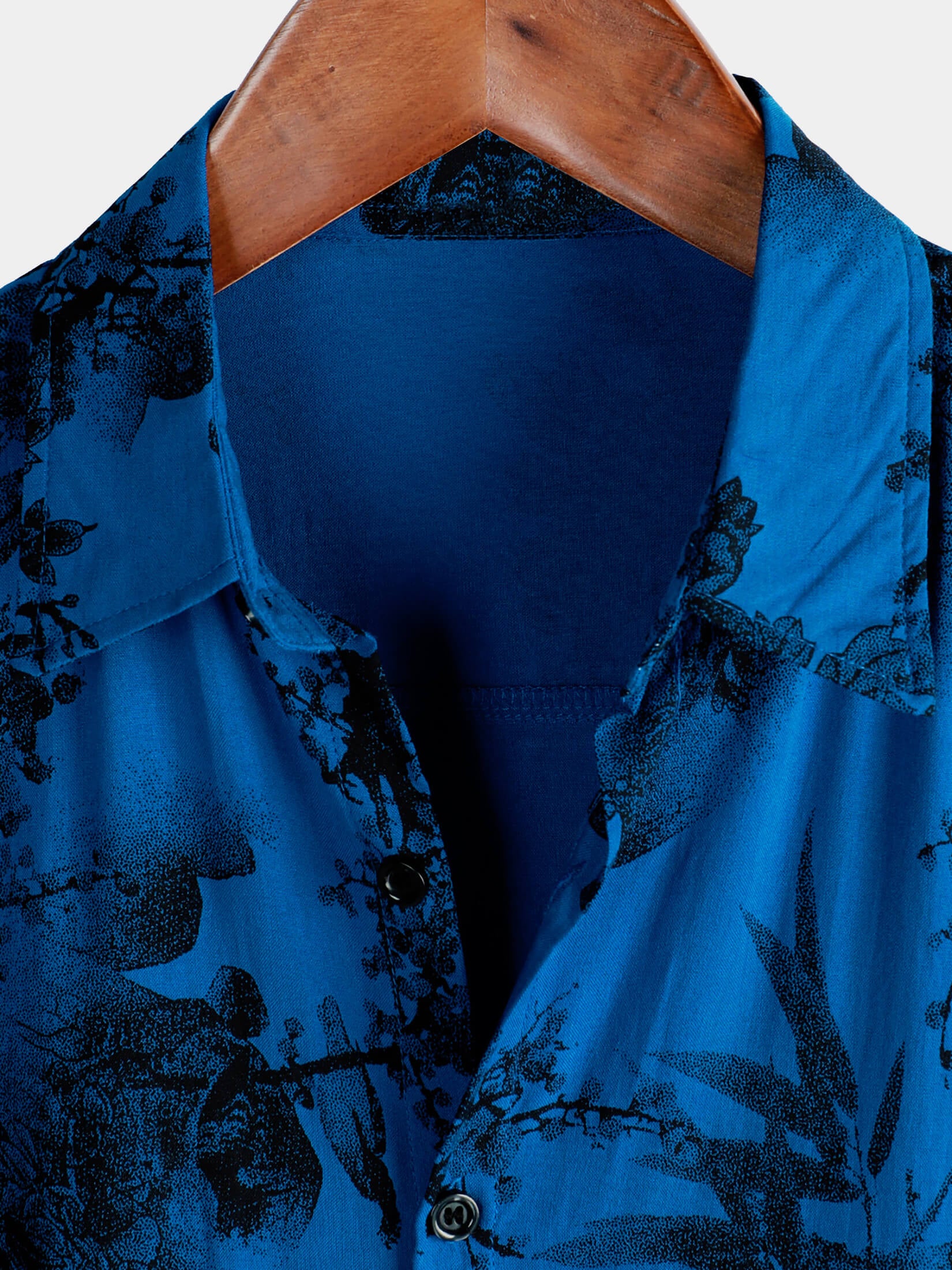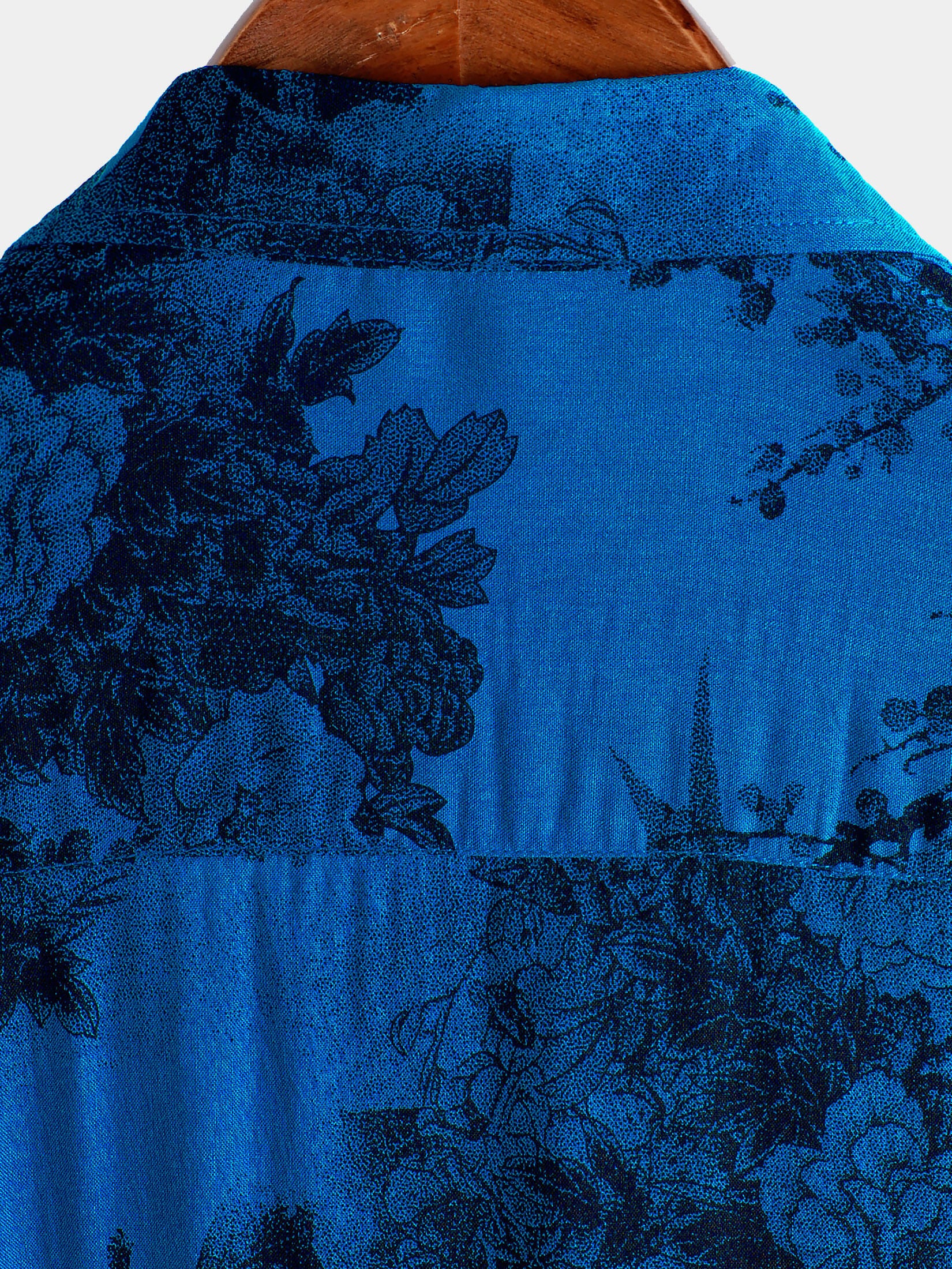 Men's Blue Vintage Floral Summer Holiday Hawaiian Breathable Button Up Short Sleeve Shirt