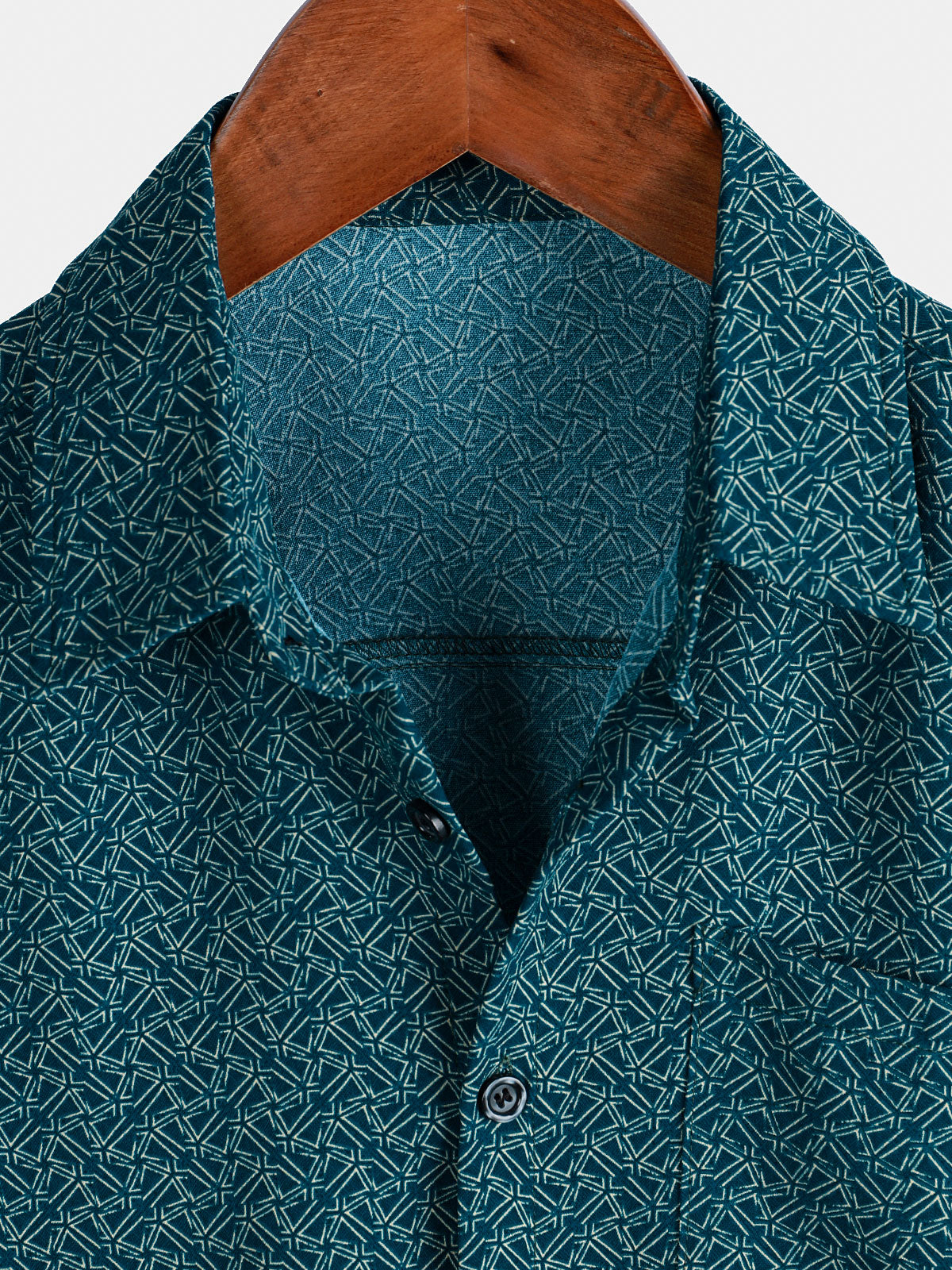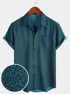 Men's Casual Geometric Print Holiday Pocket Short Sleeve Shirt