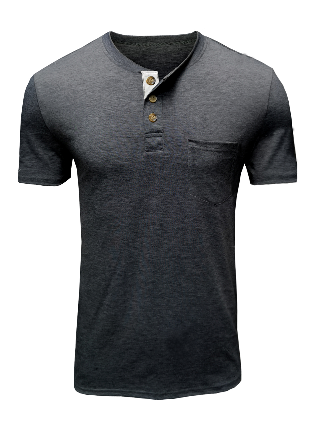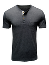 Men's Casual Henley Collar Solid Color Cotton Short Sleeve T-Shirt