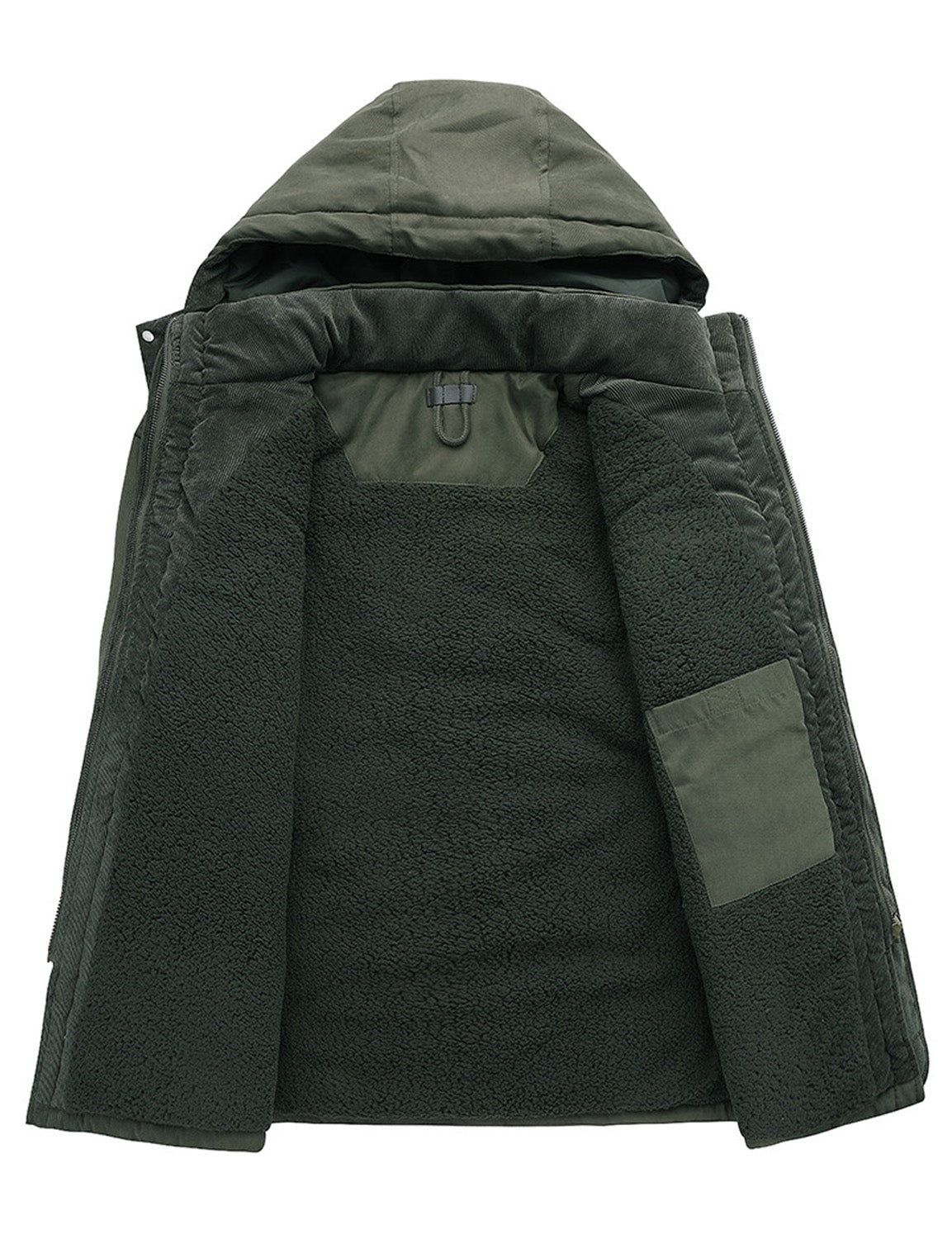 Men's Casual Hooded Sherpa Lined Windproof Coat Warm Winter Jacket
