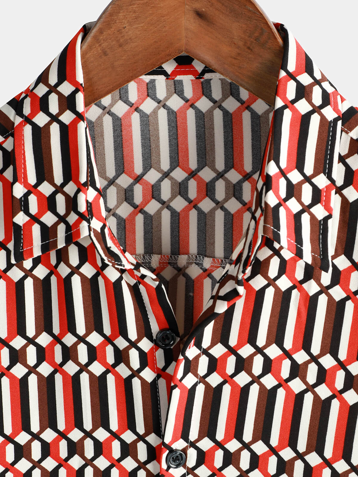 Men's Casual Retro Geometric Button Up Cool Short Sleeve Summer Shirt