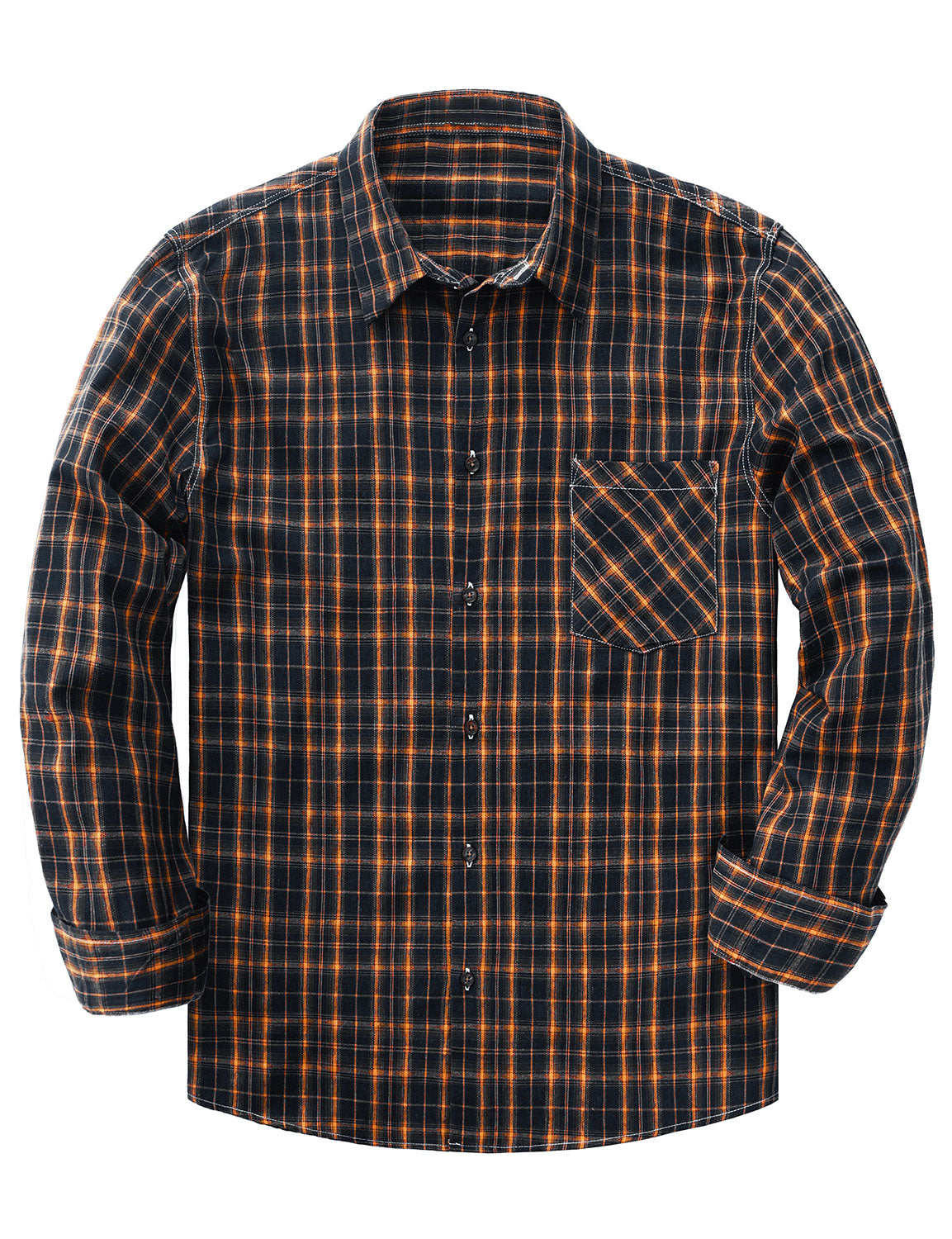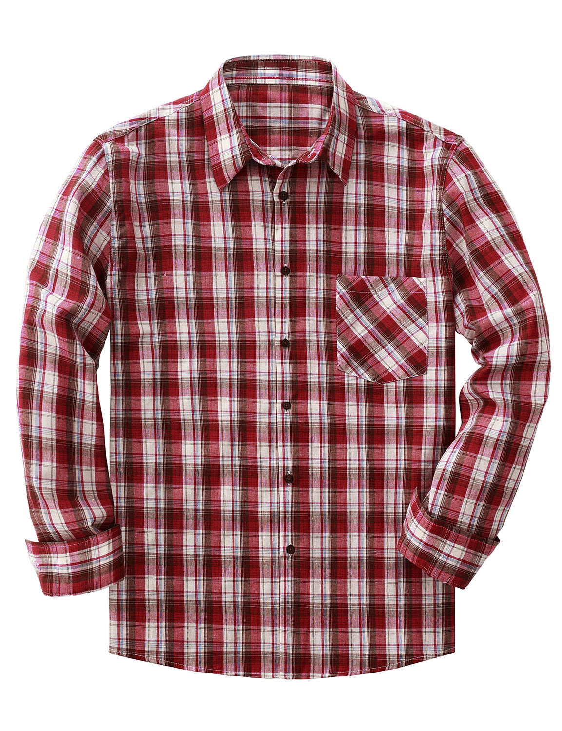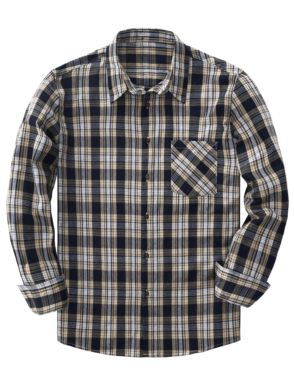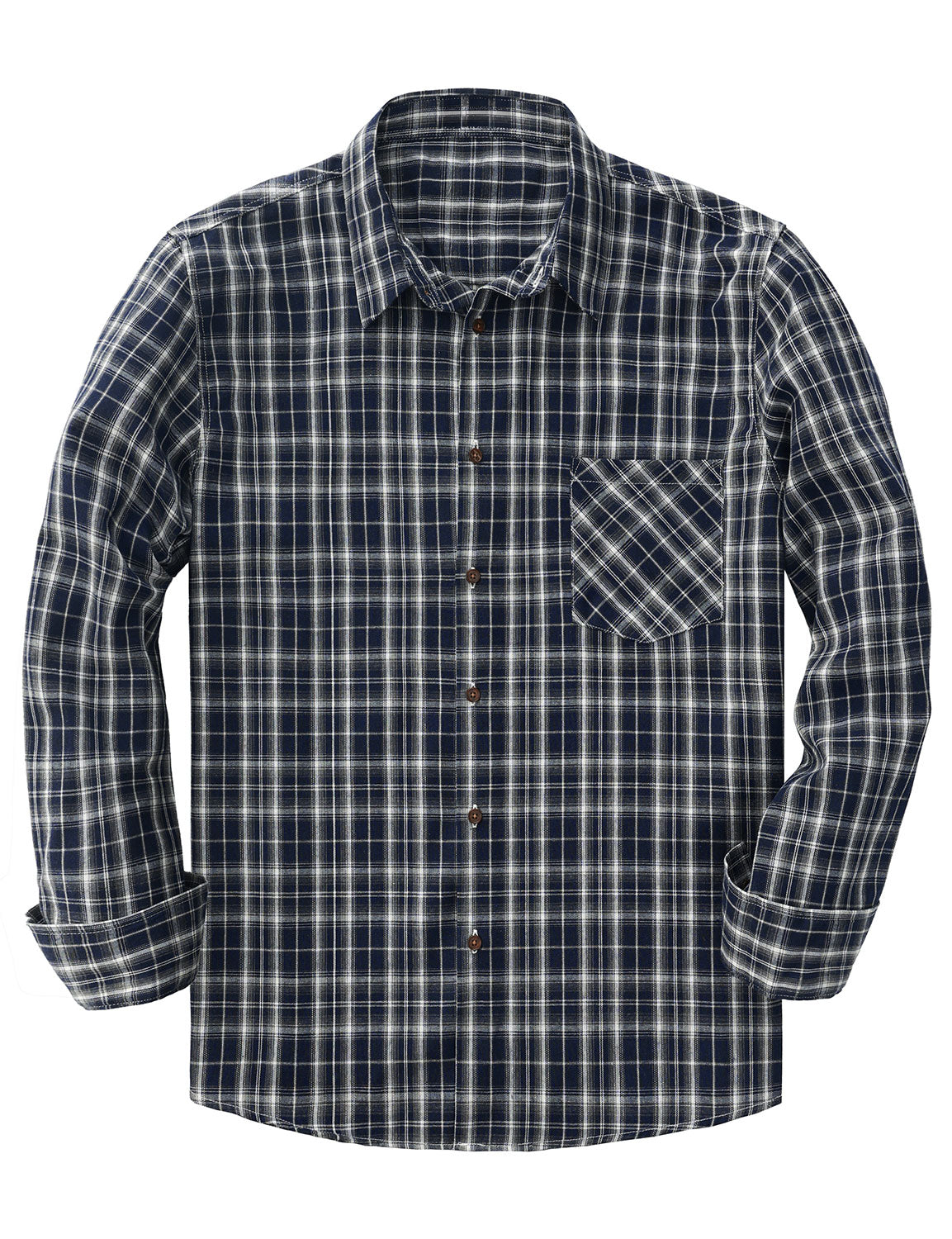 Men's Casual Retro Plaid Pocket Long Sleeve Dress Shirt