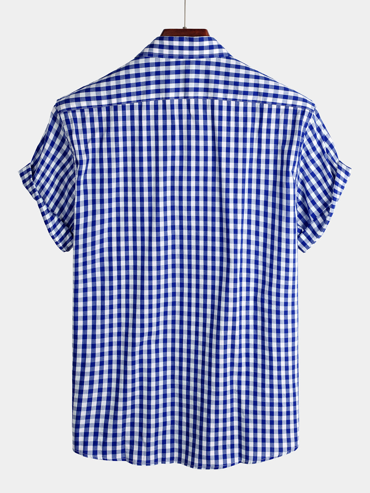 Men's Solid Color Plaid Casual Cotton Pocket Shirt