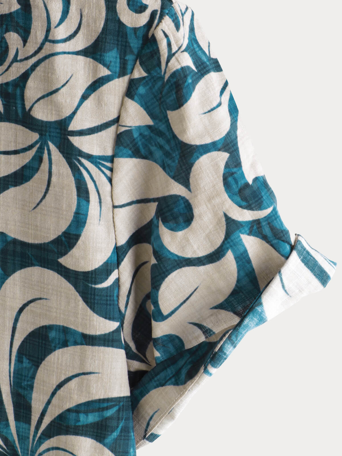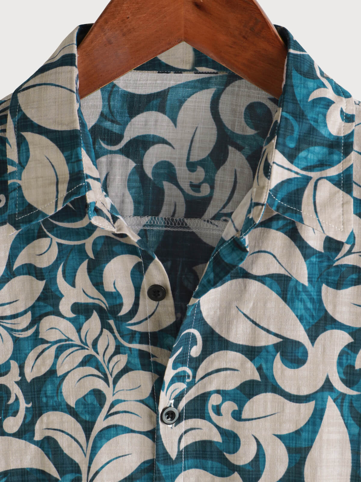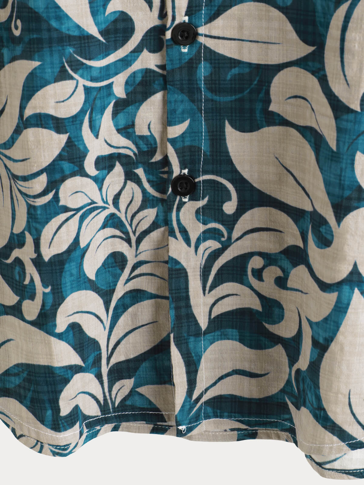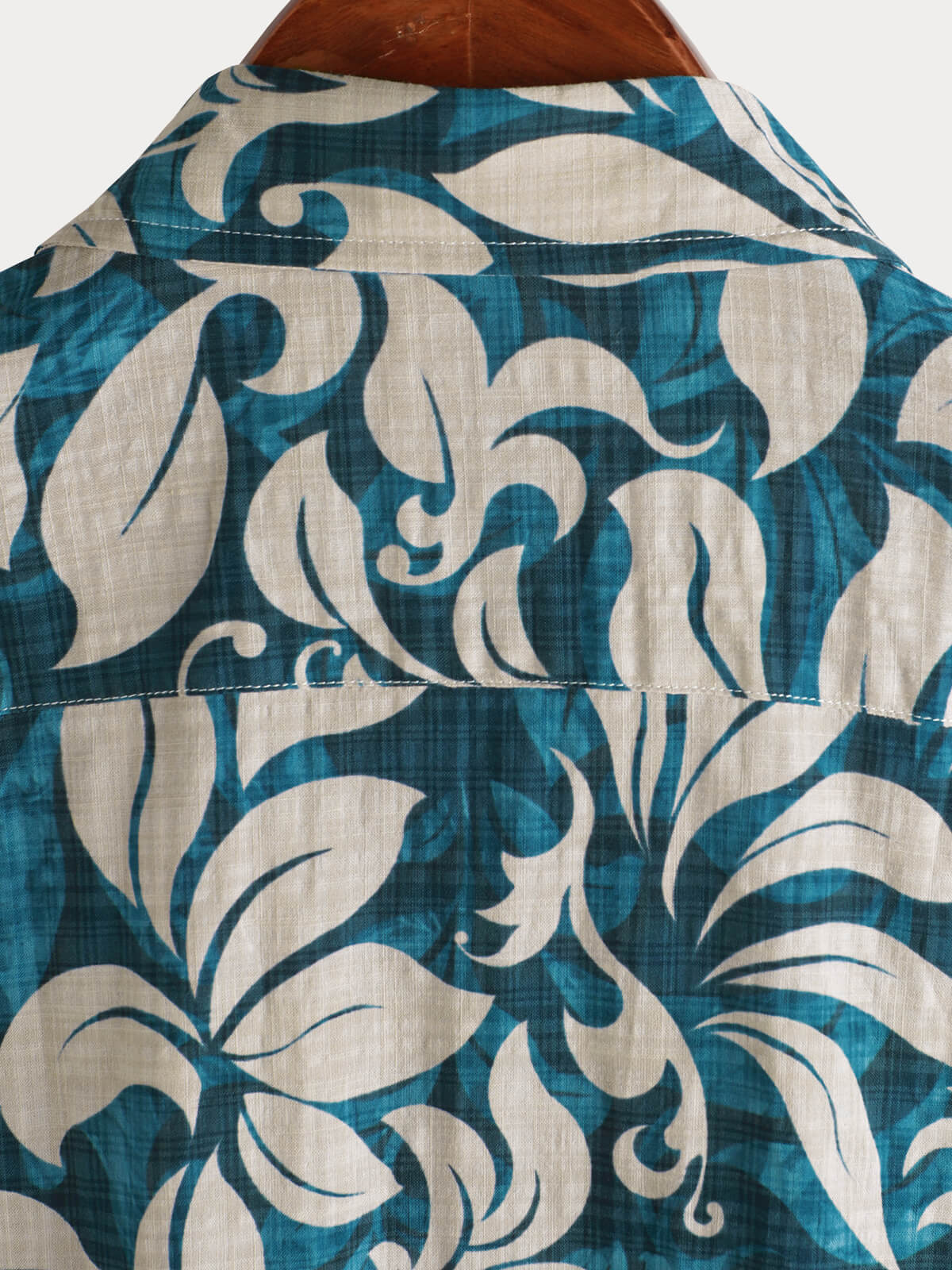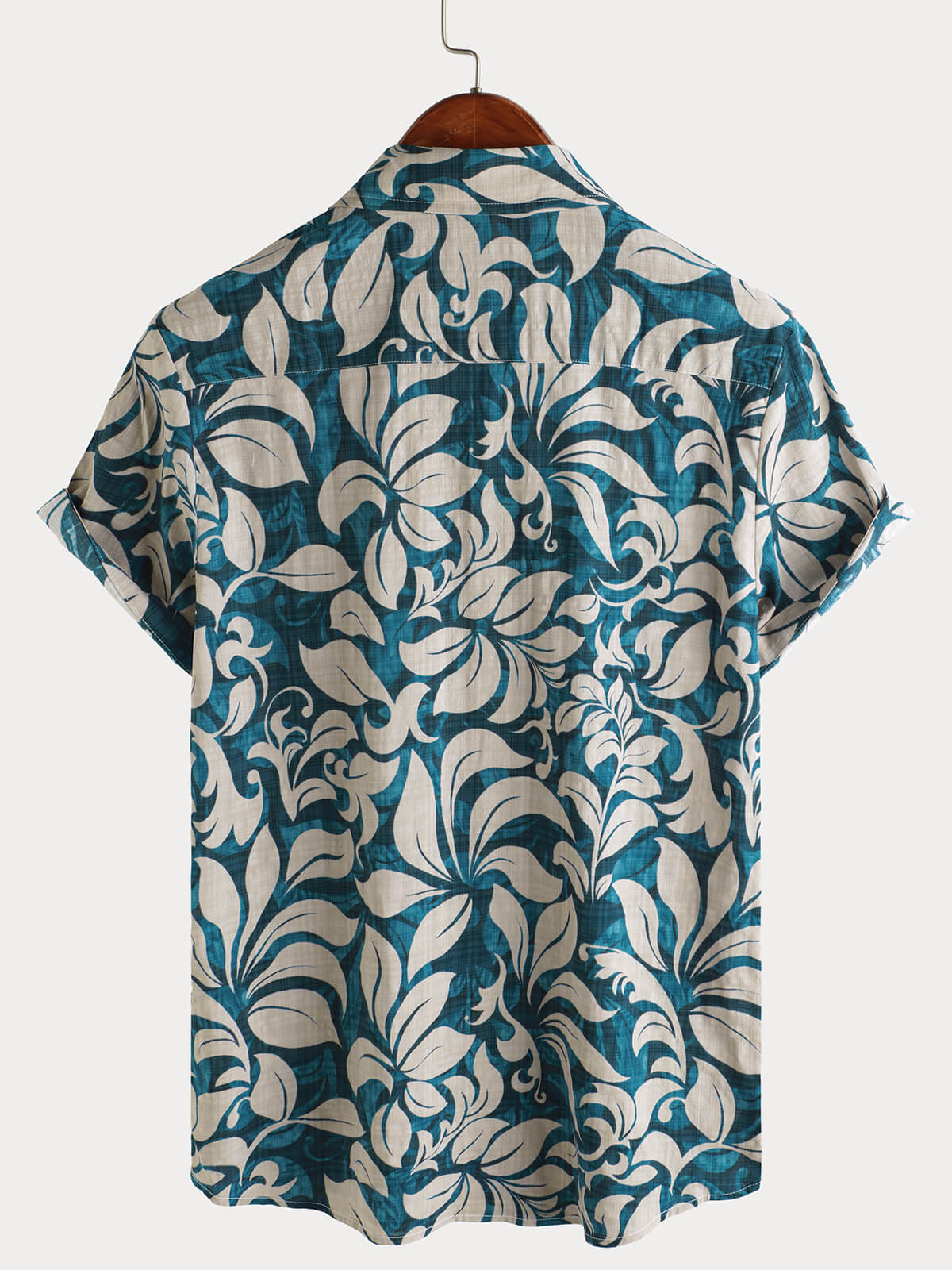 Men's Casual Vintage Holiday Floral Button Up Short Sleeve Shirt
