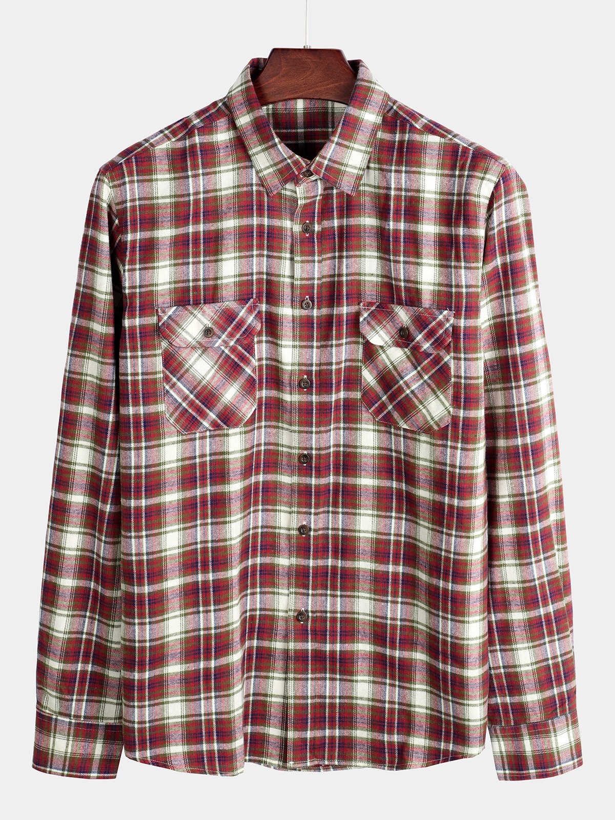 Men's Button Up Regular Fit Long Sleeve Plaid Flannel Casual Shirts