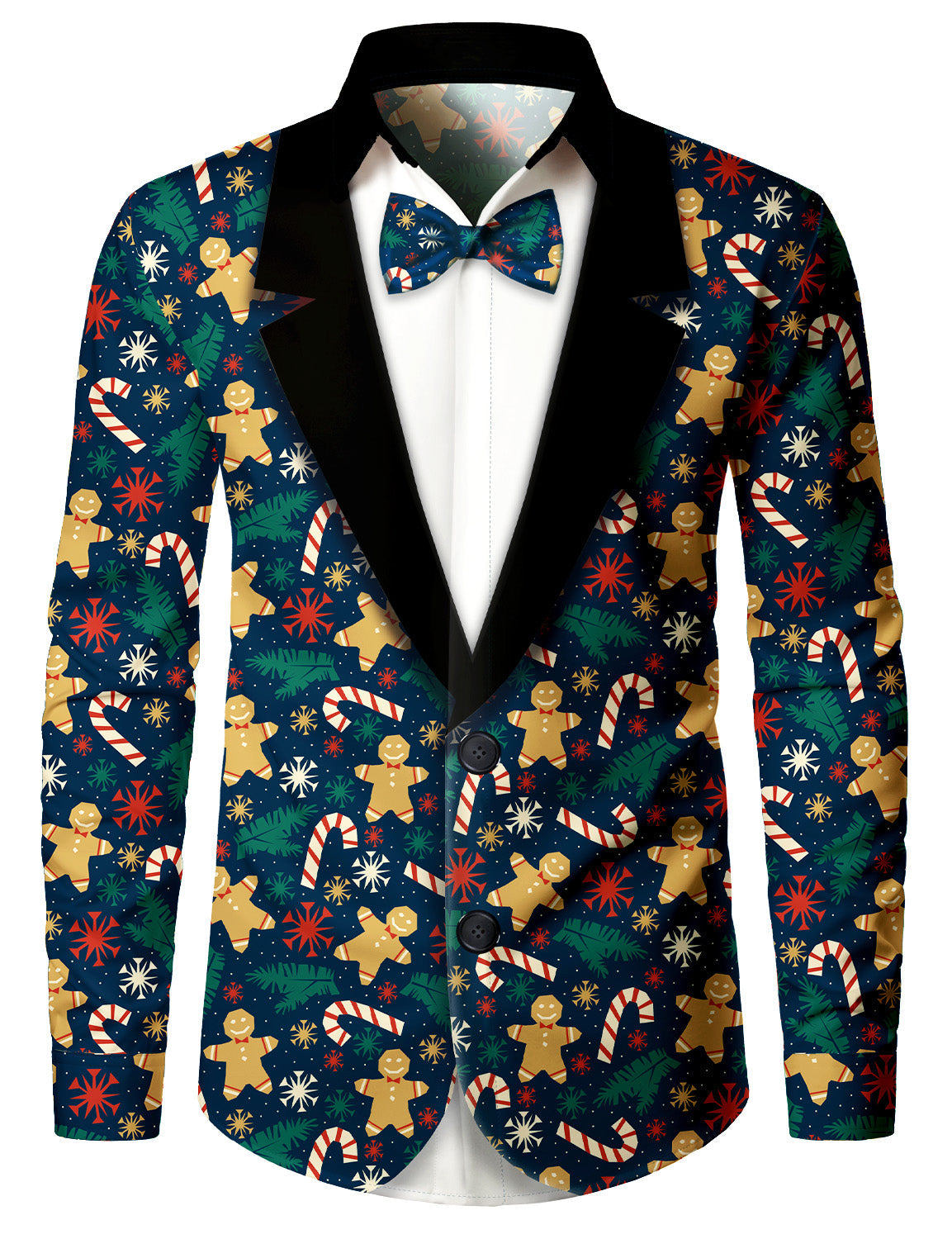 Men's Christmas Gingerbread Man Print Themed Top Funny Long Sleeve Shirt