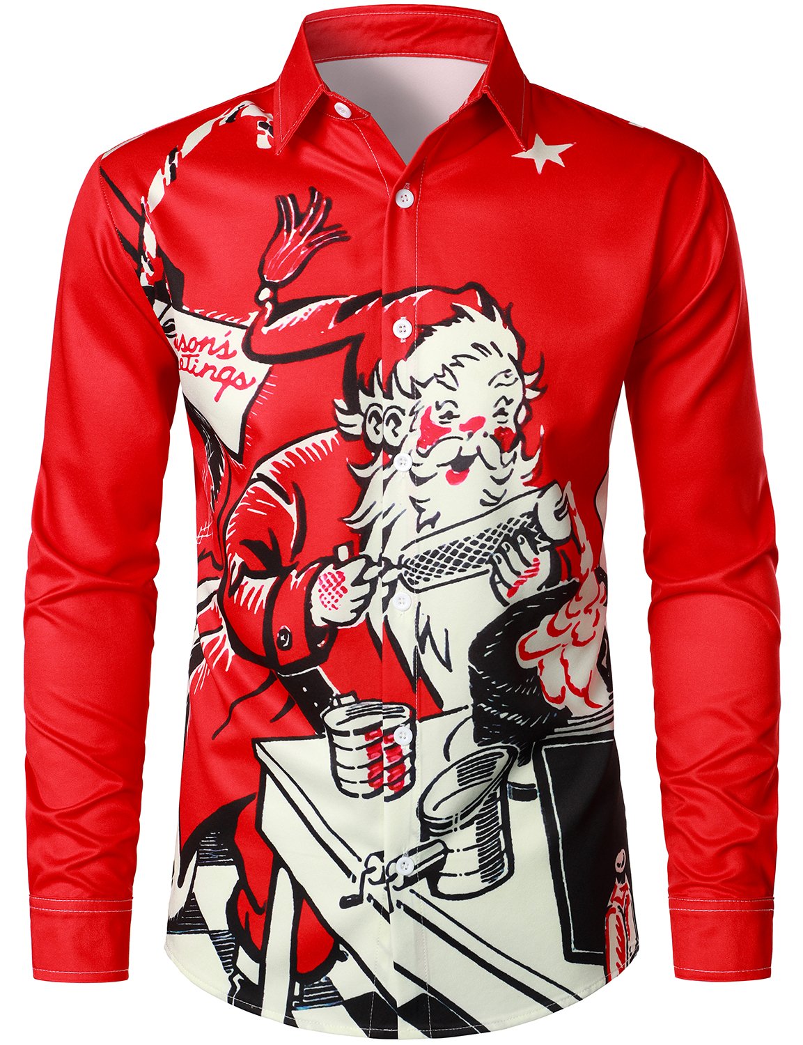 Men's Christmas Print Regular Fit Long Sleeve Shirt